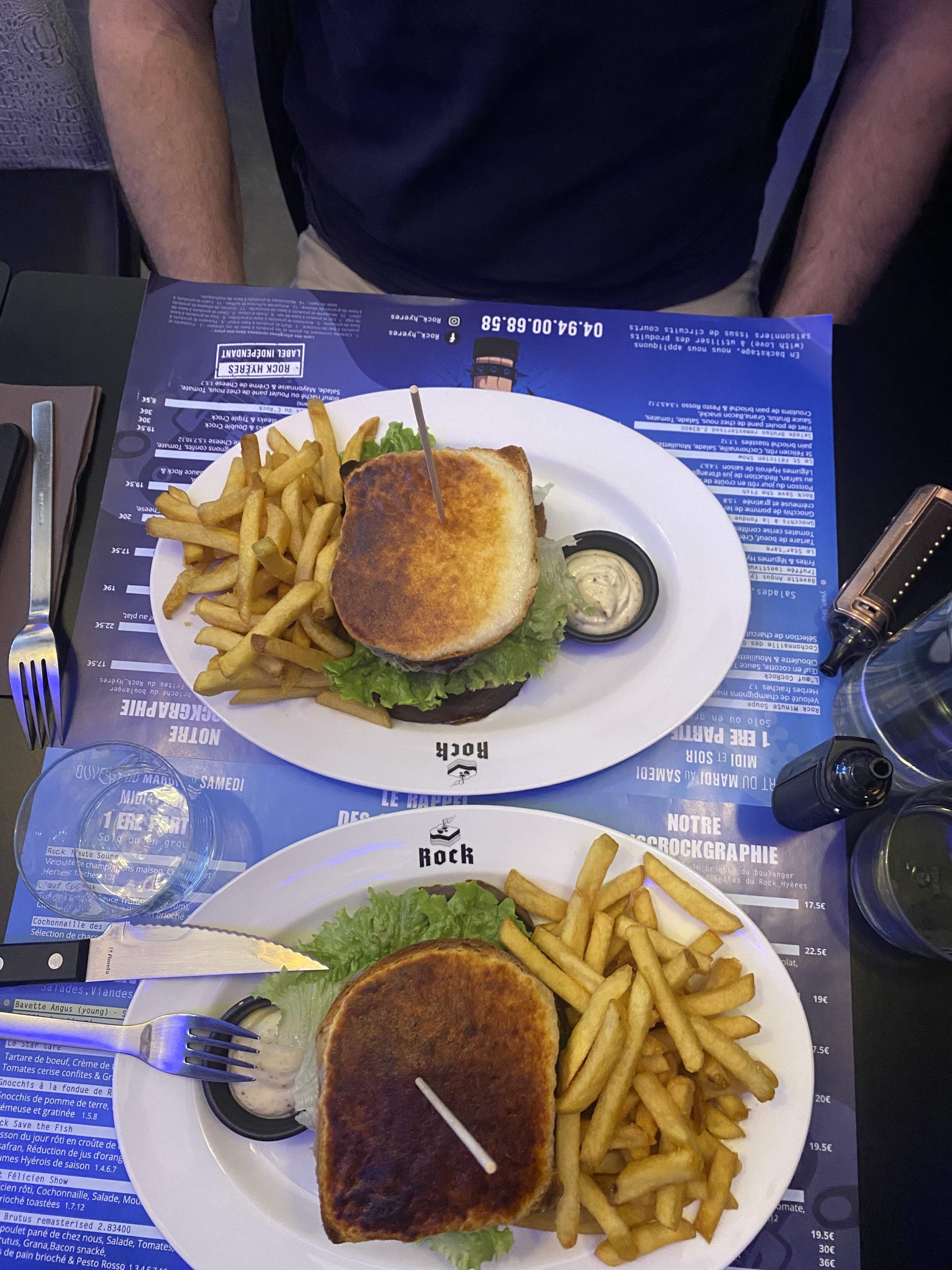 Un restaurant original avec une forte personnalité. La déco, rock jusqu'aux détails, est particulièrement réussie. L'accueil est rock et très sympathique. Les burgers revisités au pain brioché sont généreux (Original Crock, Crock Red Hot et Crock Led Zepp). La viande est excellente. Les bières viennent de Porquerolles. Le tout se termine par une petite liqueur offerte par le patron 😊