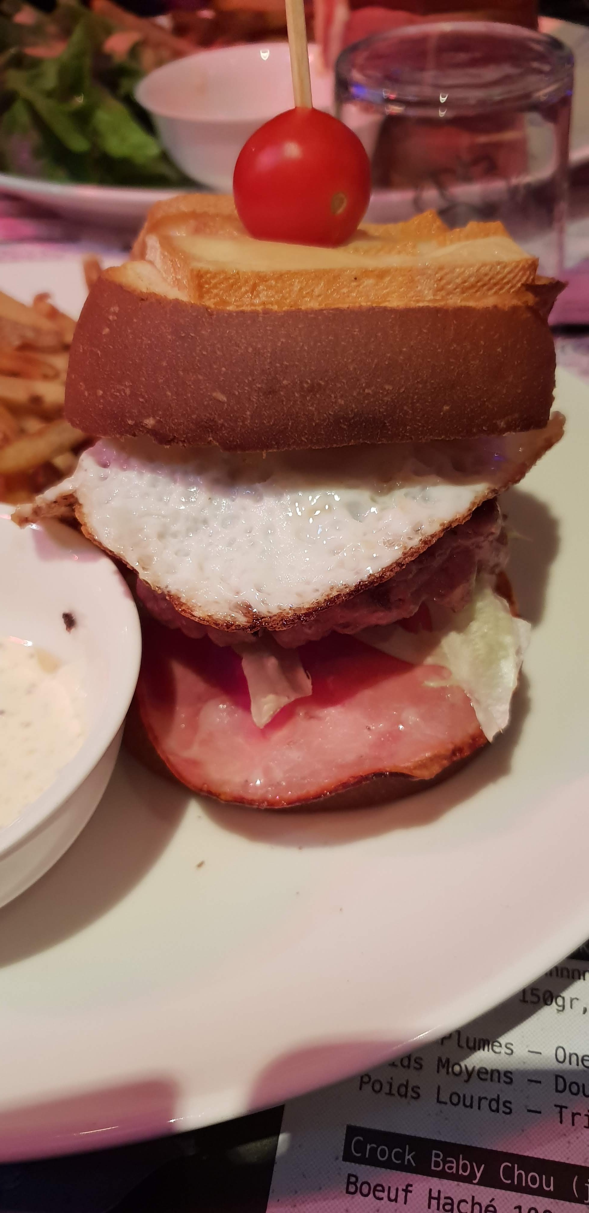 J'ai été agréablement surpris par le site et l'accueil des gérants très sympa. La carte proposée est attrayante avec des Crocsde type hamburger très copieux fait d'un pain de mie différent, de viande de qualité, des salades avec de très bon dessert également. La salle était pleine donc un peu bruyante. Nous avons passé un agréable moment et nous avons bien mangé.