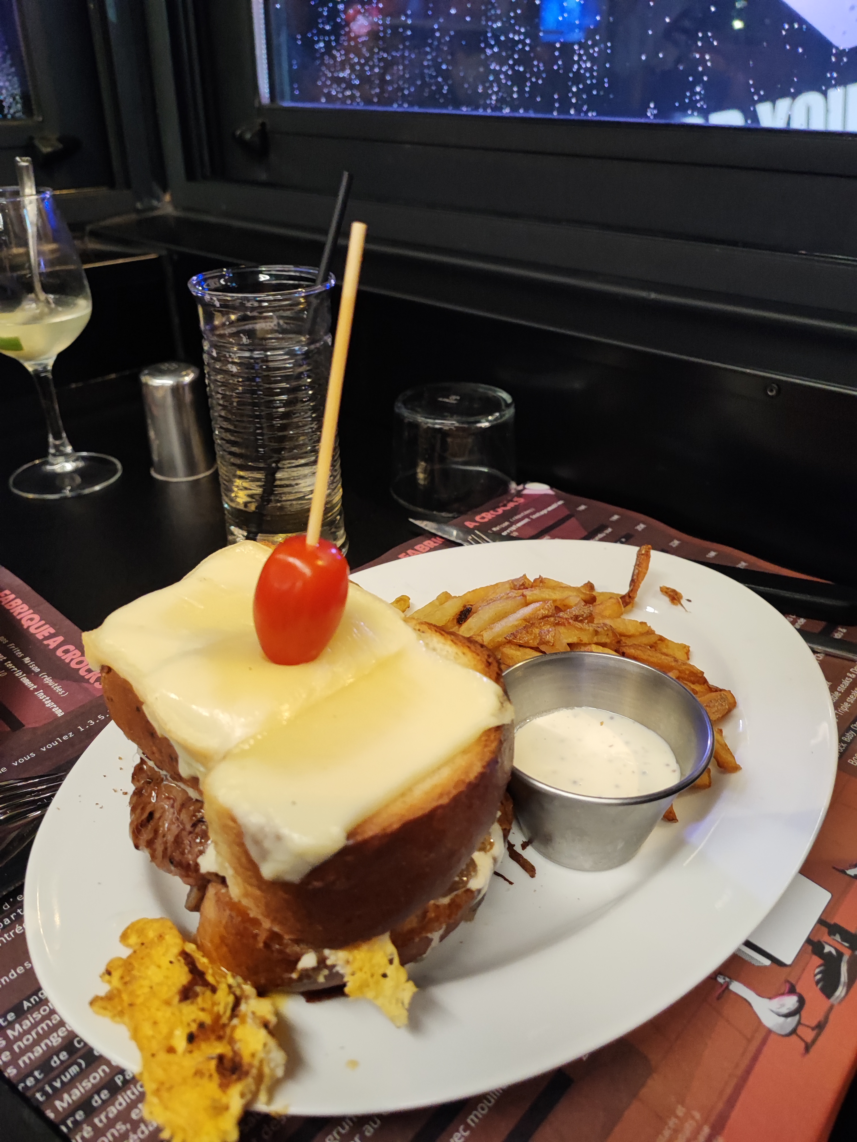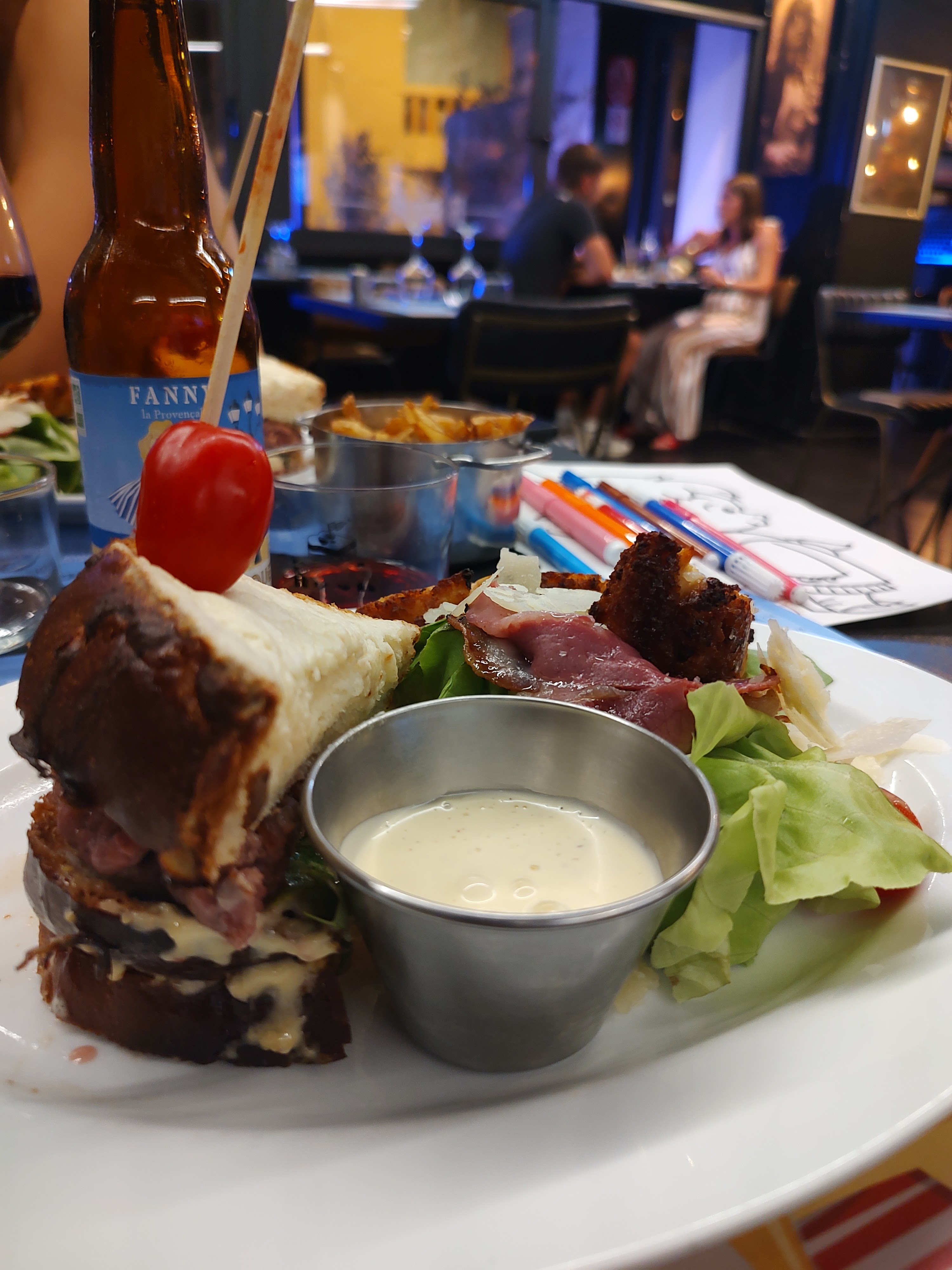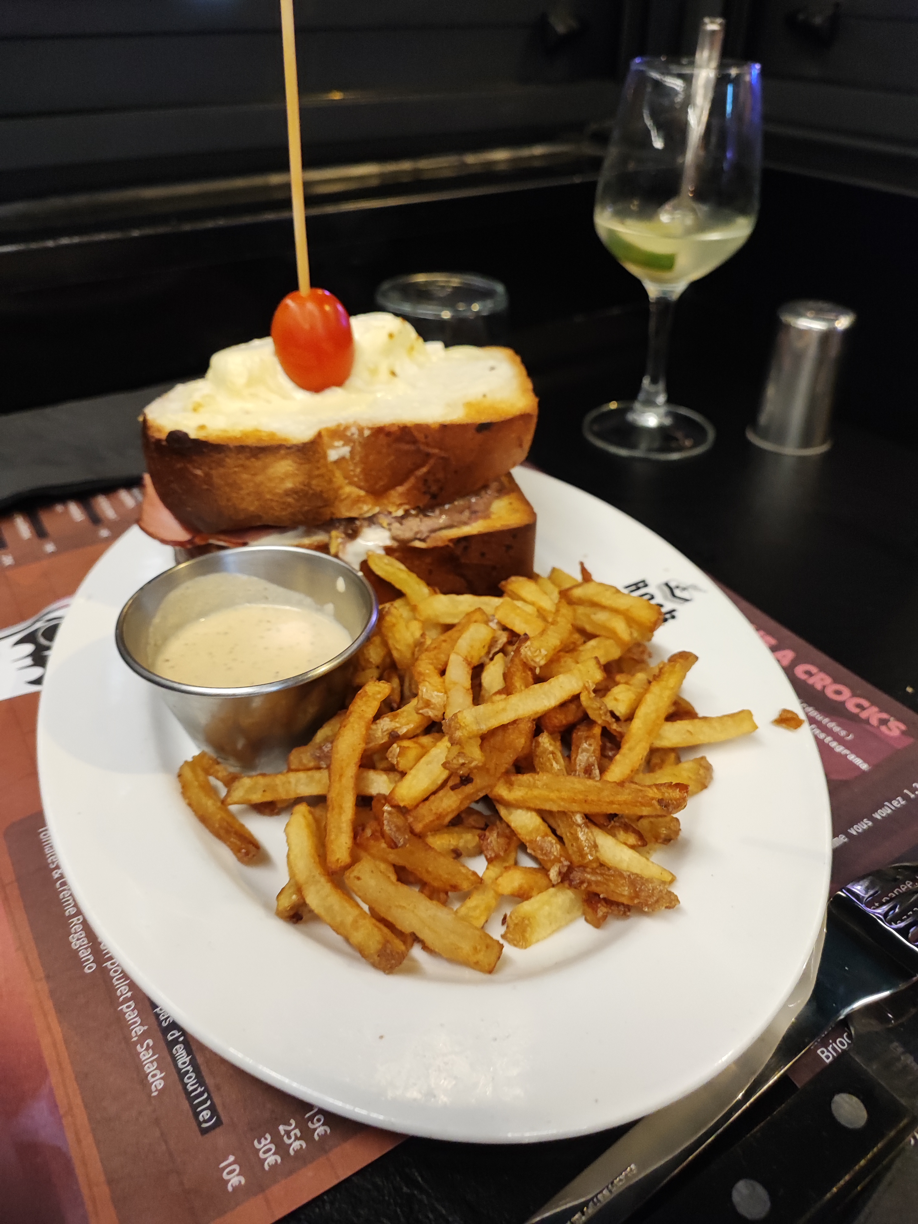 Bon mais sans plus. J'en attendais peut être trop a la lecture des avis... Je n'ai rien à dire concernant le service qui était impeccable. Le serveur (qui était le patron je pense) et le barman étaient très sympathiques. Tant mieux si le restaurant tourne bien mais ça n'a juste pas matché avec moi ce coup ci. Première déception lorsqu'on apprend que l'adresse ne propose pas de bières pression. Seulement quelques bières bouteilles. Nous avions pris deux croque avec ma conjointe. Le concept est original avec la brioche faite maison mais j'ai trouvé que les tranches épaisses ont pris un peu le dessus sur la sauce et le steak angus. Ce n'était pas mauvais non plus mais voilà je me suis pas régalé autant que je l'espérais. Petite déception de l'ambiance aussi qui était bonne jusqu'à ce que la musique soit coupée, tôt dans la soirée 🙁