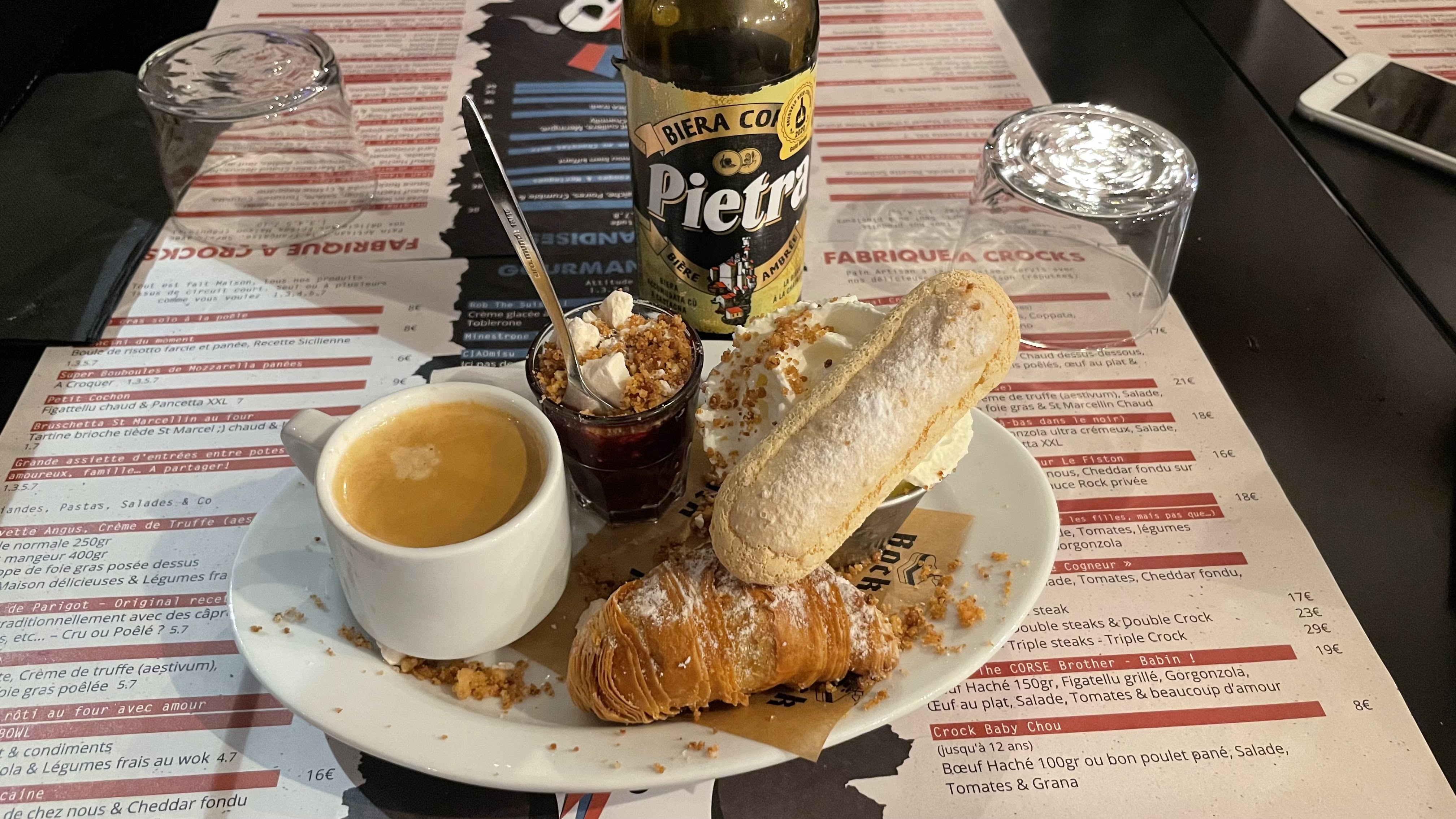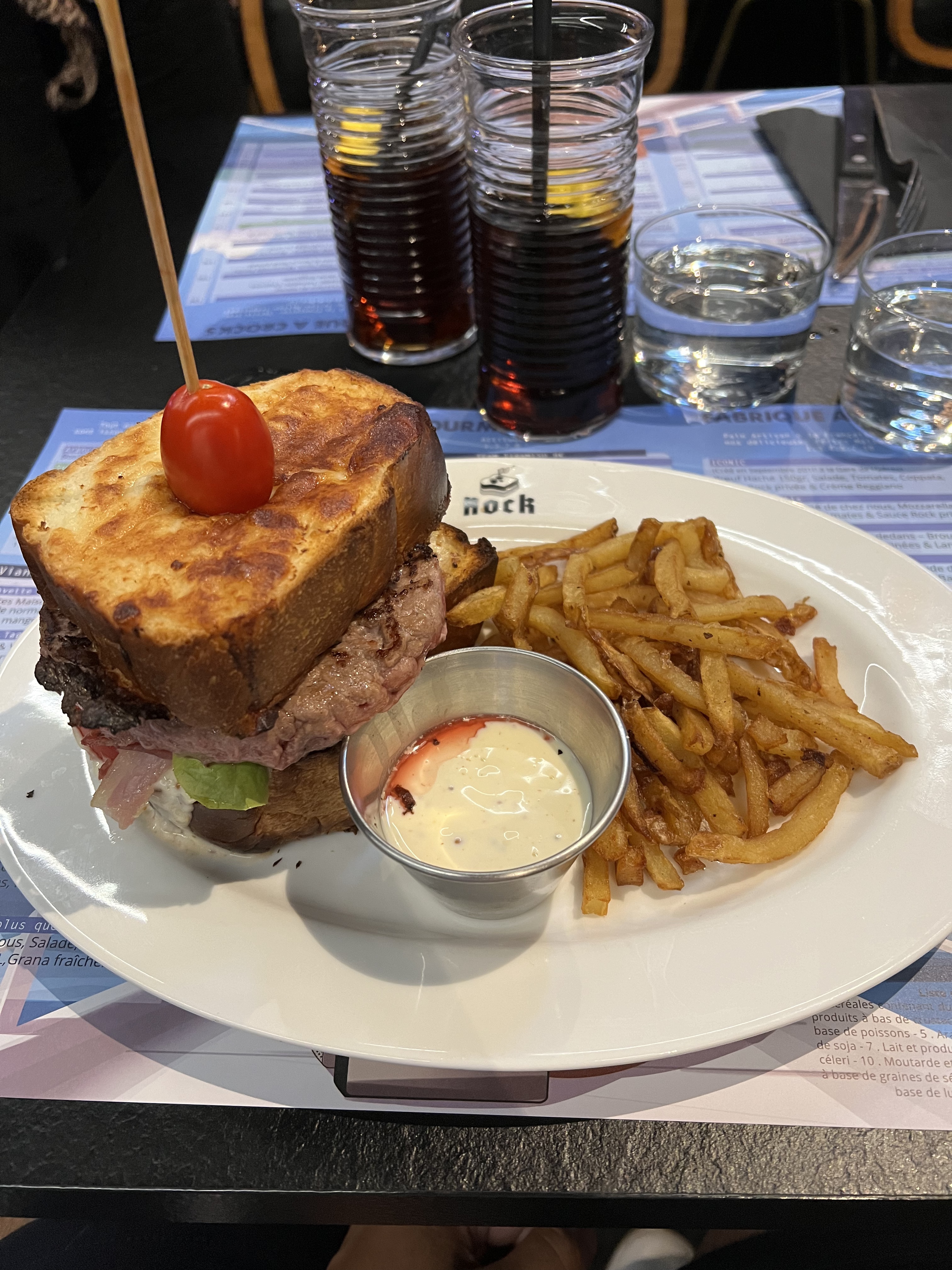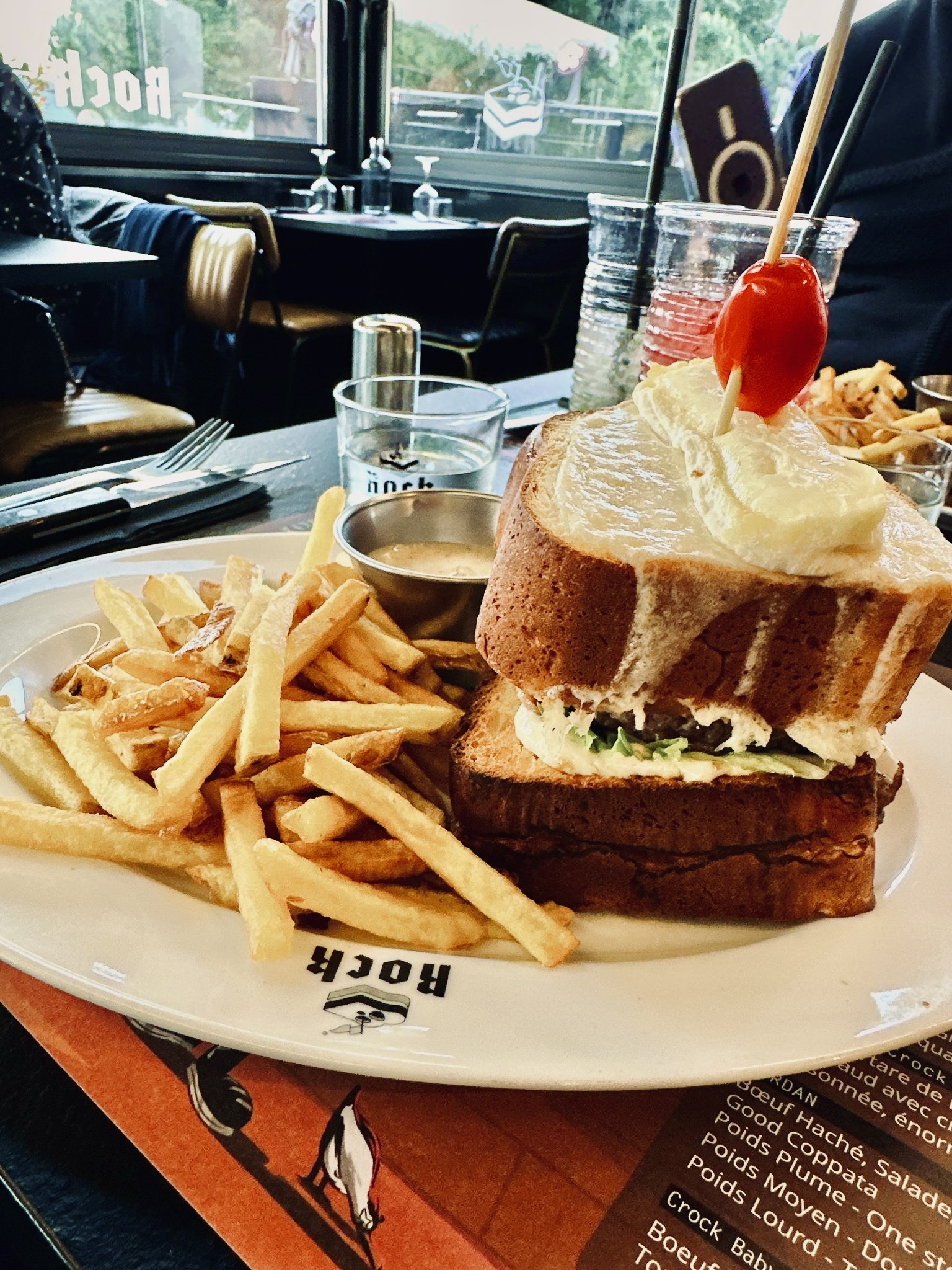 Un resto sur le thème rock n Roll. Le décor est vraiment met dans l'ambiance, sur la scène sont les serveurs et en backstage la cuisine, le service est super, les deux patrons mais aussi les serveurs sont sont agréables, sympas et taquins. La carte est pleine d'humour c'est chouette de la parcourir. Quand a la cuisine c'est très bon mais.... Sur mon iconic croc j'ai deux grosses brioches qui cachait un petit steak. Du coup le plat semble immense mais en fait la montagne qui cache la forêt. Pourquoi couper des tranches si énorme ? Ça reste quand même très bon. Je n'ai pas pris de dessert que j'ai trouvé trop chers. De ce que j'ai vu chez mes amis celui au pop corn donnait le même sentiment que l'iconic , beaucoup de pop peu de glace, chantilly.