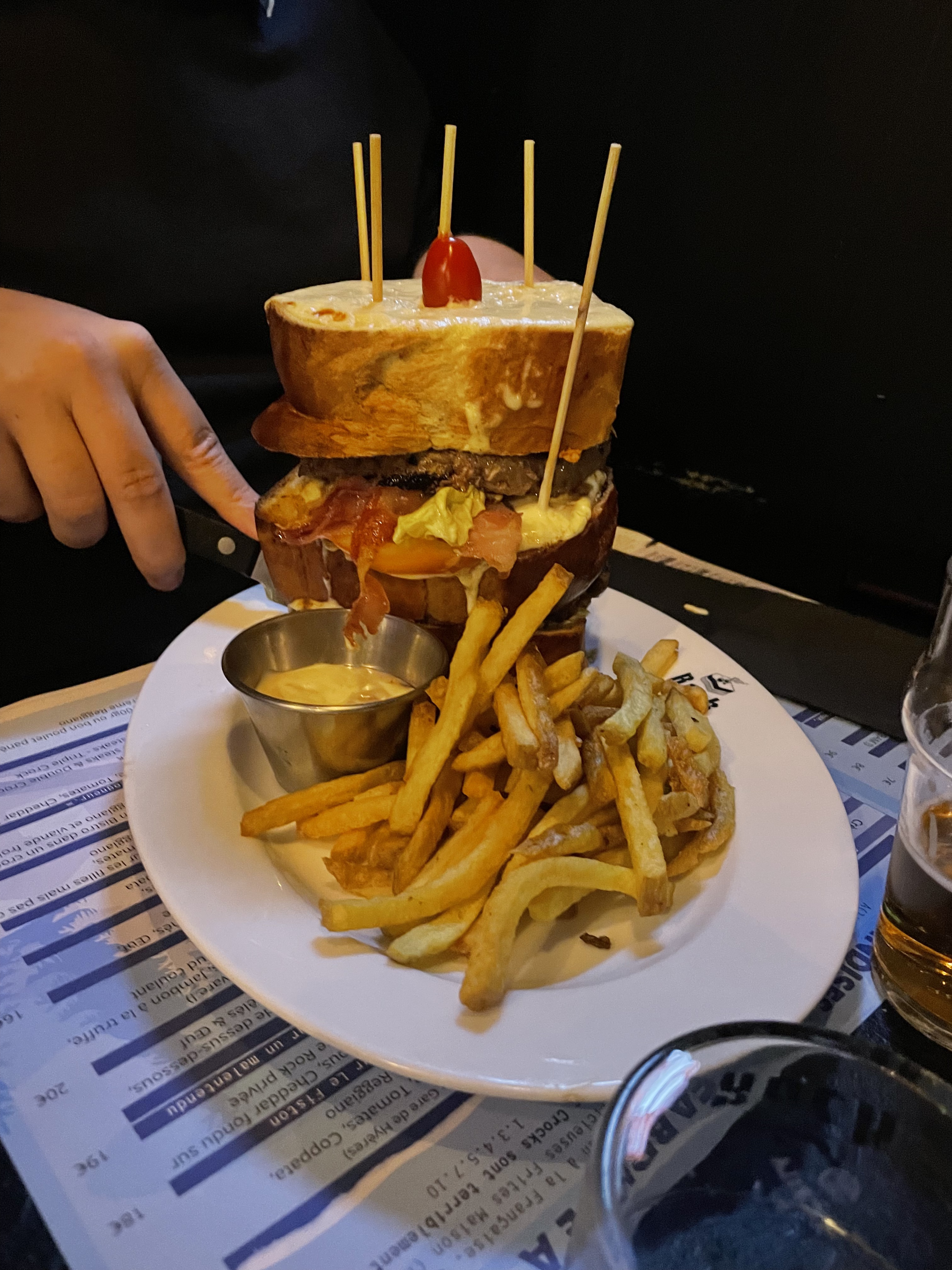 Le restaurant est très sympa, la déco vraiment top, l'ambiance est cool. Les serveurs/patron sont à l'écoute, très serviables et polis. J'avais une grosse fringale, du coup j'ai pris leur plus gros hamburger, 3 steaks avec du pain brioché. Très original mais pas très savoureux, assez fade, et cher(30€) Je ne recommande pas ce plat. Je ne jugerai pas les autres plats, je ne les connais pas et donc je reviendrai en goûter d'autres.