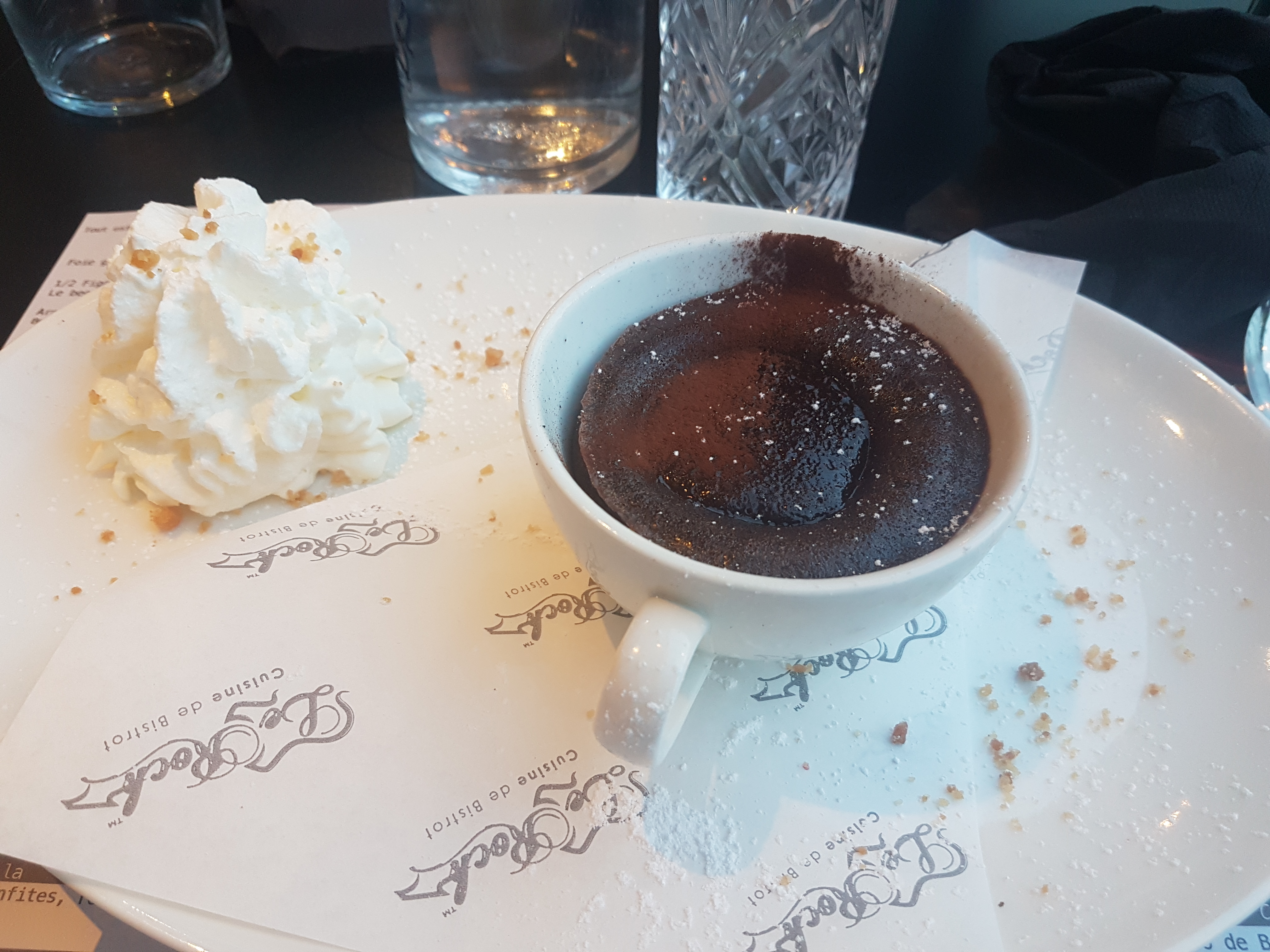 La cuisine on ne peut pas savoir, car le patron ne veut pas vendre de désert, apparemment dans cet établissement il faut forcément manger un plat et un desert. Le patron a de la gouaille mais peu de respect de la clientèle. C'est dommage car le cadre est beau.
