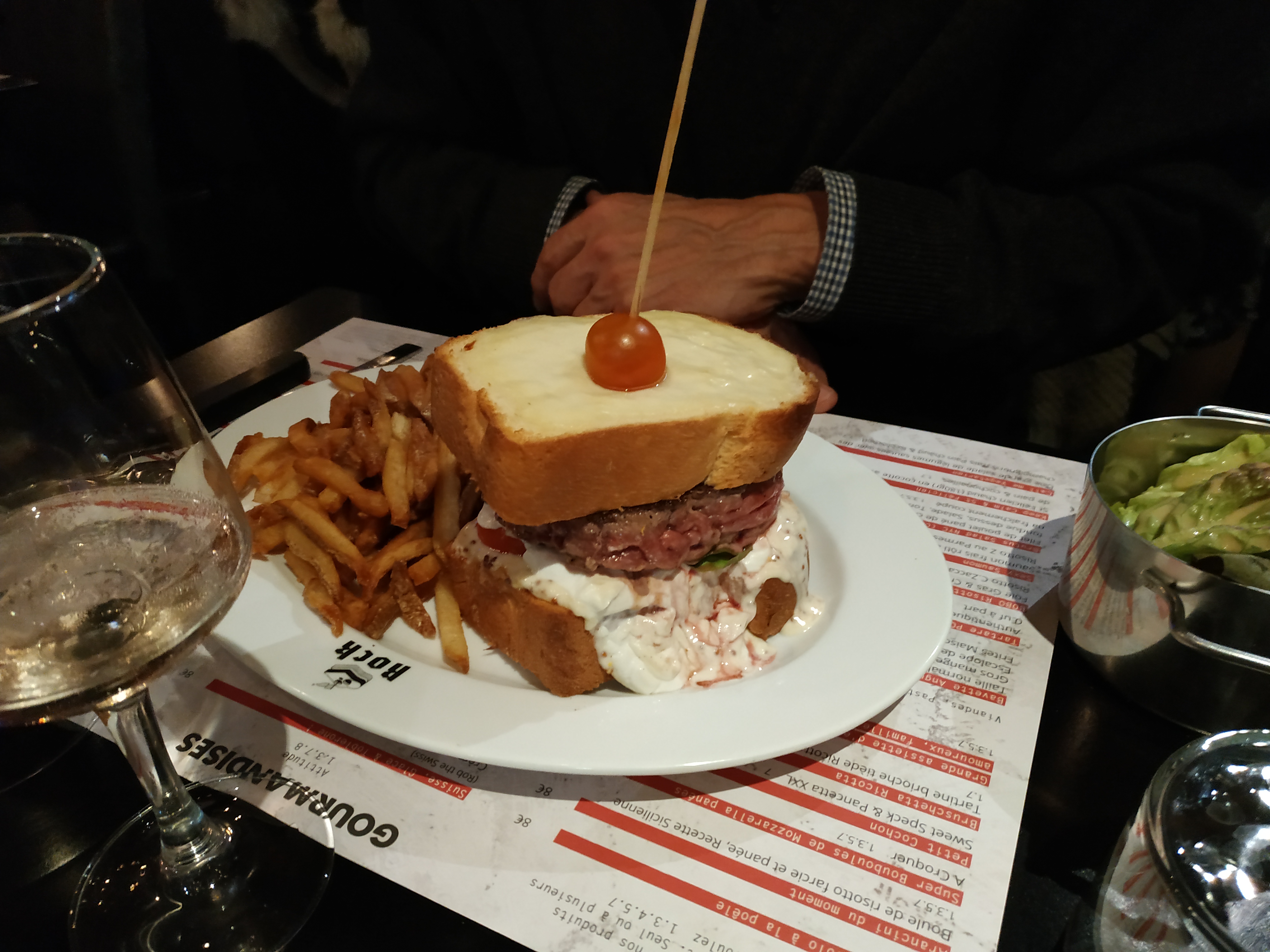 Tartare de boeuf pas très relevé mais sinon accompagnement correct. Serveur un peu dépassé donc beaucoup d'erreurs mais en même temps à lui seul il gérait le service et la caisse. Je recommande ce petit coin sympa pour repas entre potes.