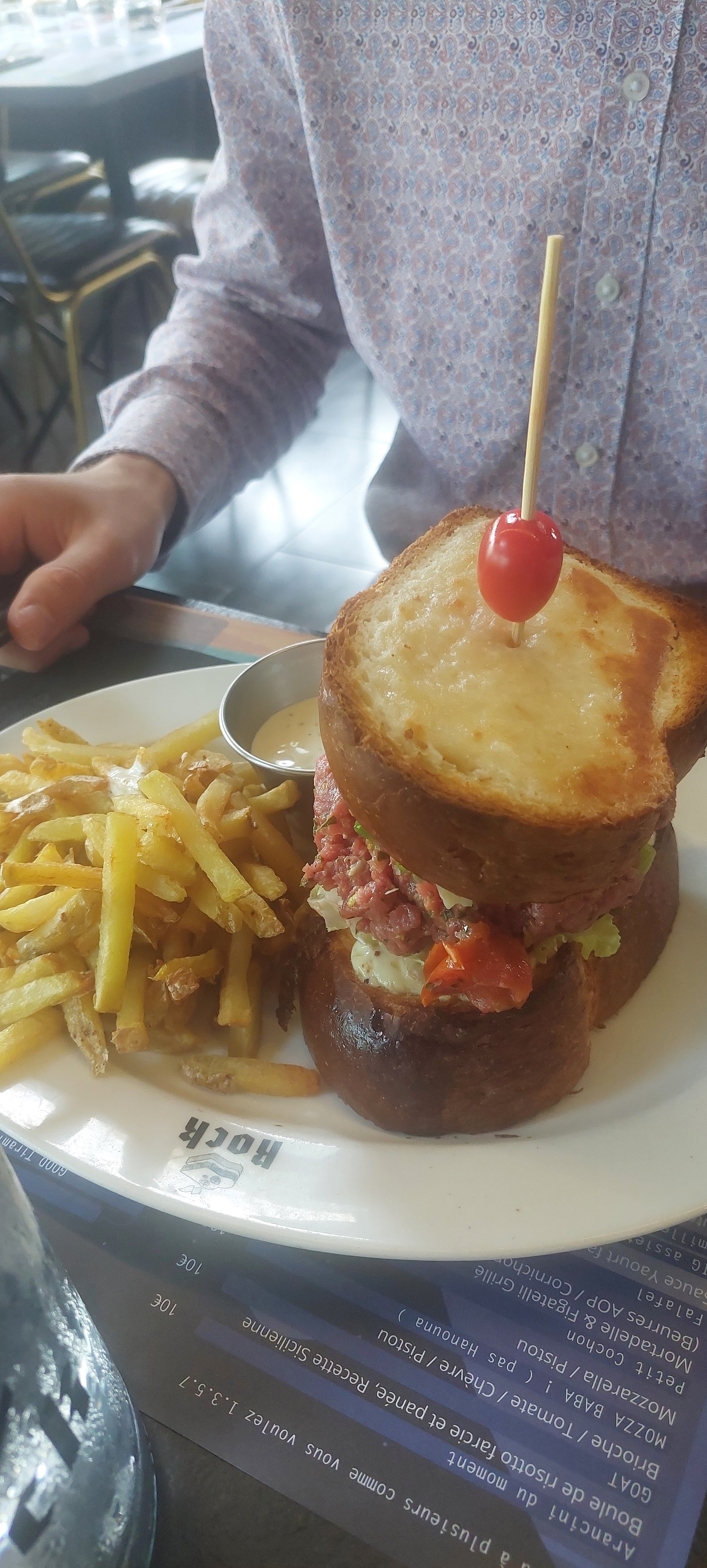 Personnel sympathique et agréable, nous a trouvé une table sans réservation malgré que le restaurant etait complet ,Cuisine au top les crocs sont super bon ,décoration de la salle fait avec goût ambiance rock restaurant très propre niveau hygiène. Je le recommande à tous pensez à réserver à l'avance.