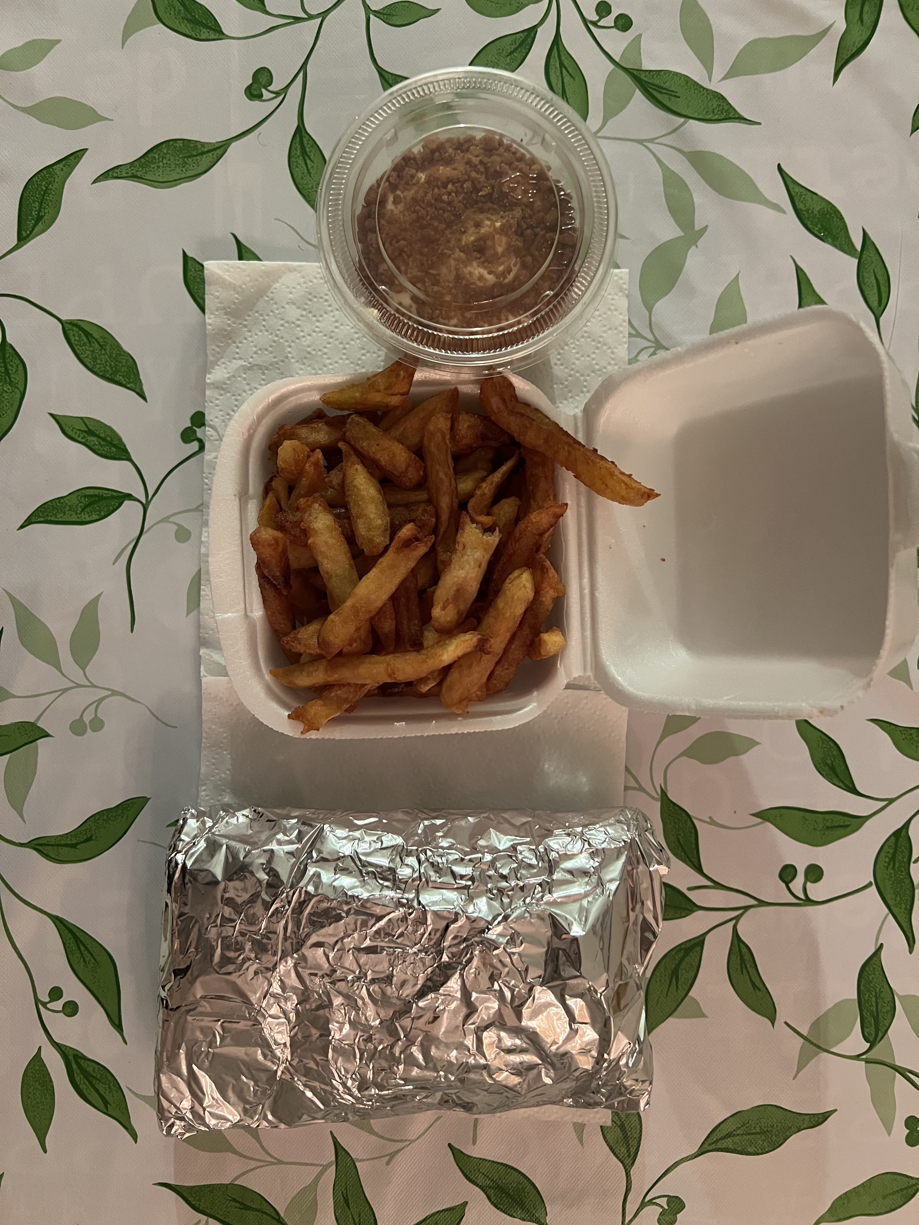 Le roi de la fritte... fritte congelé de très basse qualité, la sauce n’a aucun goût (je n’ai pas le covid) un doute sur la chaîne du froid ... L’UNIQUE POINT positif, il y a des fourchettes en plastique