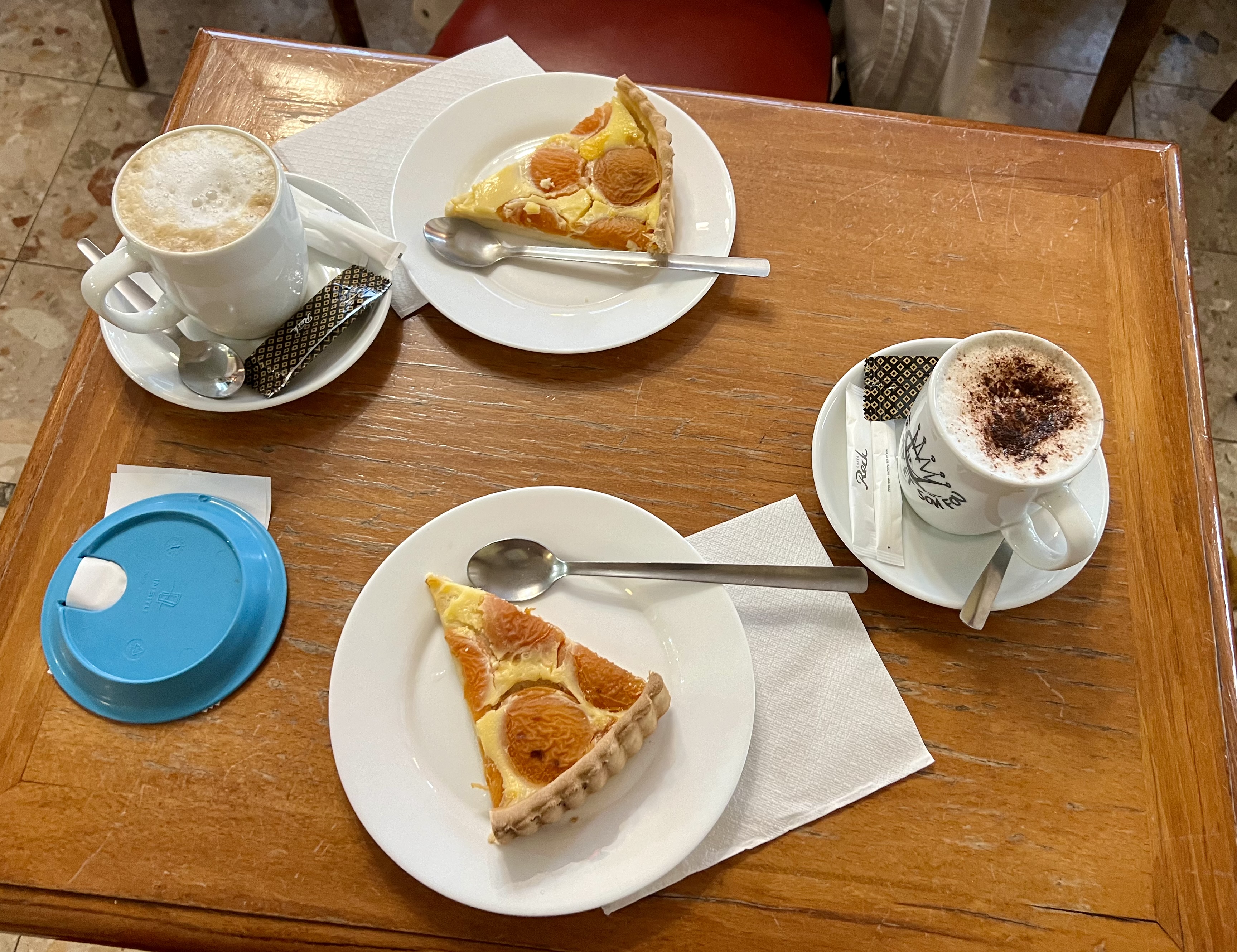 Nous n'avons probablement pas eu de chance dans notre choix. La tarte aux abricots était probablement un peu plus vieille et la pâte n'était pas complètement cuite. Le café aurait pu être meilleur. Notre conclusion : vous pouvez y aller, mais si vous avez une alternative, vous devriez l'utiliser.
