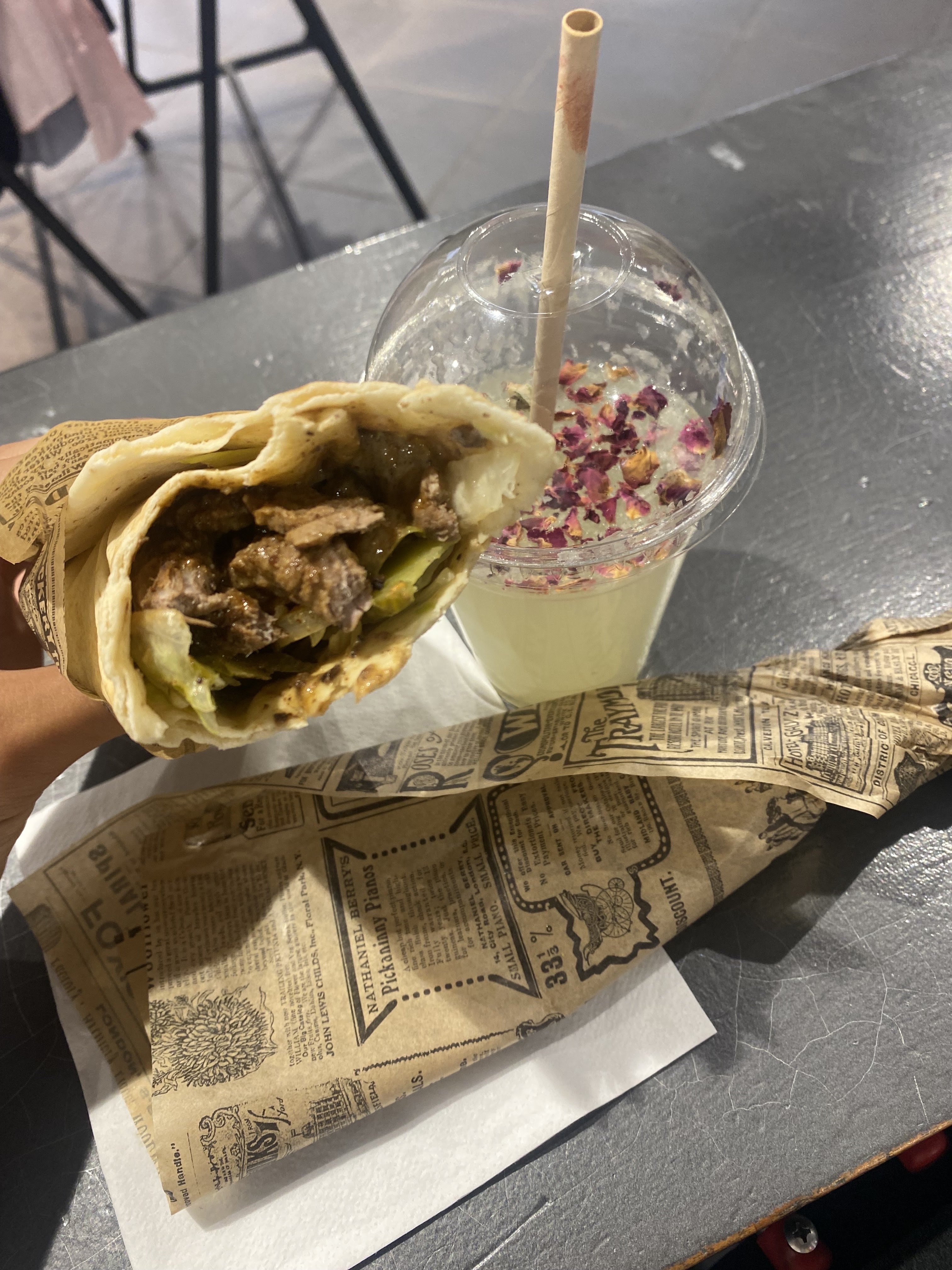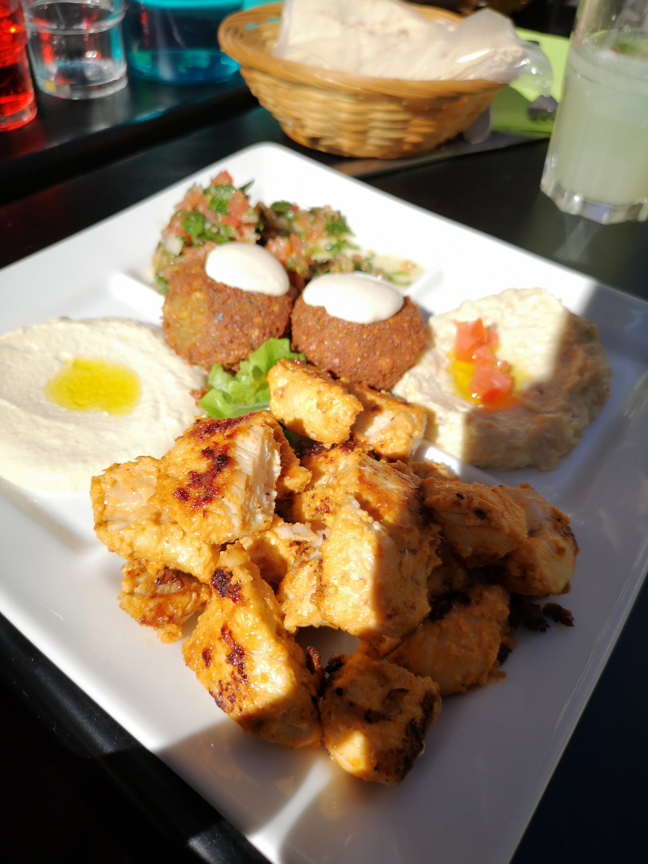 Vous y serez très bien accueillis dans ce restaurant libanais. Le patron a toujours un mot gentil pour chacun et avec le sourire !! Le poulet est bien doré et tendre à l'intérieur, les falafels sont bonnes et aérées, le hommos bien assaisonné est léger, le taboulé et le moutabal (caviar d'aubergines) sont légers et super frais. Perso, j'ai adoré le moutabal avec la galette !! Le tout accompagné d'une citronnade faite maison avec ses pétales de roses 🌹