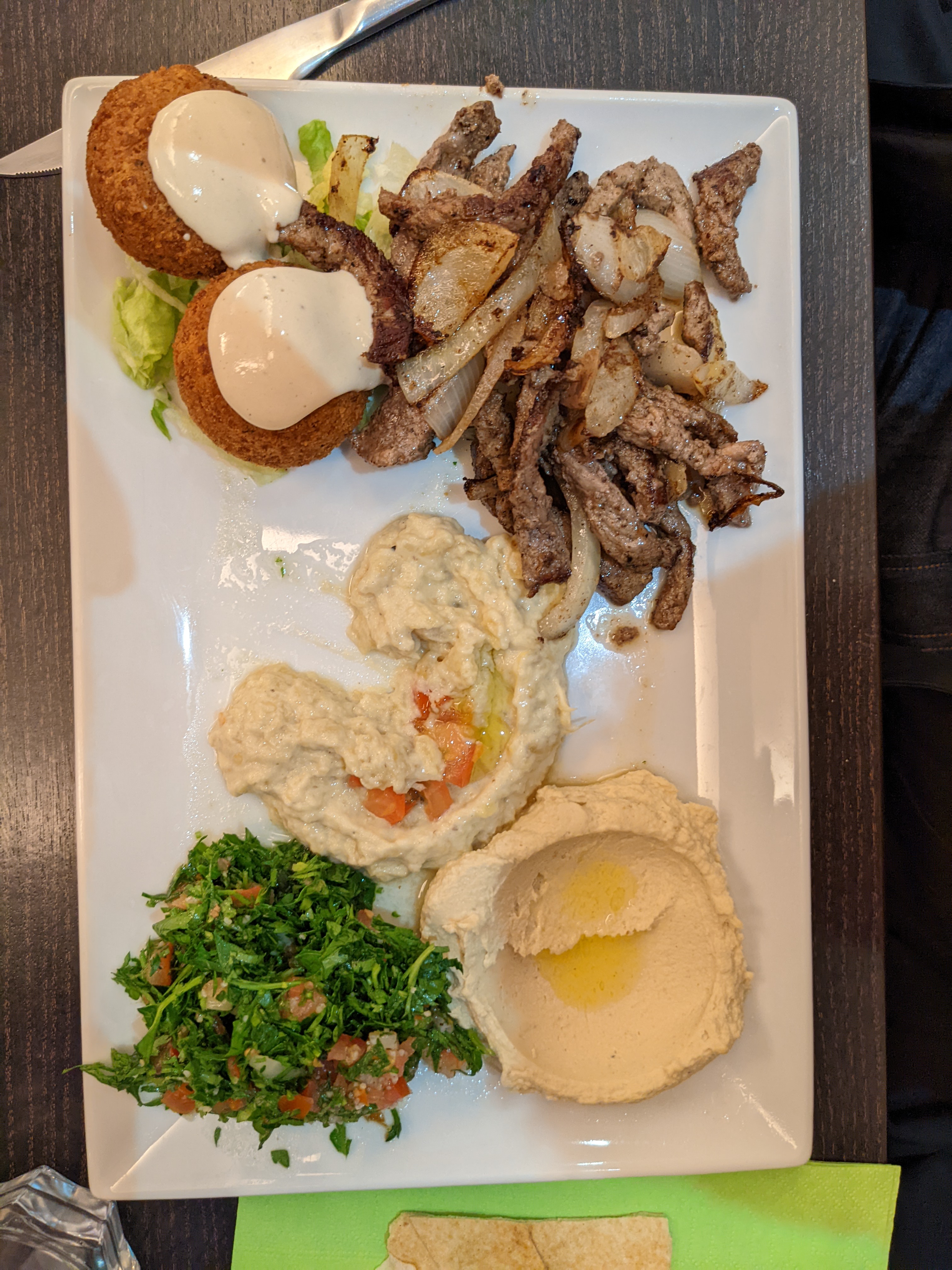 Ça fait un moment que je n’y suis pas allé mais c’est toujours si BON. Vraiment les bonnes assiettes délicieuses avec des ingrédients de bonne qualité. Les falafels, hummus, taboulés … les meilleurs à Lyon. Et les Kibehs… sublimes ! It’s been a while since I’ve been but it’s great to know that it’s still SUPER GOOD ! The assorted plates are delicious made with fresh ingredients. The falafels, hummus, tabouleh are the best in Lyon. And the Kibehs…. Really outstanding. Always a fun meal.