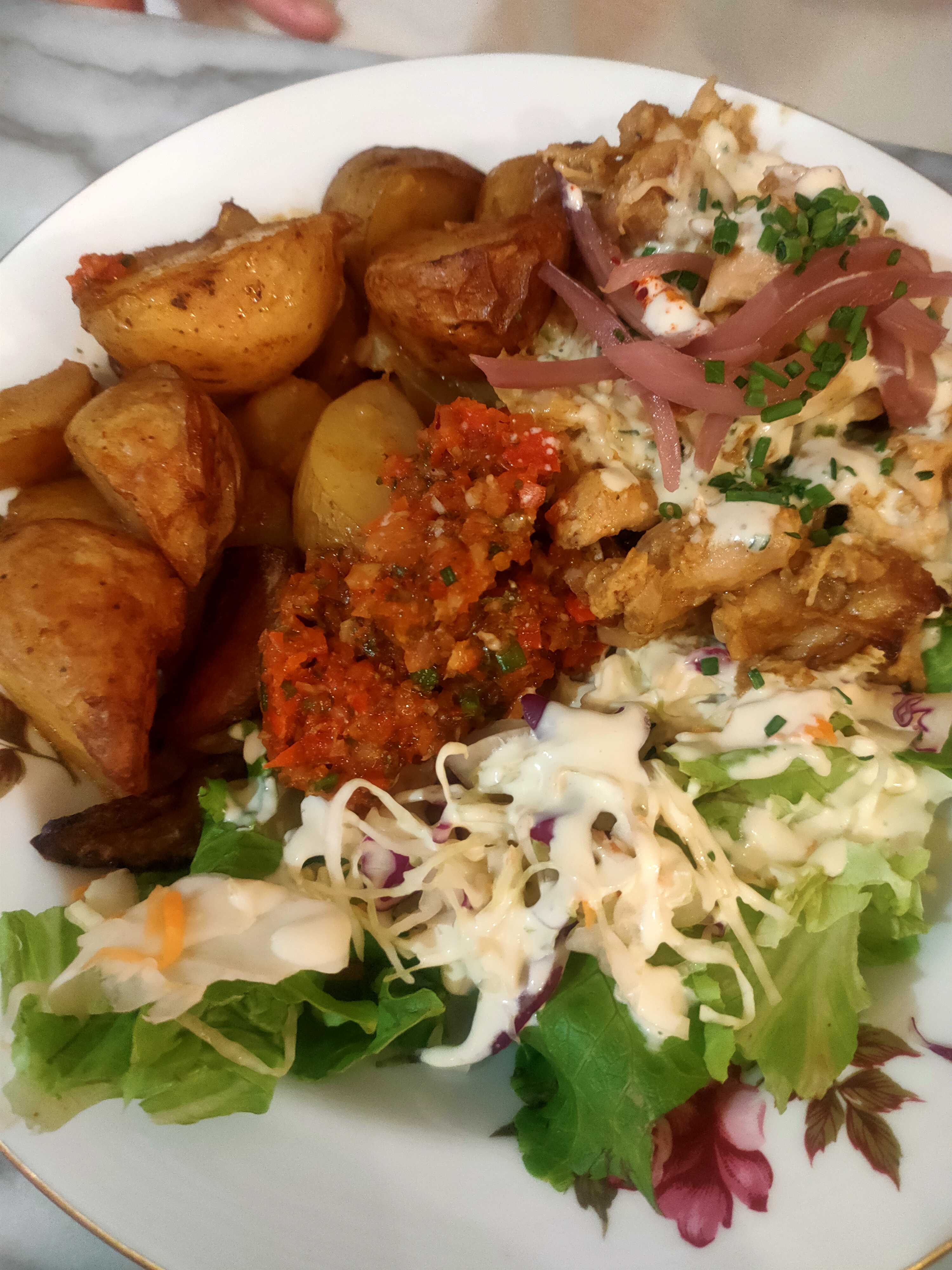 Le Roll poulet avec supplément fromage , pomme de terres en accompagnement avec sauce ciboulette et la citronnade c’était parfait! Merci à l’équipe pour son accueil chaleureux, service irréprochable de la serveuse qui nous a très bien conseillé.