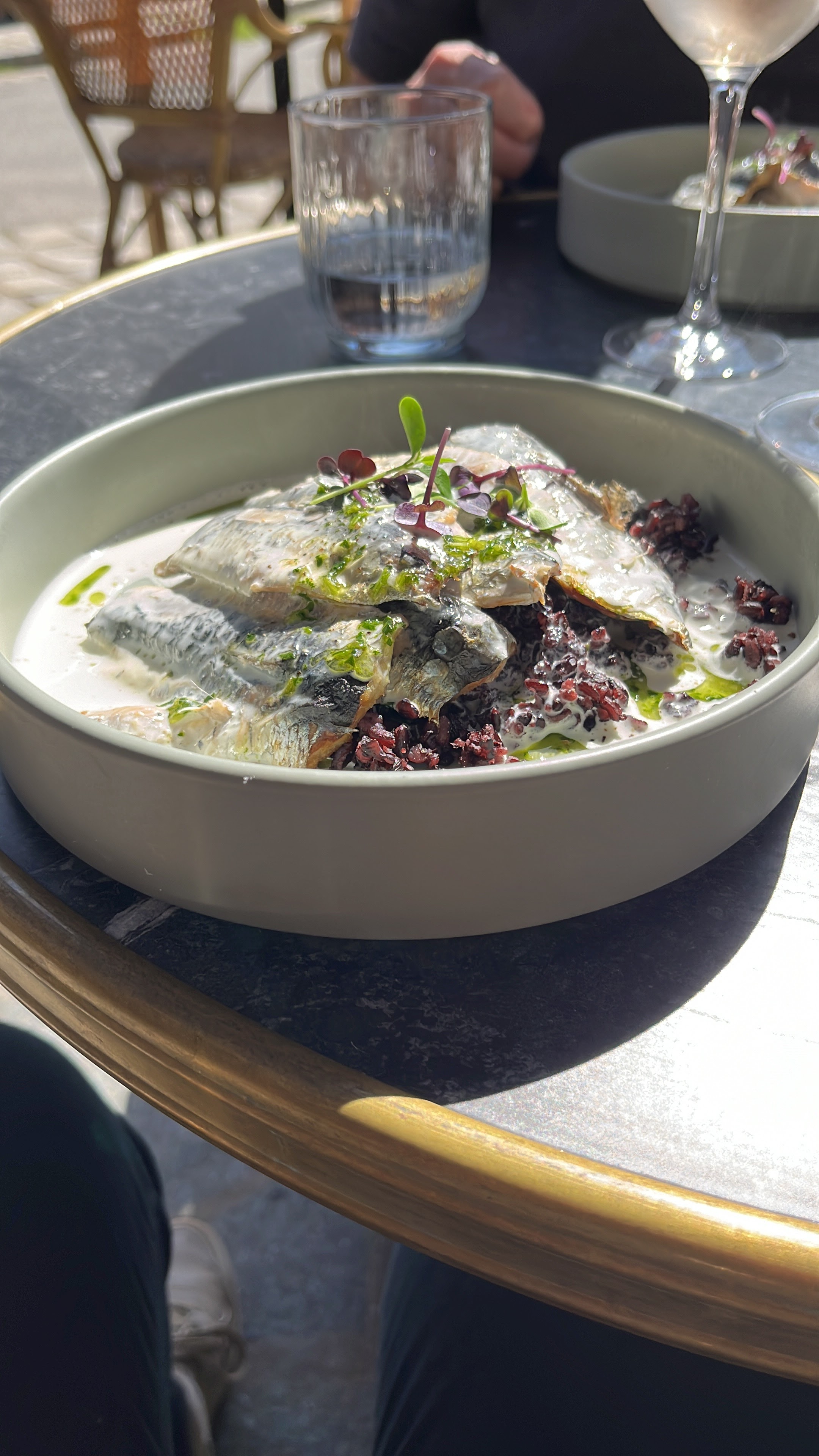 Cela fait maintenant 3 fois que nous allons dans ce restaurant, toujours bien accueillis, la cuisine est fine, le service sympa et attentionné. Les prix sont très compétitifs. Cette fois nous avons pris le plat du jour et sans regret👍 Sardines du pays au riz noir avec sa sauce émulsionnée au citron et un financier au coulis de fruits rouges. Excellent