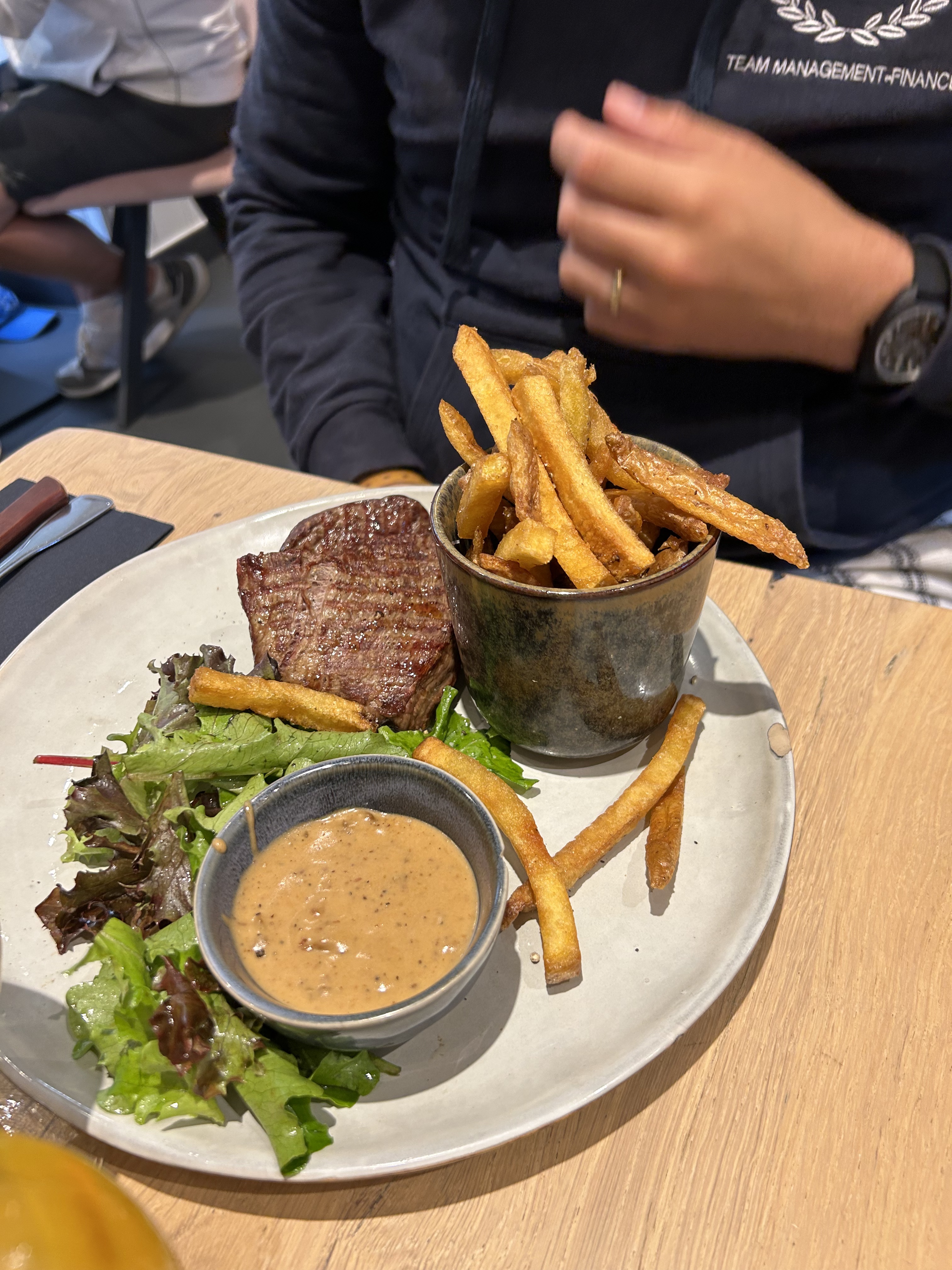Bon dans l’ensemble, 2 serveurs dont celui qui vient de la Grèce sont excellent ! Très serviable, à l’écoute et une bonne touche d’humour, mais la 3ème serveuse (probablement la gérante) qui prend les commandes peut être plus courtoise et malheureusement elle a l’air(meme si je peux me tromper) d’être stressée. Par example: on évite de dire “m..e.r.d.e devant les clientèles meme si le chien à côté de notre table vous a gêné, même si c’est humain de le dire pour pouvez au moins excuser à la table à côté et nous meme. Les 2 tables ont entendu et ont été choqué. Deuxième example: On pose la question quel genre de kir? Réponse: comme c est indiqué à la carte… on répond, c est où? Réponse kir framboise ,.., comme c est indiqué à la carte Oui, effectivement c est une bonne response mais vous pouvez aider à trouver la carte au lieu de rien dire et attendre 30 seconds.. sinon la nourriture est très bonne et de bonne qualité! Bon restaurant Merci.