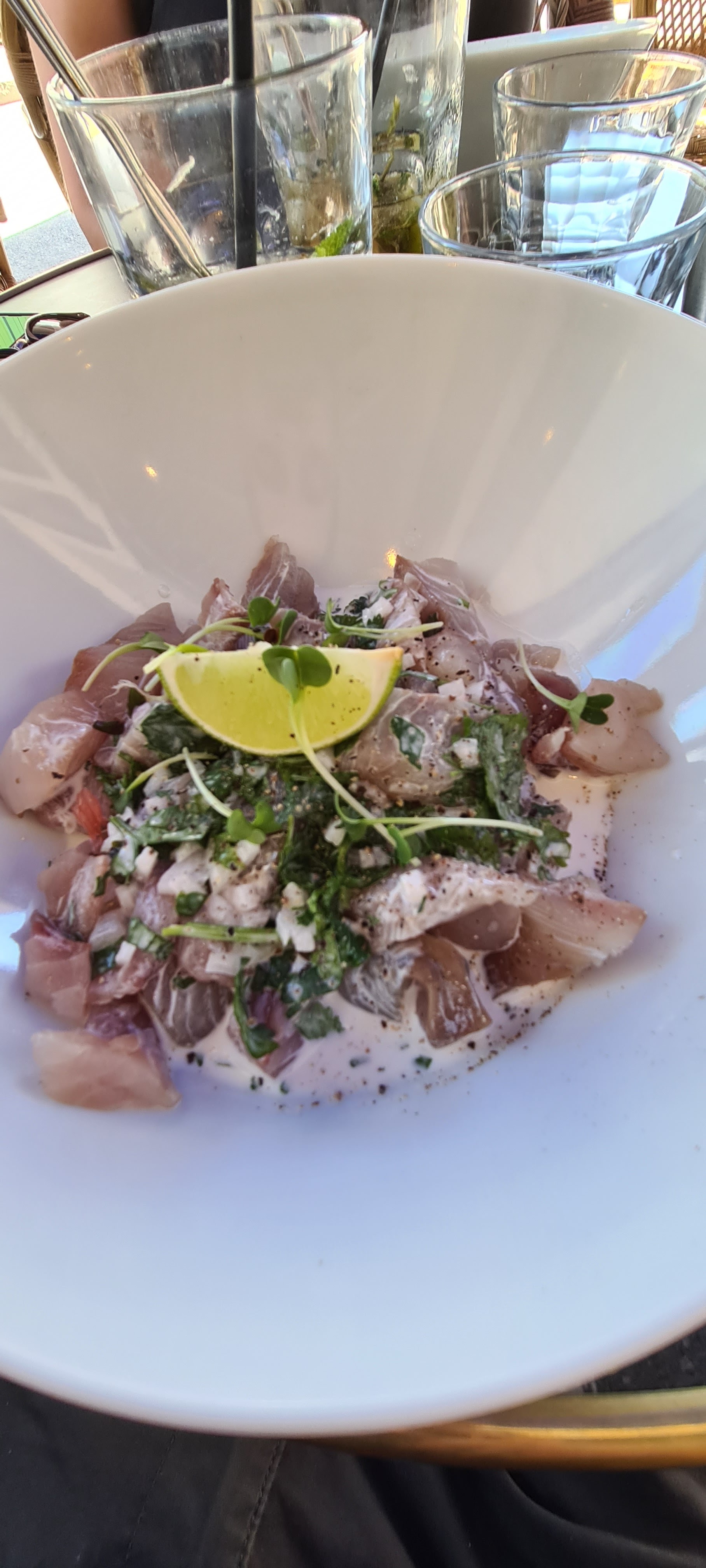 De passage à Noirmoutier avec mes parents, nous avons choisi ce restaurant dans le centre et nous n'avons pas été du tout déçus ! Accueil soigné, ambiance musicale agréable, décoration de bon goût avec de belles compositions florales et une vaisselle très bien choisie : bravo pour cette rénovation réussie !! Côté assiette, nous avons été ravis par le menu entrée + plat avec les options végétariennes disponibles : oeuf mollet en entrée et gnocchis à la sauge en plat. Côté mer, vous trouverez votre bonheur avec notamment un ceviche de lieu noir et un tartare de thon (cf photos). Petit + : le blanc de blanc dans une flûte très élégante ! Le service est de qualité, avec le sourire et une vraie attention. Allez-y sans hésiter !