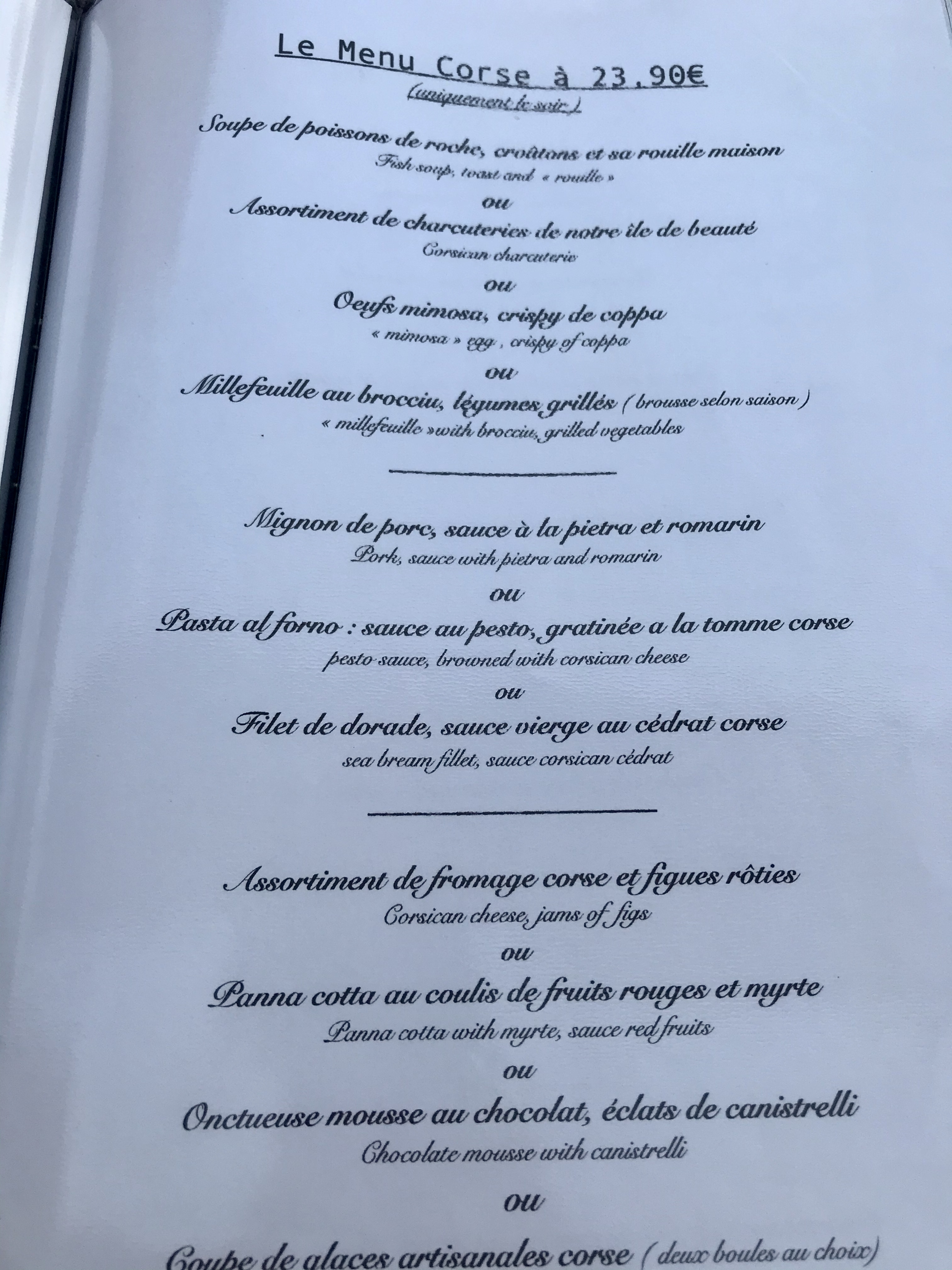 Pris le menu corse. Bien dans l'ensemble. Personnel aimable et cuisine savoureuse