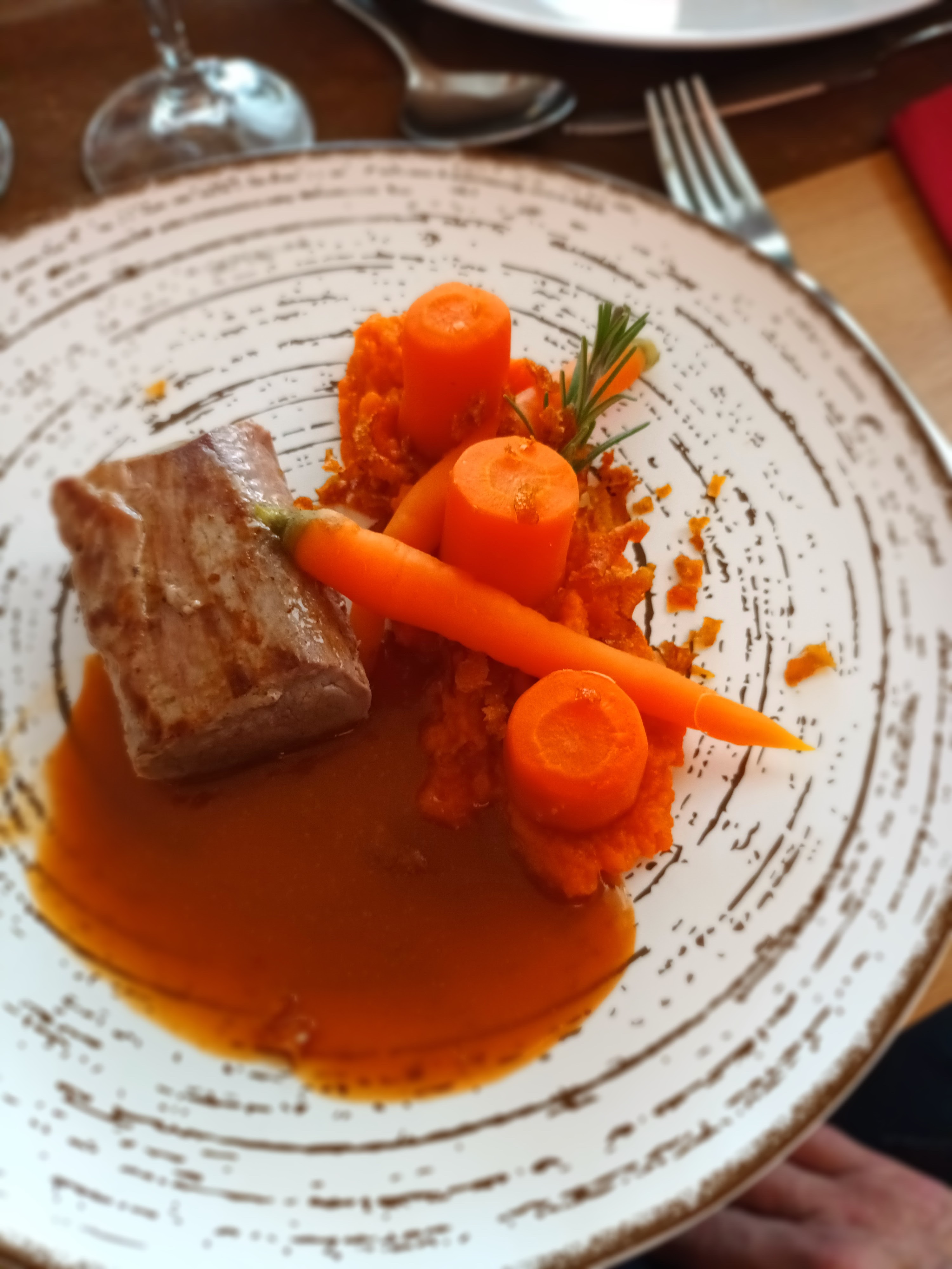 Tout était super, les 2 plats à base de poisson était excellents. En ce qui concerne le cochon sur paille celui ci était un peu dur cependant le goût était la. Les 3 desserts était également au top. La serveuse souriante très agréable.