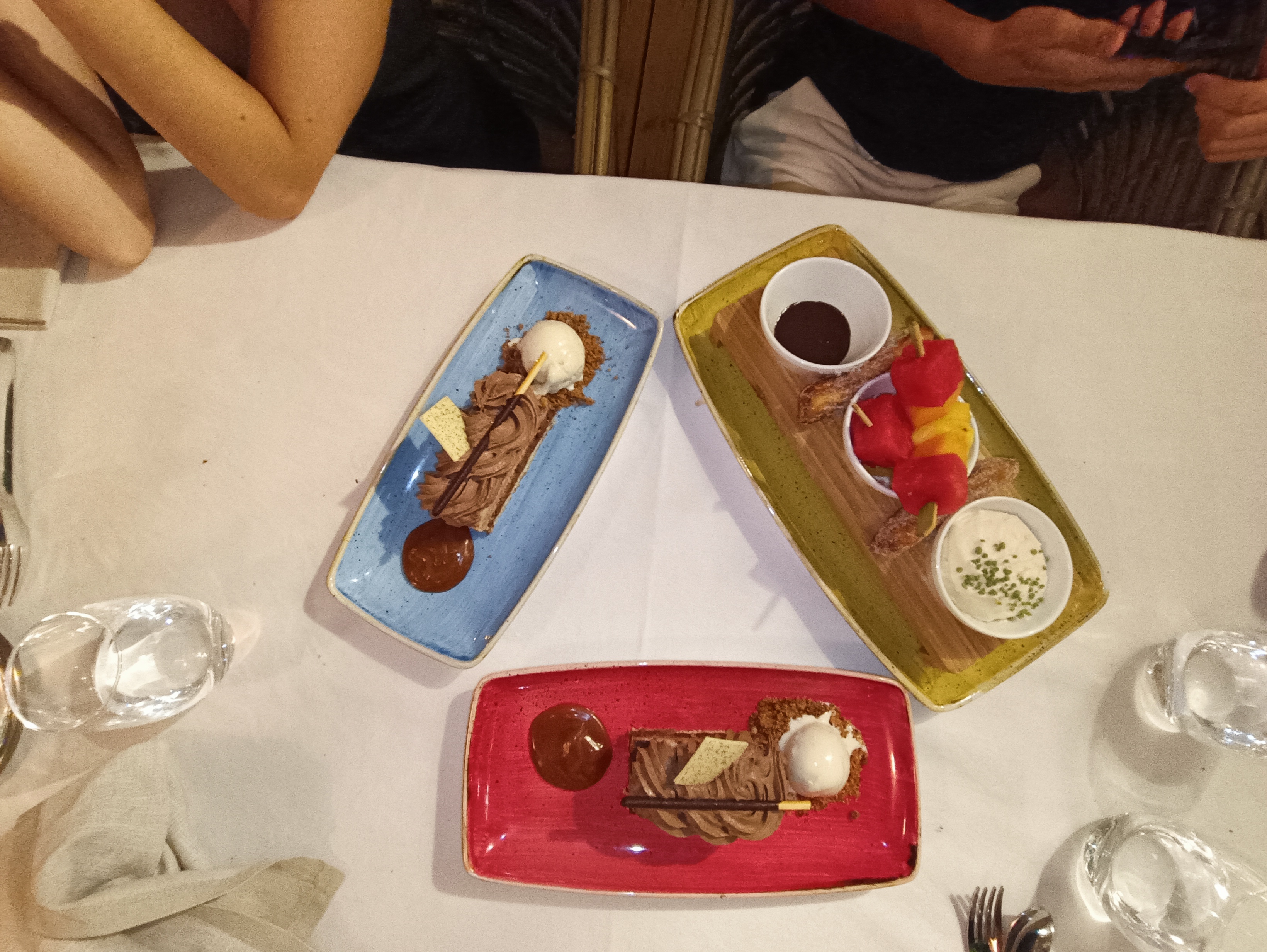 C'était parfait !! Avec belle vue, on a bien mangé. La pizza était trop bonne avec de la super pâte et beaucoup de saumon (dommge je n'ai pas pris la photo...) Les desserts étaient troooop jolis et bons !!!!