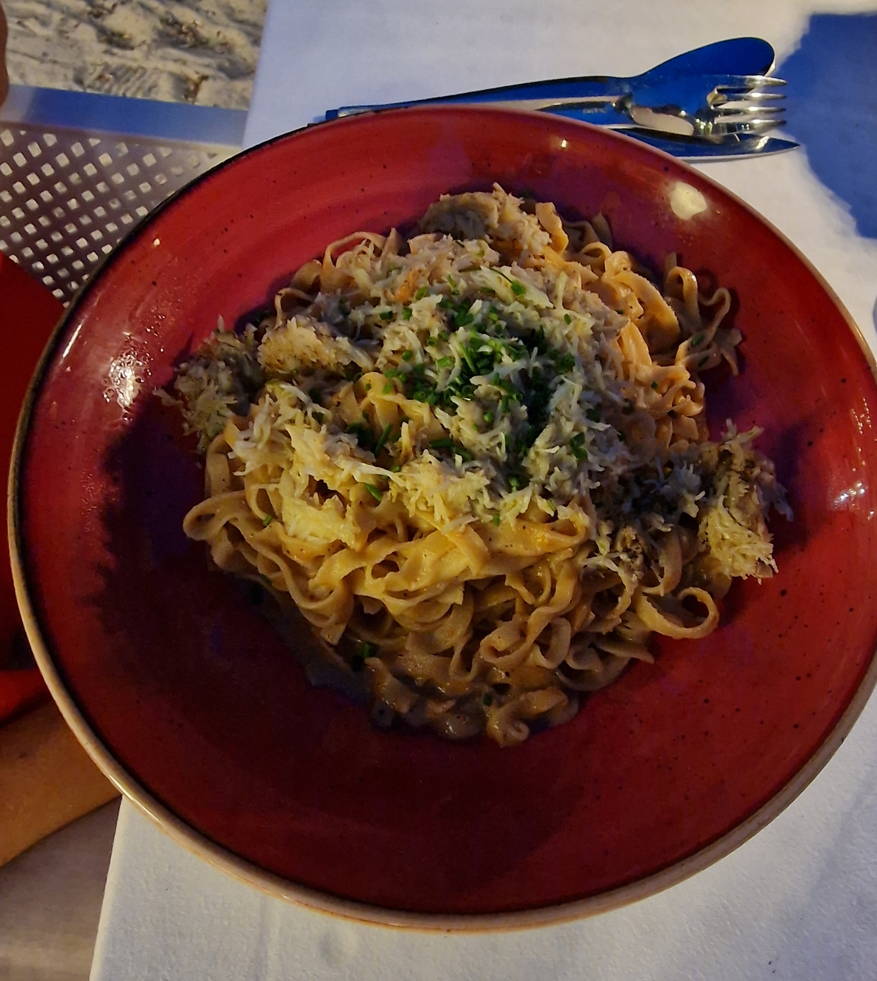 Un peu cher néanmoins, 26€ pour des pâtes, pas renversant, service correct il a quand même fallu réclamer le pain....
