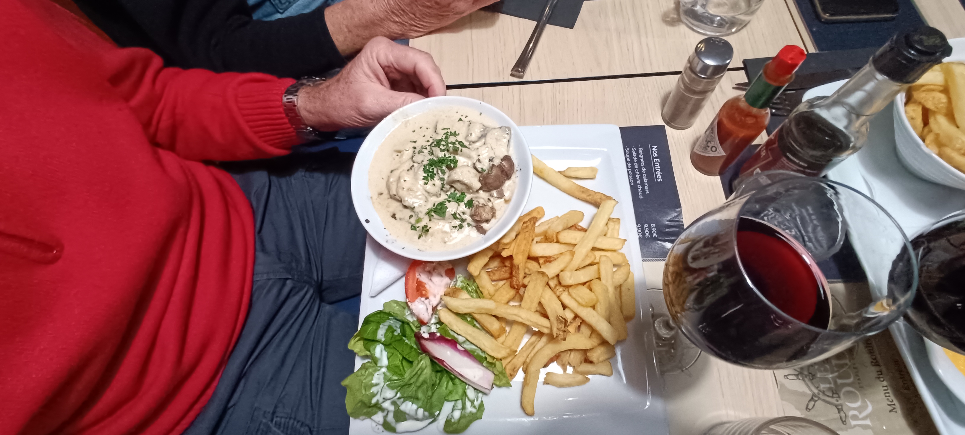 Nous étions 2 et nous avons été super bien reçu alors qu'il était 13H45 ! nous avons mangé des moules et nous nous sommes régalés équipe très sympa 👍