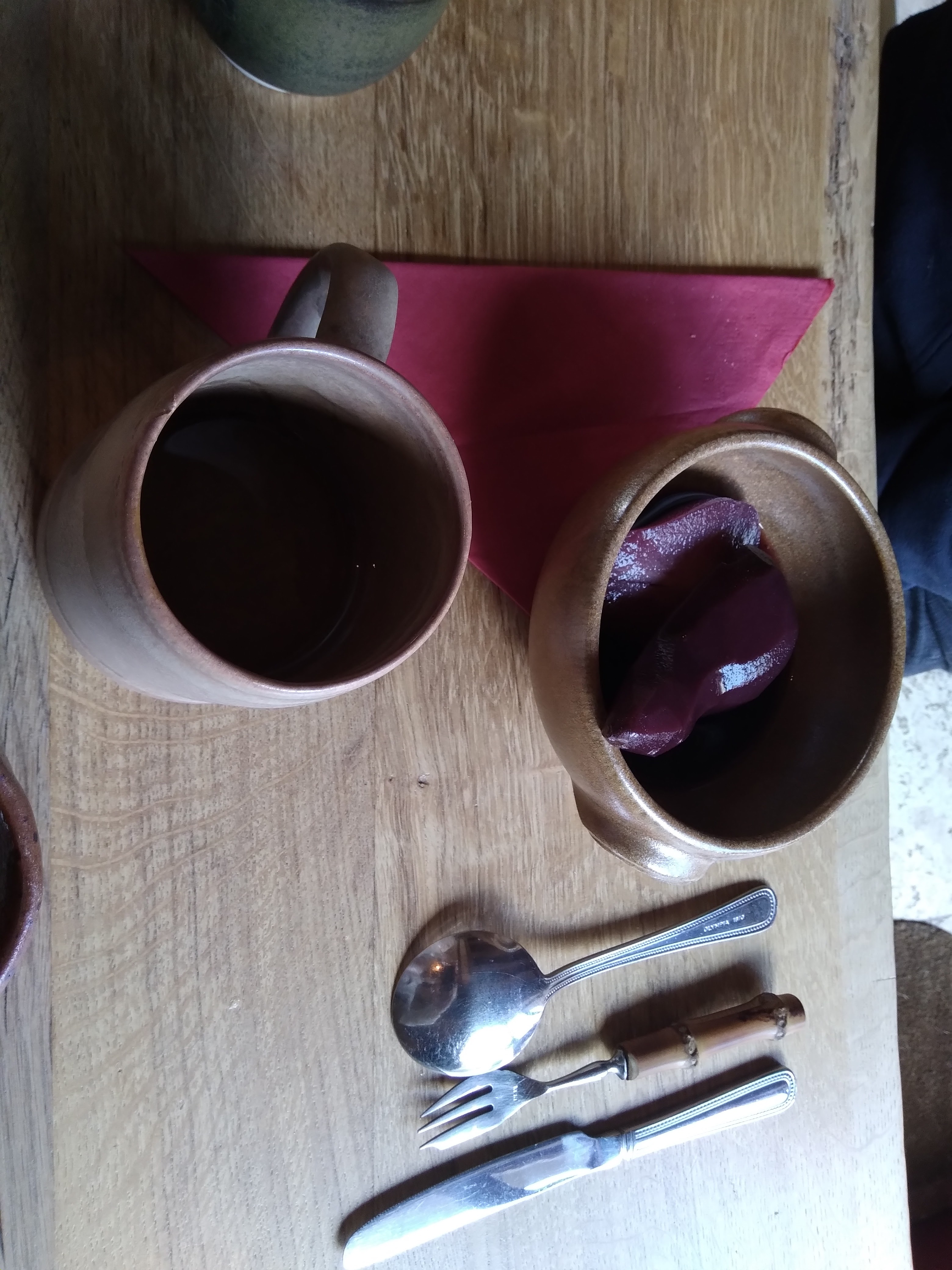 Nous nous sommes arrêtés là par hasard et nous y sommes retournés tellement on a apprécié. On a aimé la différence des plats d'inspiration médiévale, la petite carte garante du fait maison, les produits frais et plutôt locaux et l'accueil. Les boissons sont tout aussi médiévales : hydromel, hypocras, limonade citron bergamote, bières... Et le petit plus qu'on a bien apprécié c'est l'accueil de notre chien que ce soit en terrasse ou à l'intérieur.