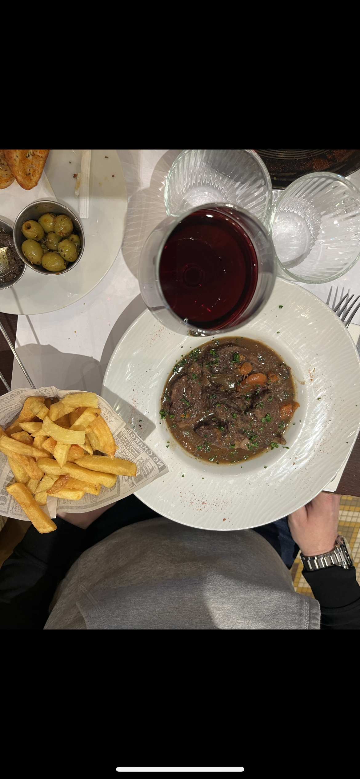 Je suis venu avec mon mari manger pour notre premier séjour à Paris et je ne sais que dire… Les serveurs ne font pas attention à nous ni à notre commande. On commande du vin qui n’est jamais venu à nous. Mon mari a pris un bœuf bourguignon, ce n’était que du gras et les pommes de terre étaient fade. J’ai pris un tartare de bœuf, je n’ai jamais mangé quelque chose d’aussi scandaleux. J’en ai eut mal au ventre. Puis on essaie de commander une carafe d’eau mais impossible d’appeler un serveur car ils nous esquivent et ne veulent pas nous servir. Mon mari a du lui même aller la chercher au bar et le chef lui donne une carafe à la main. Pour finir par payer un prix beaucoup trop élevé pour ce que c’est. C’est une honte pour un bistrot !! À fuir !!