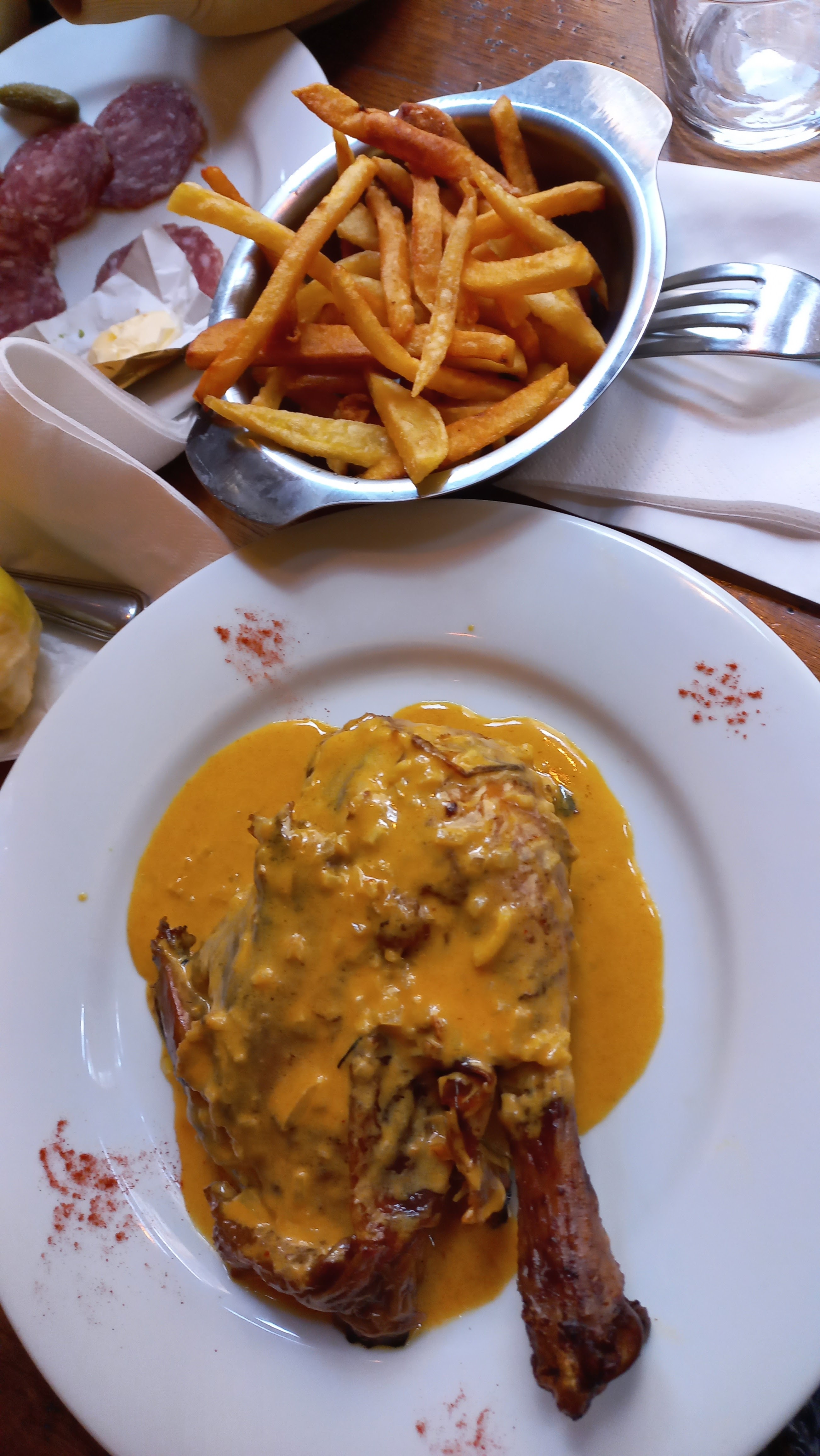 Un super endroit avec une cuisine délicieuse et un bon service, pas trop cher. Nous avons commandé des escargots et un canard avec des pommes de terre grillées - les deux étaient très bons.