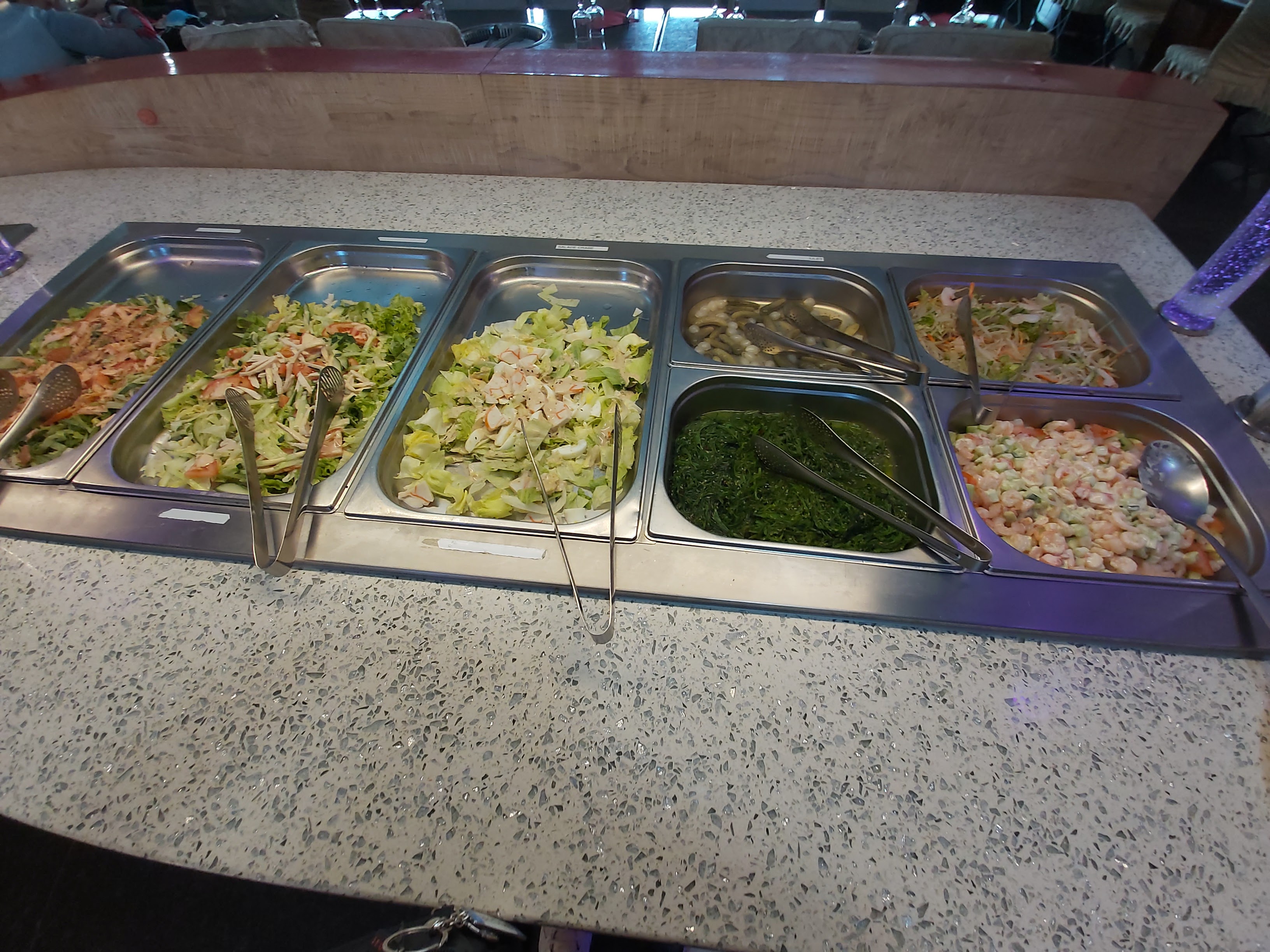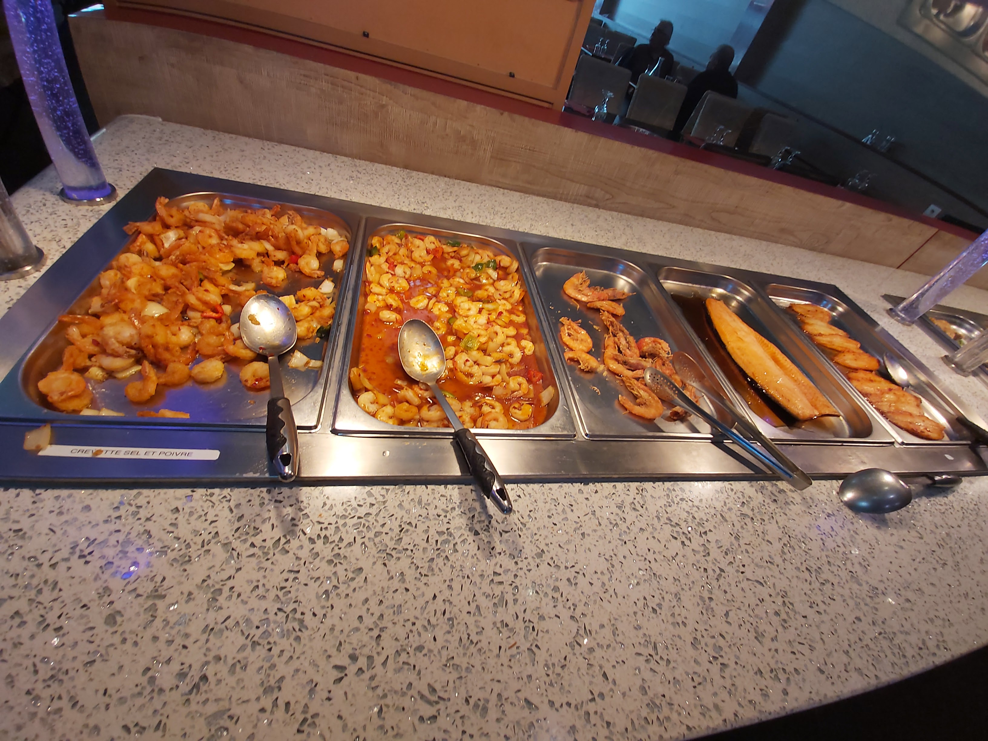 Beaucoup de produits bas de gamme, sushi, crevettes salade de crevettes, viandes, les toilettes immondes, je pense que ce restaurant est en difficulté financière j'ai connu mieux dans ce restaurant il y a quelques années...