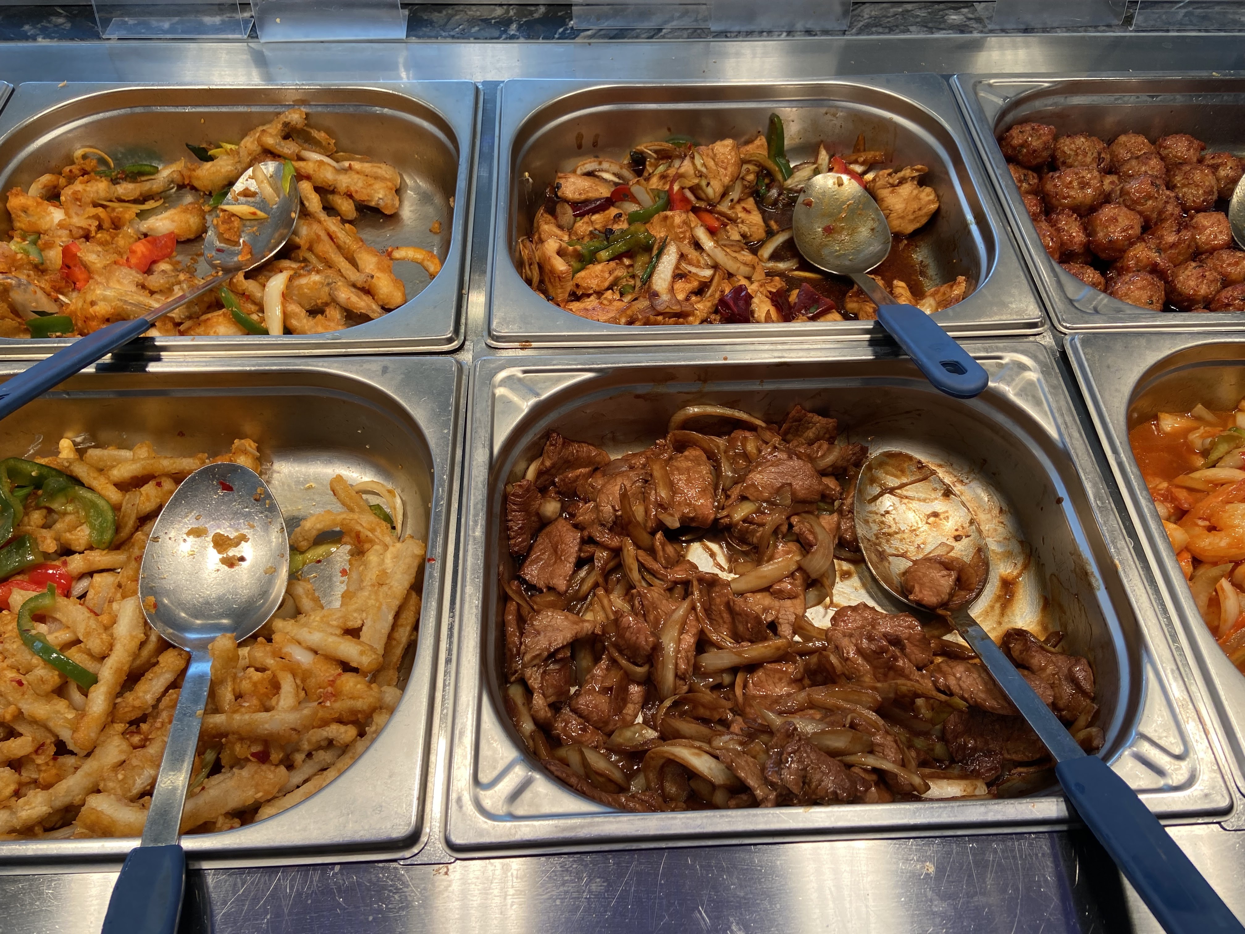 Assez déçue les plats chauds sont quasi vide pourtant il y a très peu de clients. Personne pour nous accueillir quand nous sommes rentrés. Le riz cantonais est très sec. Pas grand choix dans les entrées froides. Pas de fond musical juste le bruit des machines en cuisine. Dommage car la salle est très belle.