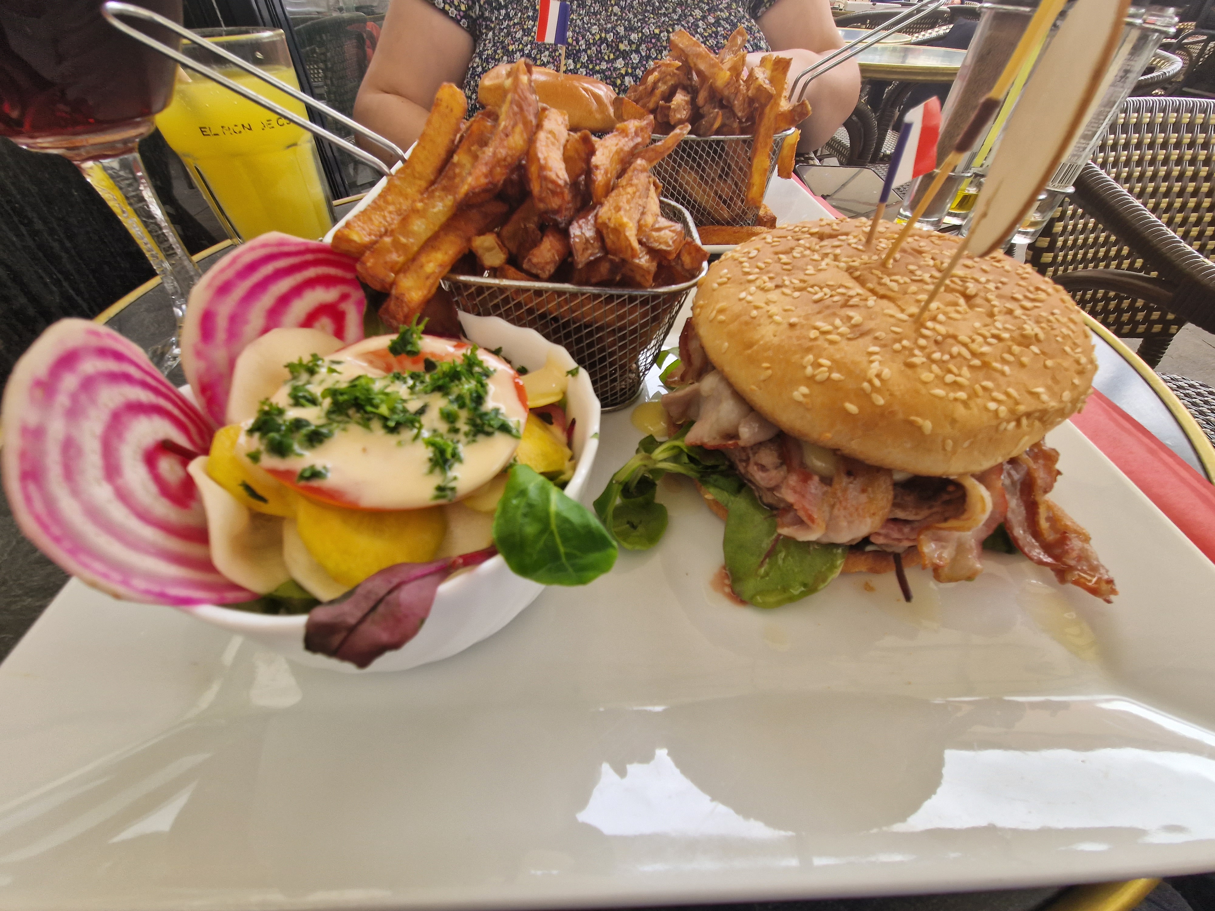 Le service est très, très, très long... Les plats classiques, bons sans plus, c'est la première fois que j'ai mangé des escargots avec sa sauce persillée mais sans ail.. Puis le burger le pain un peu brûlé sans sauce, pas bcp de fromage et sans goût ... Je n'y retournerai pas.