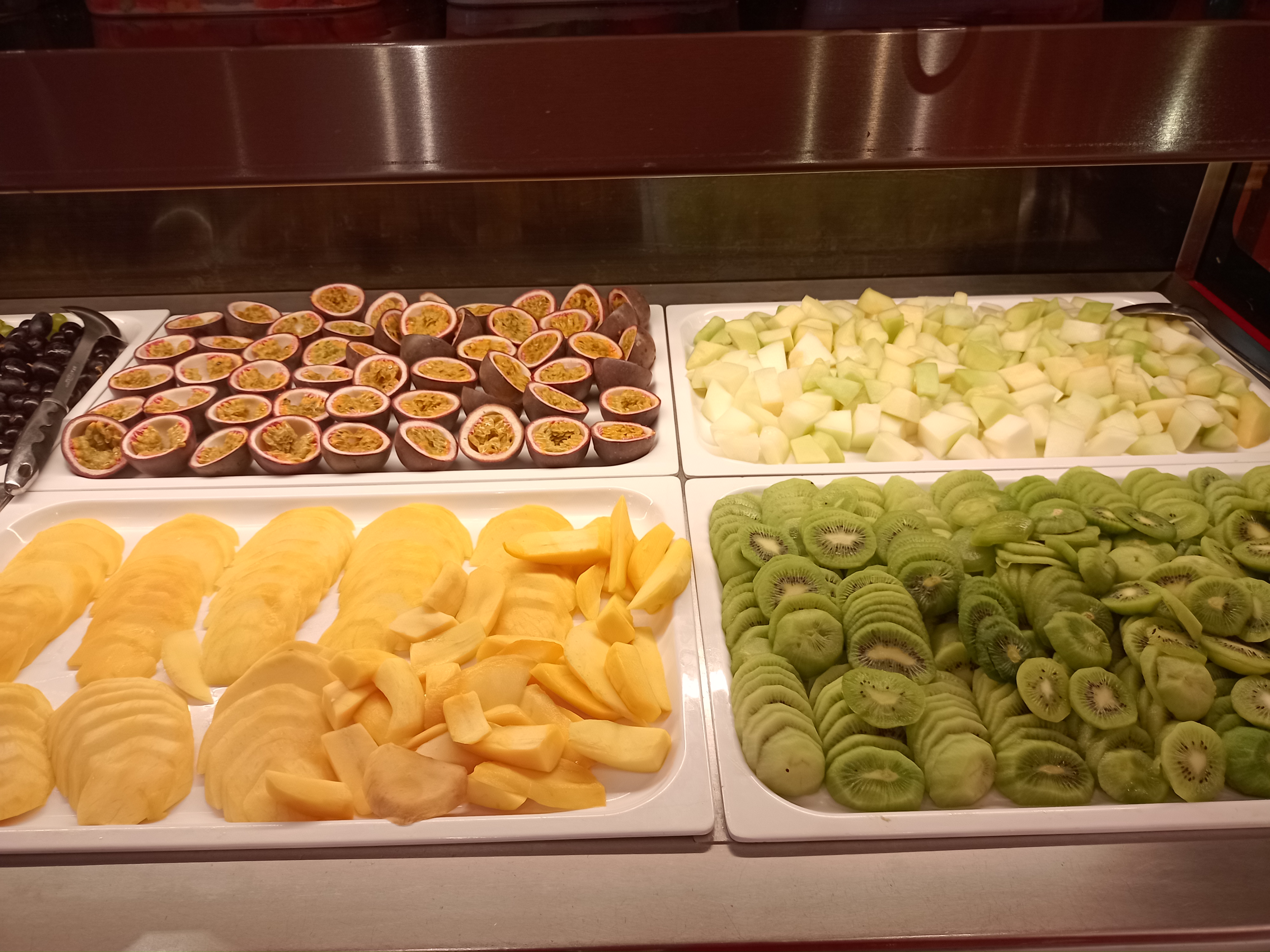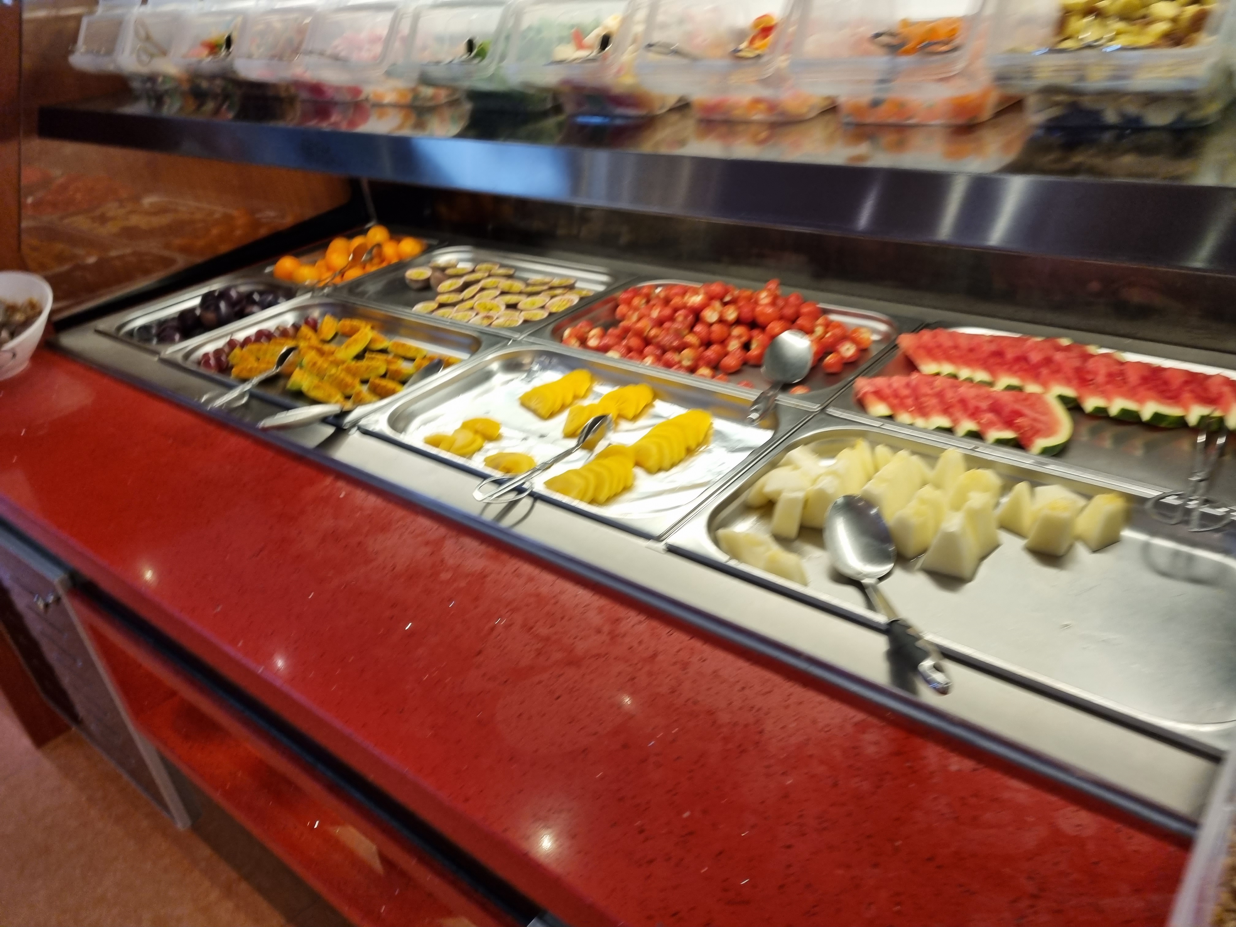 Ces dernières années, sa s'était dégradé avec une machine à glace qui ne fonctionnait pas, les bacs mal indiqué.... Mais dernièrement sa s'est amélioré. Le personnel est sympathique, beau cadre, choix correct et l'état du buffet est aussi correct. Spacieux.... Donc de mieux en mieux.