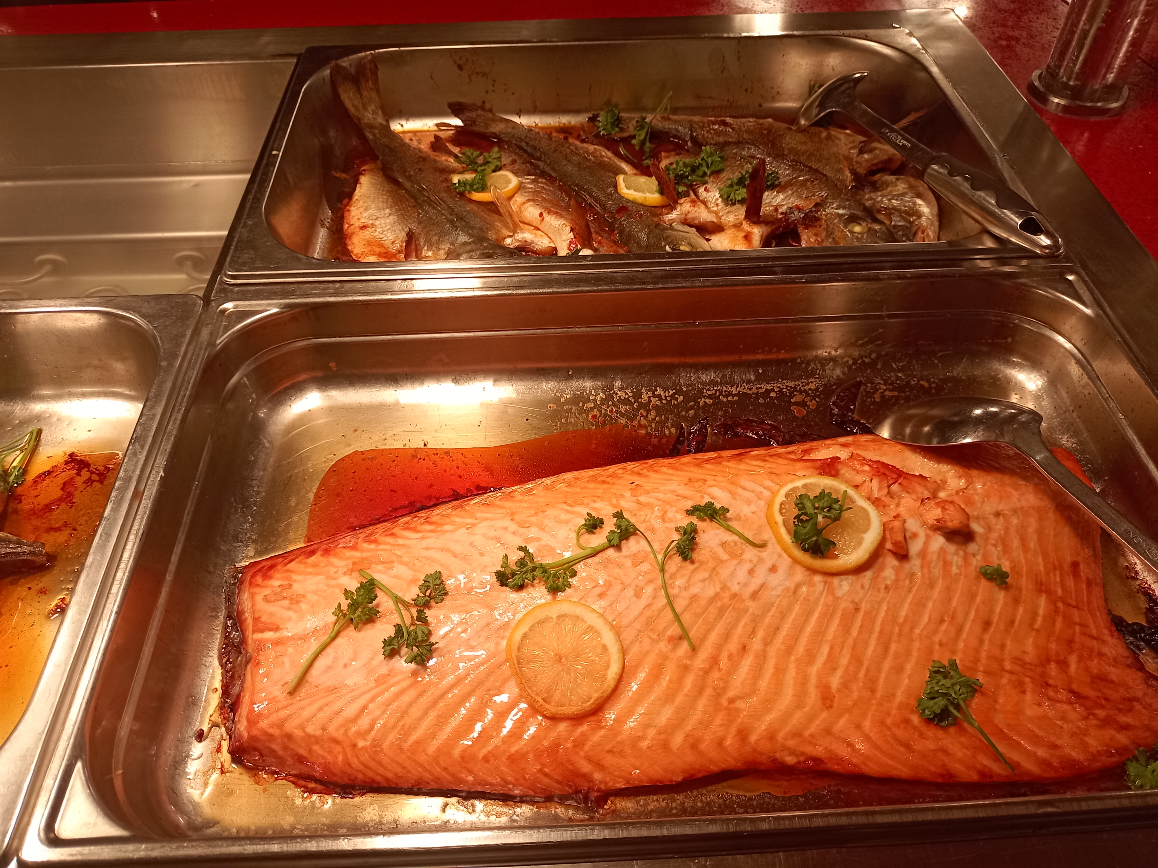 Large choix de nourriture viandes et poissons Desserts de toutes sortent.personnel agréable
