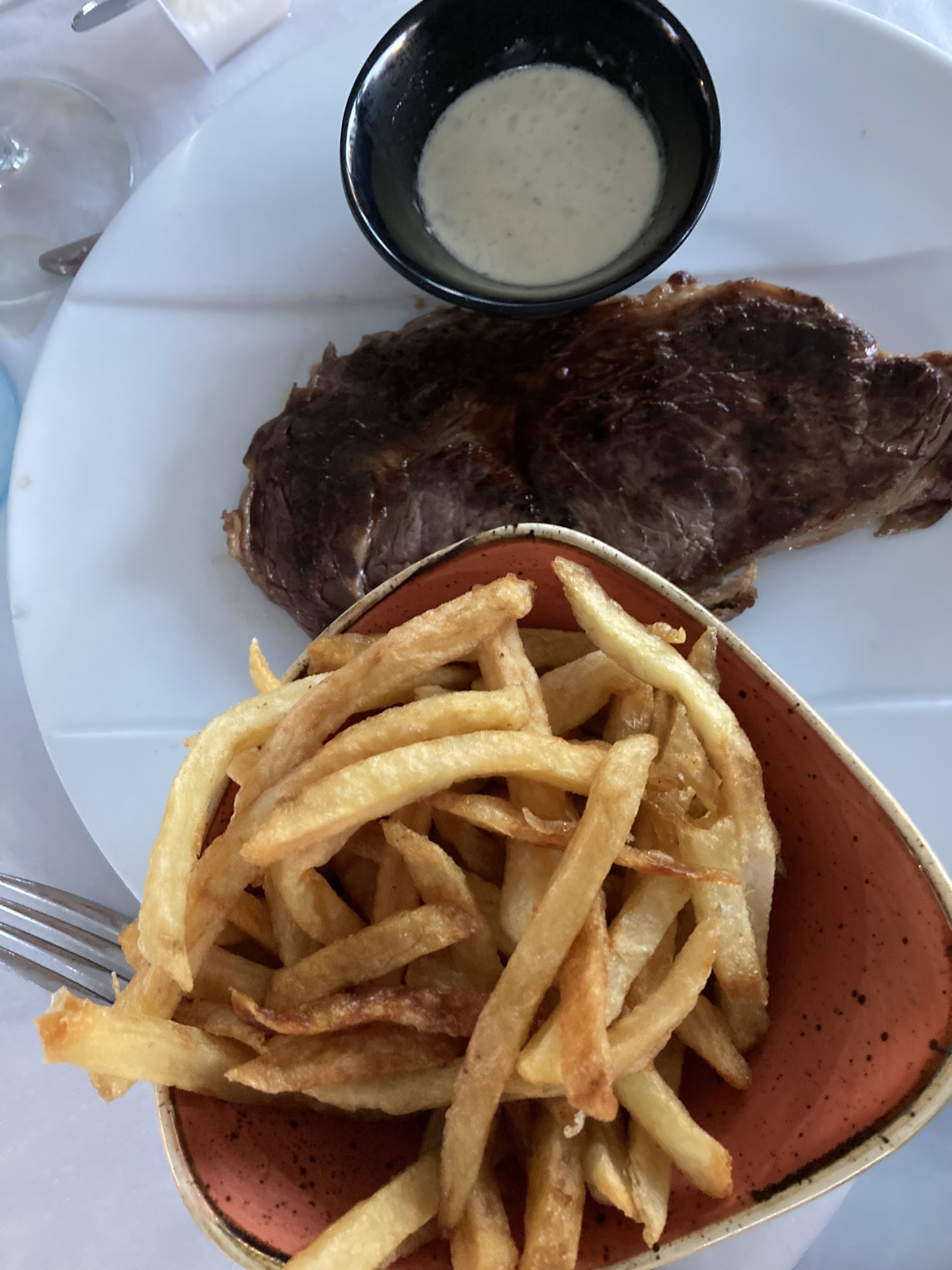 Belle experience, Un serveur impeccable, des tagliatelles homard/crabe délicieuses dans un cadre magnifique ! Seul bémol, devoir payer les frites 5 euros en supplément d’une entrecôte deja a 28 €