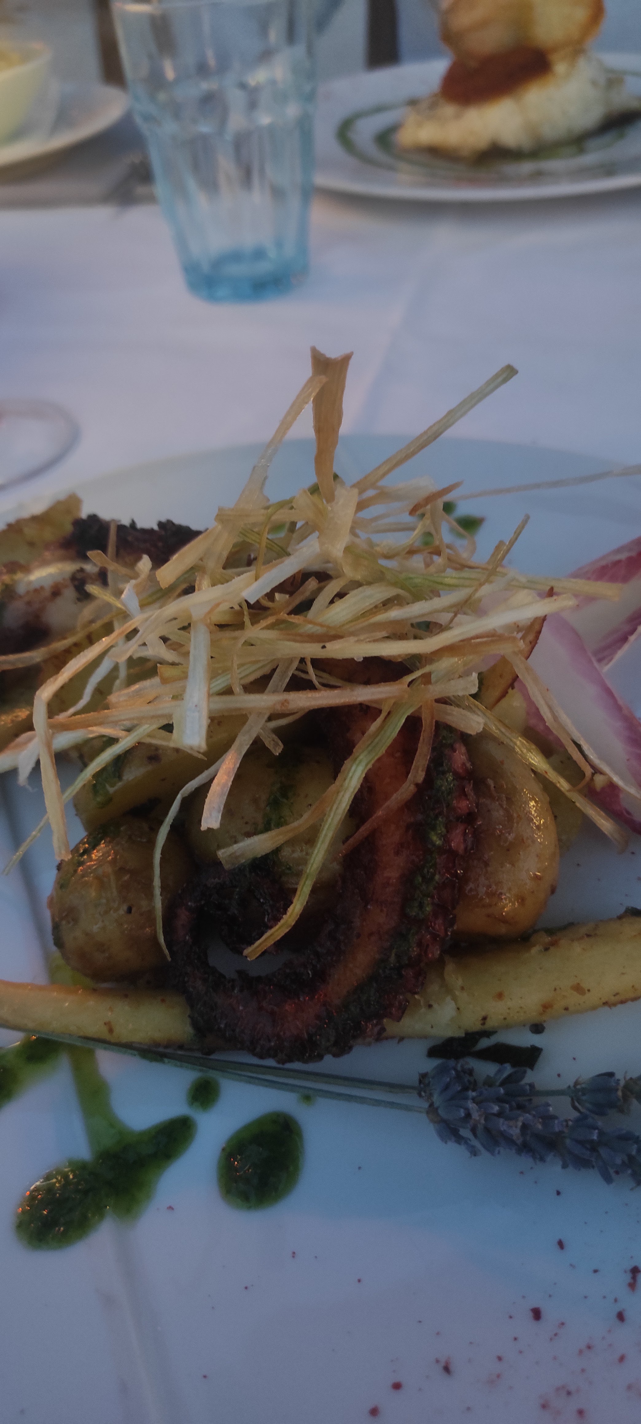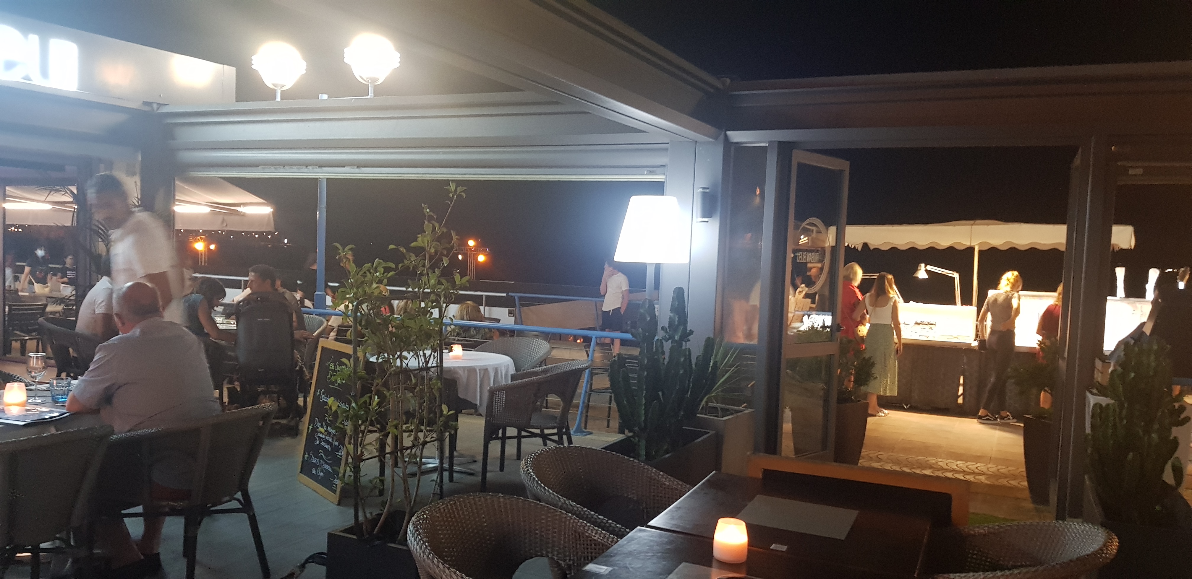 Nous y avons dîné hier soir pour l'anniversaire de ma fille... Arrivés à 19h30, on nous avait réservé une belle table en première ligne, à quelques mètres de la Méditerranée, où nous avons pu d'abord apprécier la beauté du coucher de soleil... Un lieu de rêve, idéal pour nous sortir de notre train-train habituel et fêter dignement l'évènement. Service attentionné et très sympathique. Une cuisine de grande qualité avec une belle présentation des plats- des saveurs parfois inattendus mais parfaitement équilibrés. Coups de coeur pour la poulpe et le cabillaud en croûte, le tout accompagné d'un très bon Sainte Roseline. Desserts excellents. Aucune fausse note- nous y avons passé un très bon moment et retournerons avec un grand plaisir. Bravo!