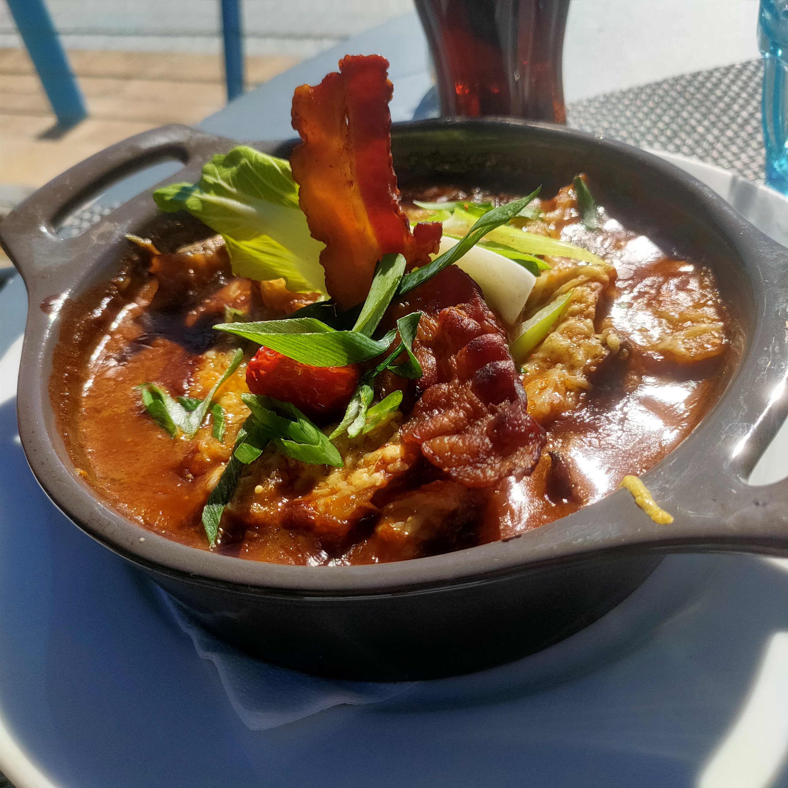 Belle terrasse ensoleillée ou ombragée, serveur du matin trop sympa avec beaucoup de répartis dixit Mr Cassoulet 😉. Prix correct, Le Smoothie bowl du petit déj est top servi avec muesli et fruits frais.