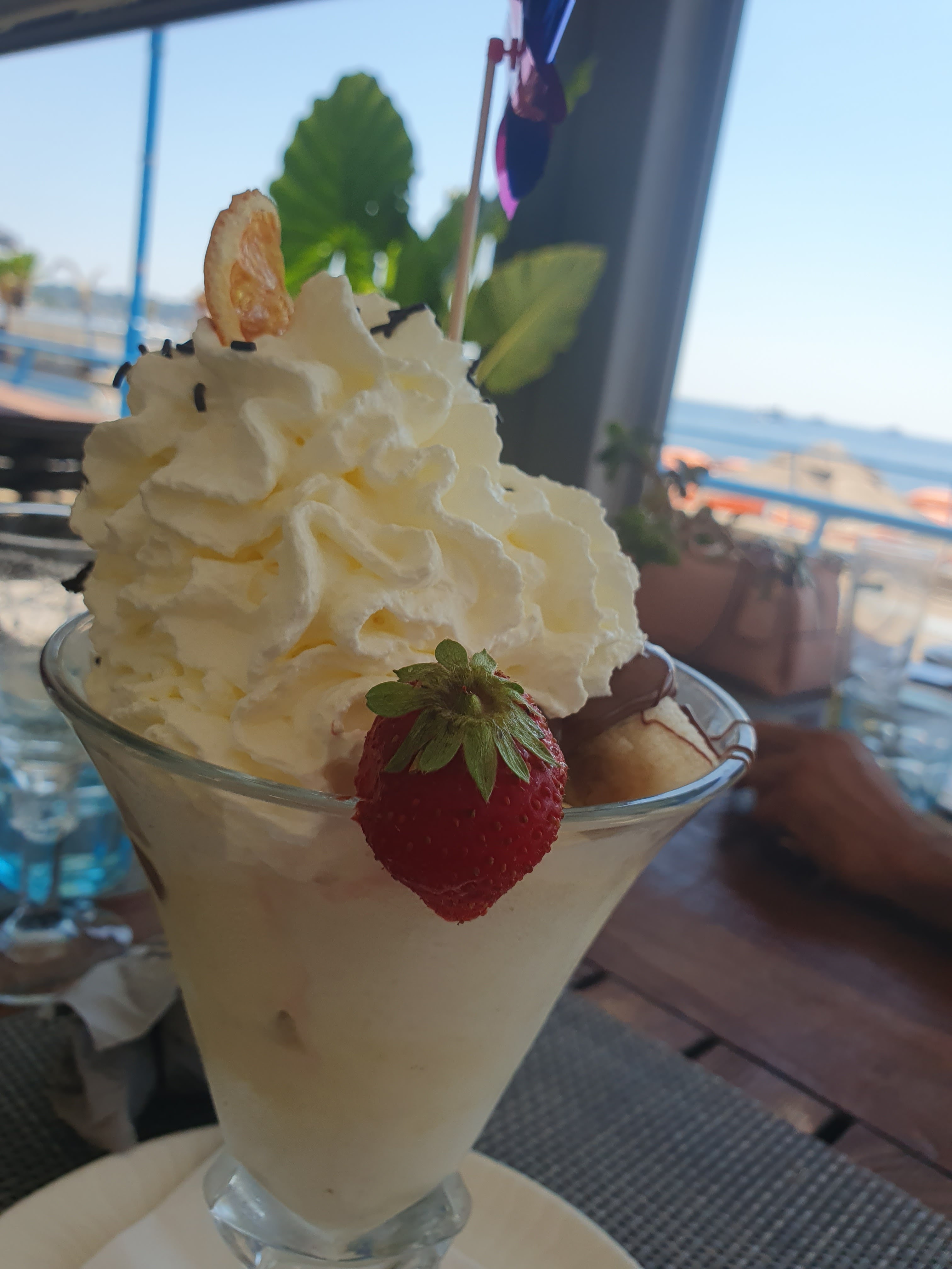 Service long ,serveur très désagréable,les glaces sont bonnes .très belle vue