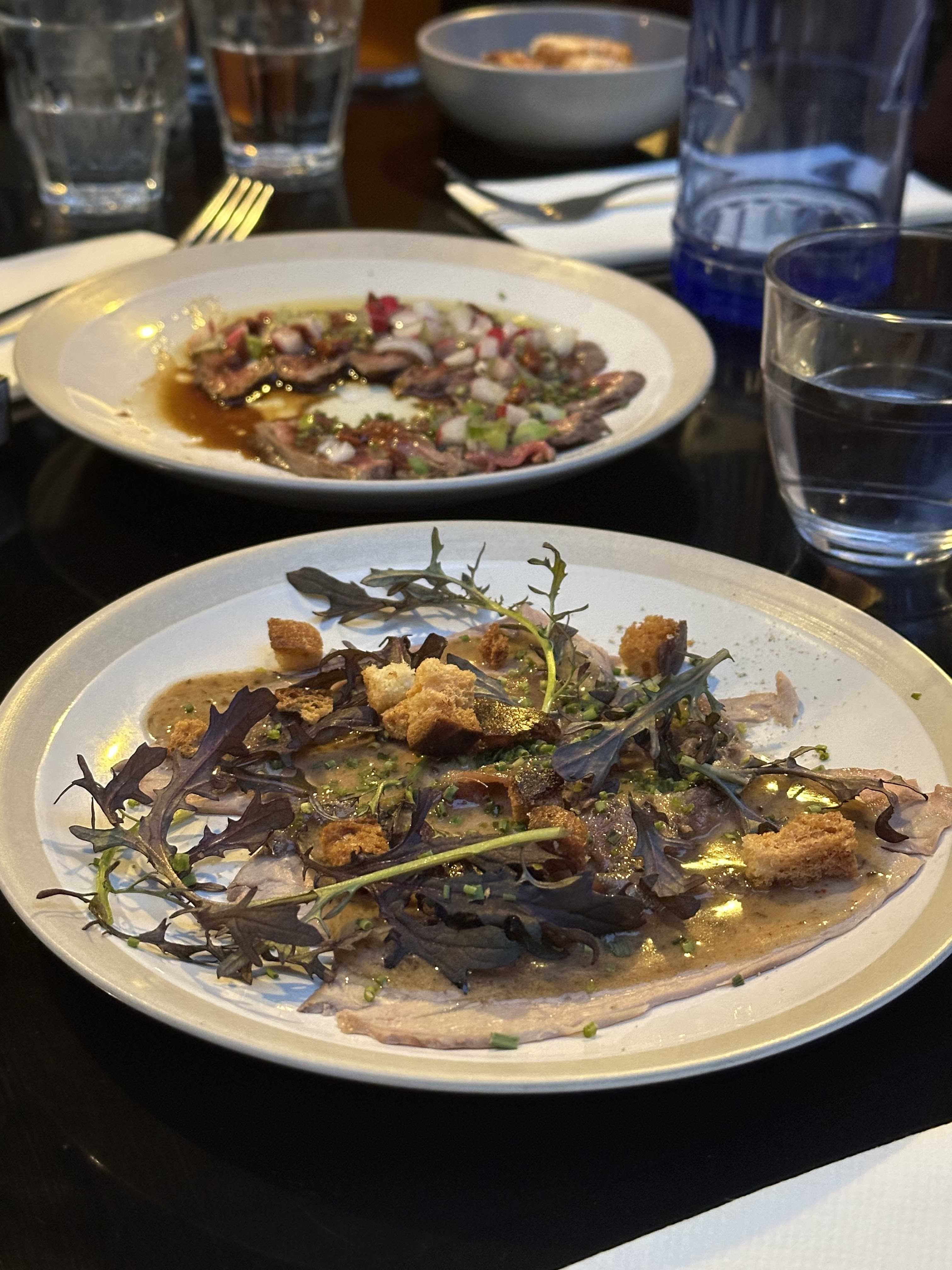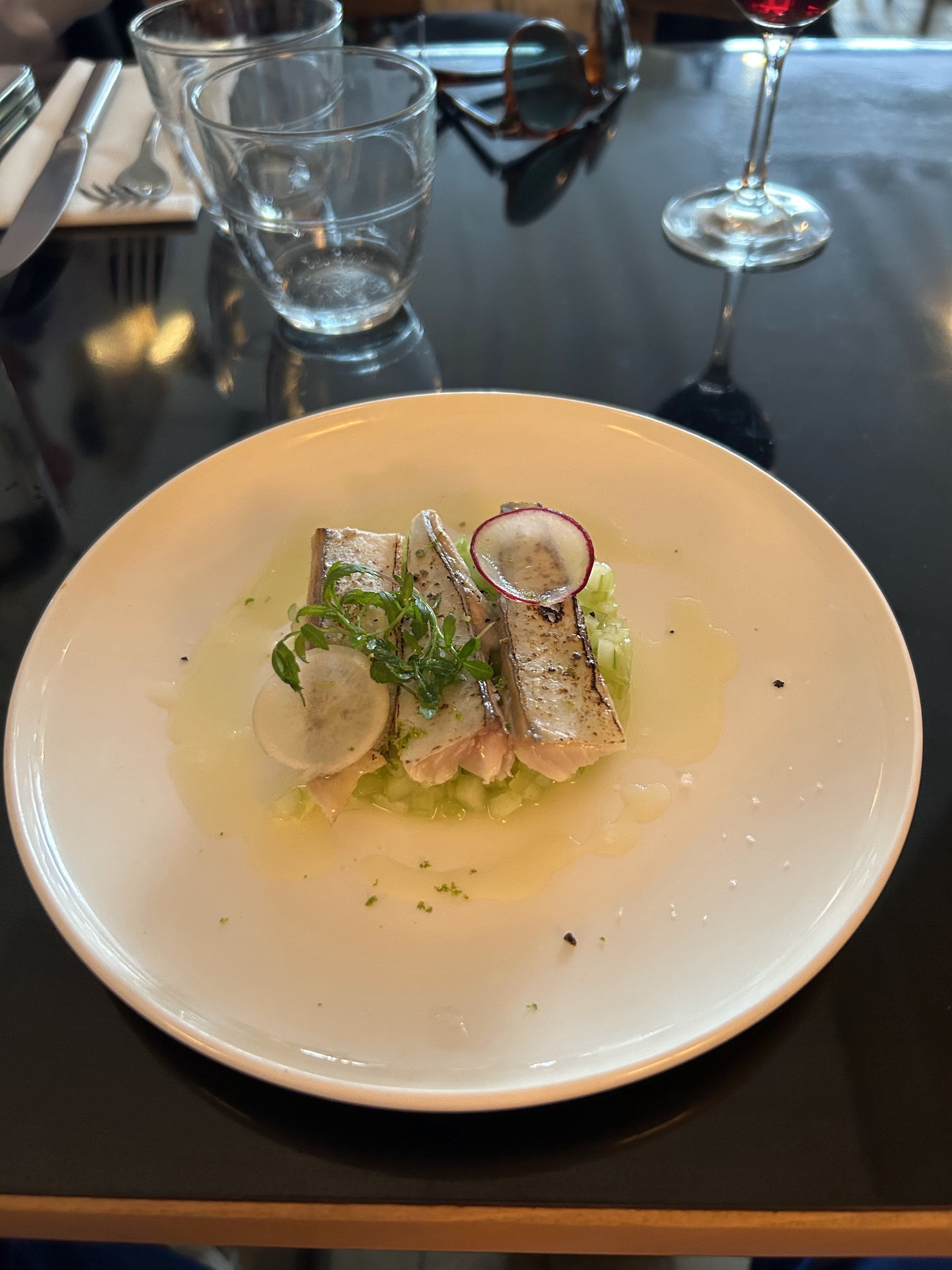 Première fois au rubis. Pour le concept de l’été, ce sont des petites assiettes à partager… bref, comme presque partout maintenant 😁 Pas vraiment nouveau car c’est déjà le cas dans les pays méditerranéens depuis longtemps (mezze). Sauf que pour une fois, c’était très bon :-) bouchée de riz de veau sauce gribiche, pois chiches tarama maison fumé, mini poireaux burrata, œufs mayo poutargue. Simple, bons produits, belle harmonie dans les assiettes. Un service un peu « jeune » mais finalement à l’écoute et efficace ! Une jolie rue piétonne bien au calme. Je recommande.