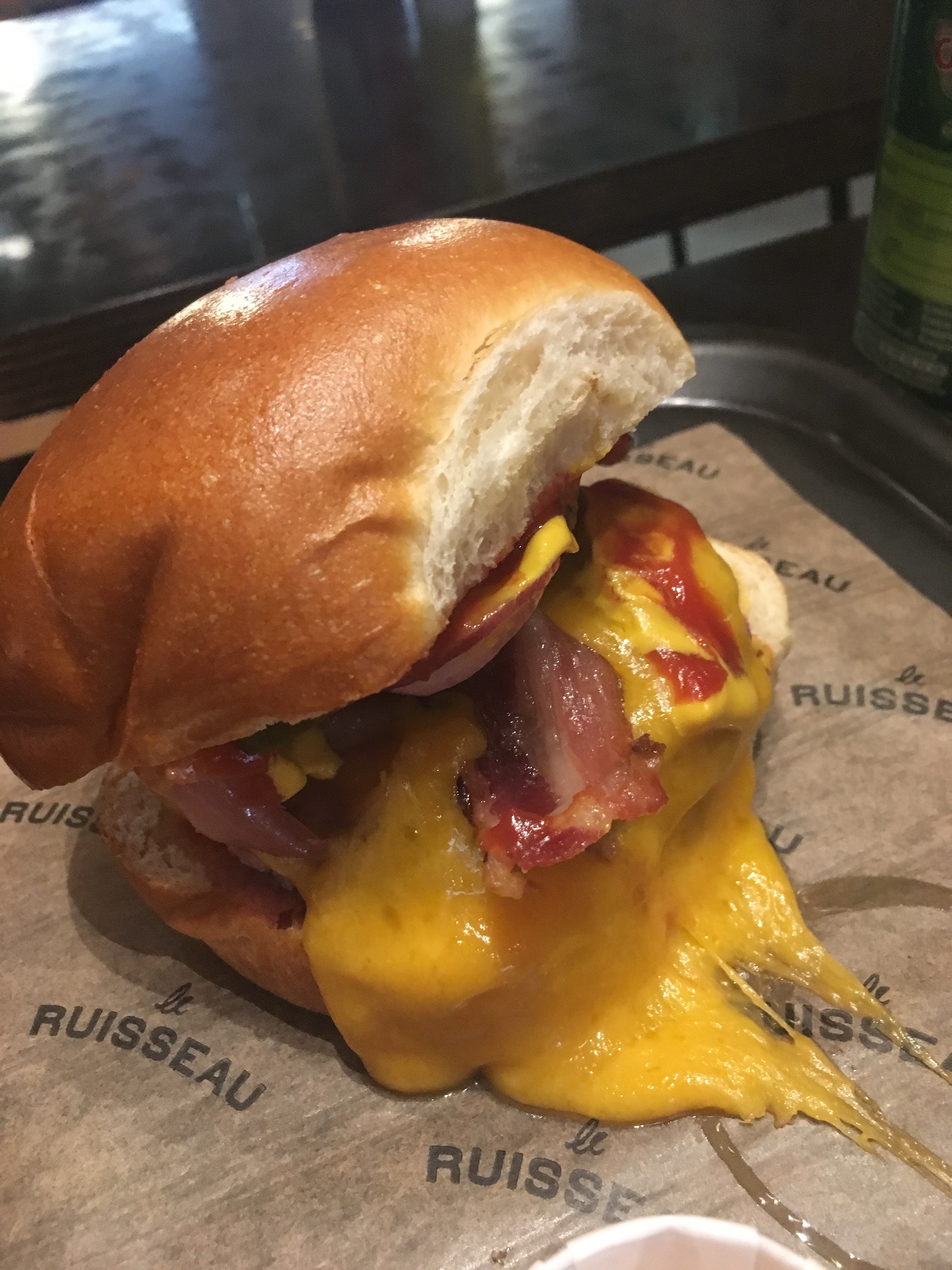 Bon burger, bon bacon et fromage fondant, bons morceaux de steaks. Un bon point à noter : pas beaucoup de sauce BBQ dans le burger et c'est très bien ! Le pain du burger est très bon, les frites en accompagnement sont croustillantes et très bonnes. Beau décor dans l'ensemble mais espace très serré.