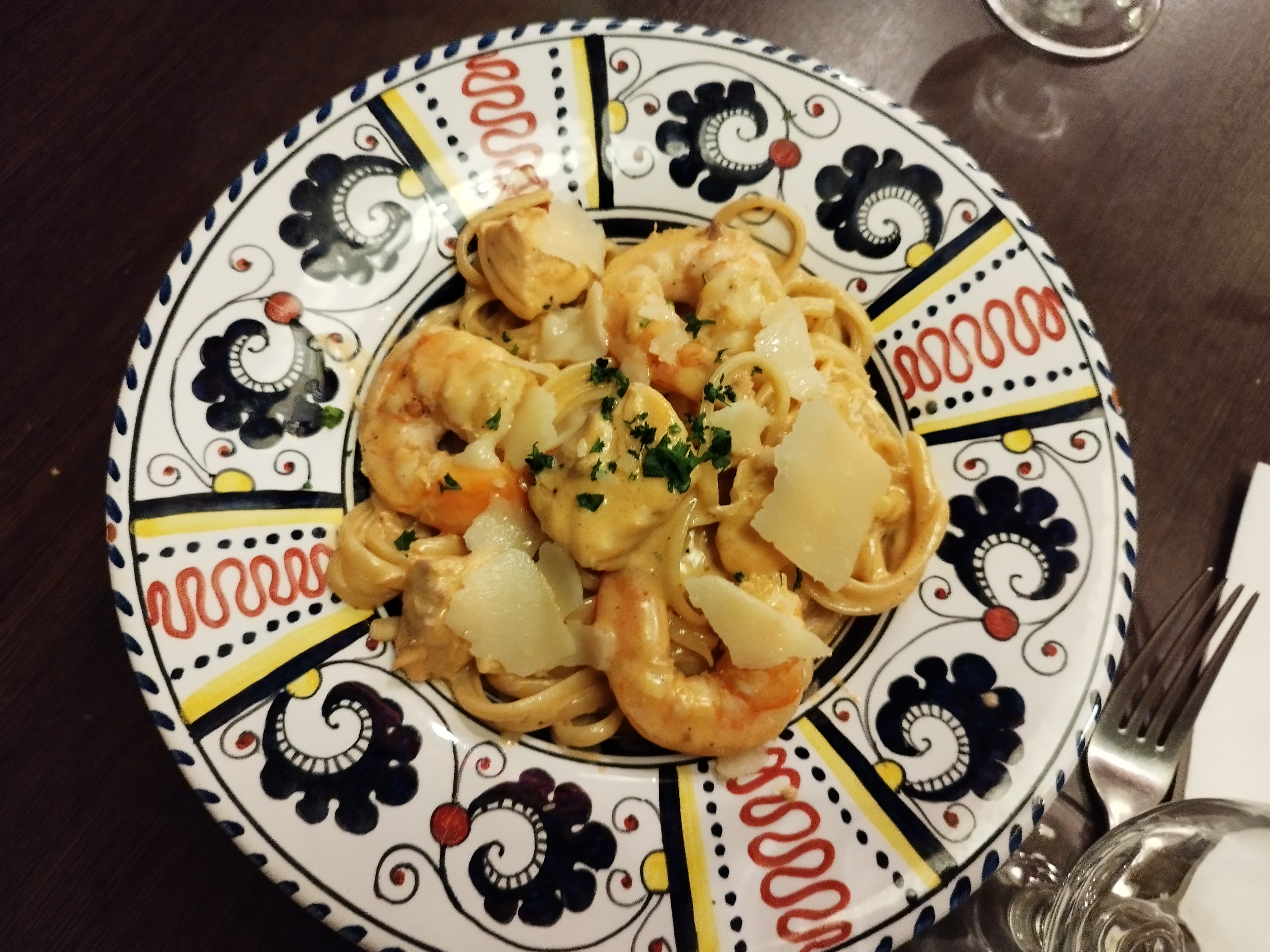 Pour être honnête, ce fut une déception. Nous y sommes allés parce que mon père aime la cuisine italienne, mais nous l'avons vite regretté après notre arrivée. Ils n’ont pas servi d’alcool, ce que nous avons trouvé étrange, le service n’était pas non plus le meilleur. Ils étaient lents dans tout ce qu'ils faisaient et ils persistaient à essayer de nous faire commander des choses différentes de ce que nous voulions. J'ai eu le hamburger et j'ai demandé du très bien fait, ce n'était pas très bien fait du tout. Je l'ai renvoyé une fois mais j'avais trop faim pour leur demander de le cuisiner à nouveau car nous avions eu une longue journée de voyage et nous voulions juste manger.