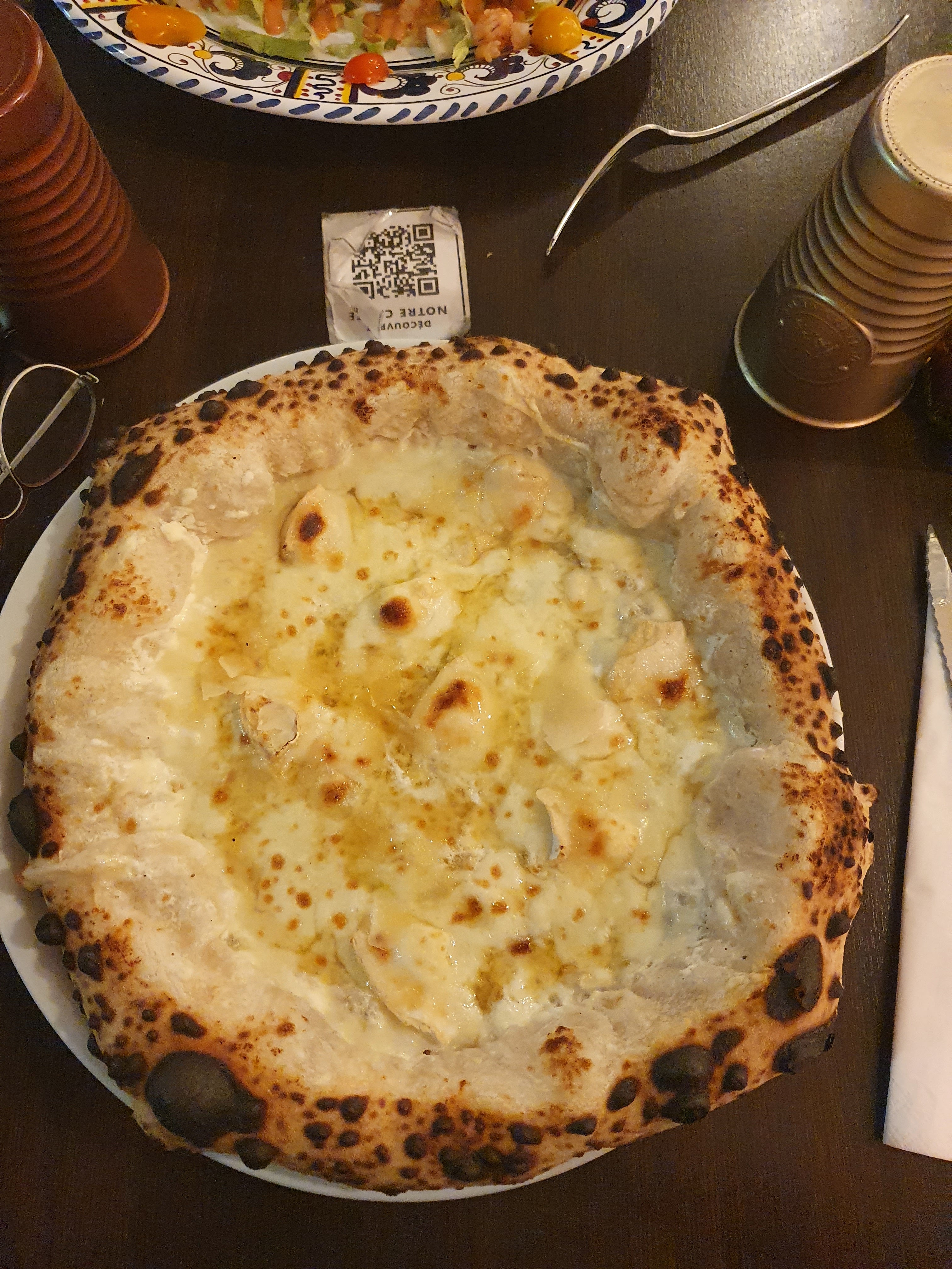Excellent rien a dire. Leur célèbre truffle party avec supp jambon (et la pizza cessine au passage) est incroyableeee foncez les yeux fermés. Trop joli restau. L’accueil, les serveurs superbes !! Merci à vous tous. Pensez à réserver quand même car trop de monde vu la (très bonne) réputation. Sans oublier leur tiramisu 🫠🫠