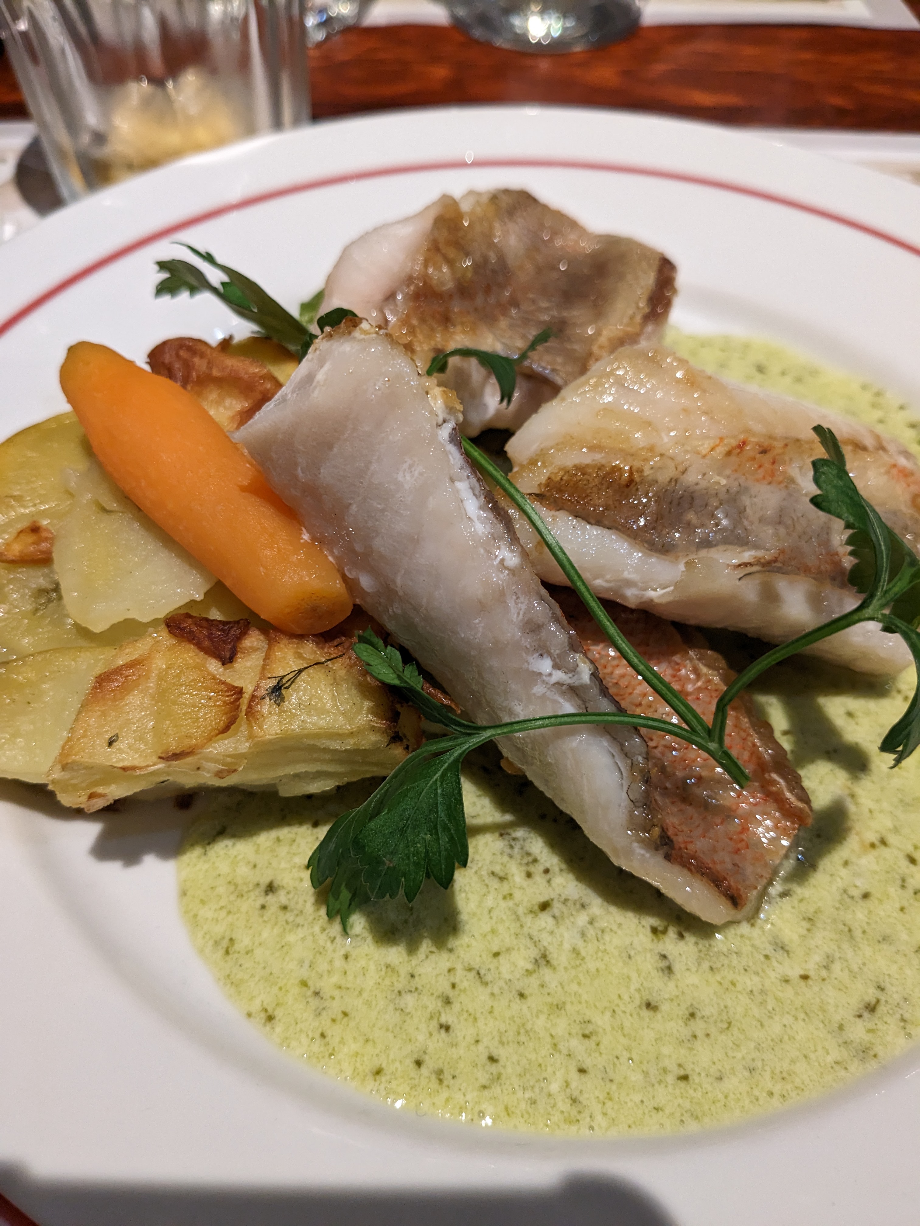 Très bon, produits de saison. Le poisson avec le gratin dauphinois, top du top.