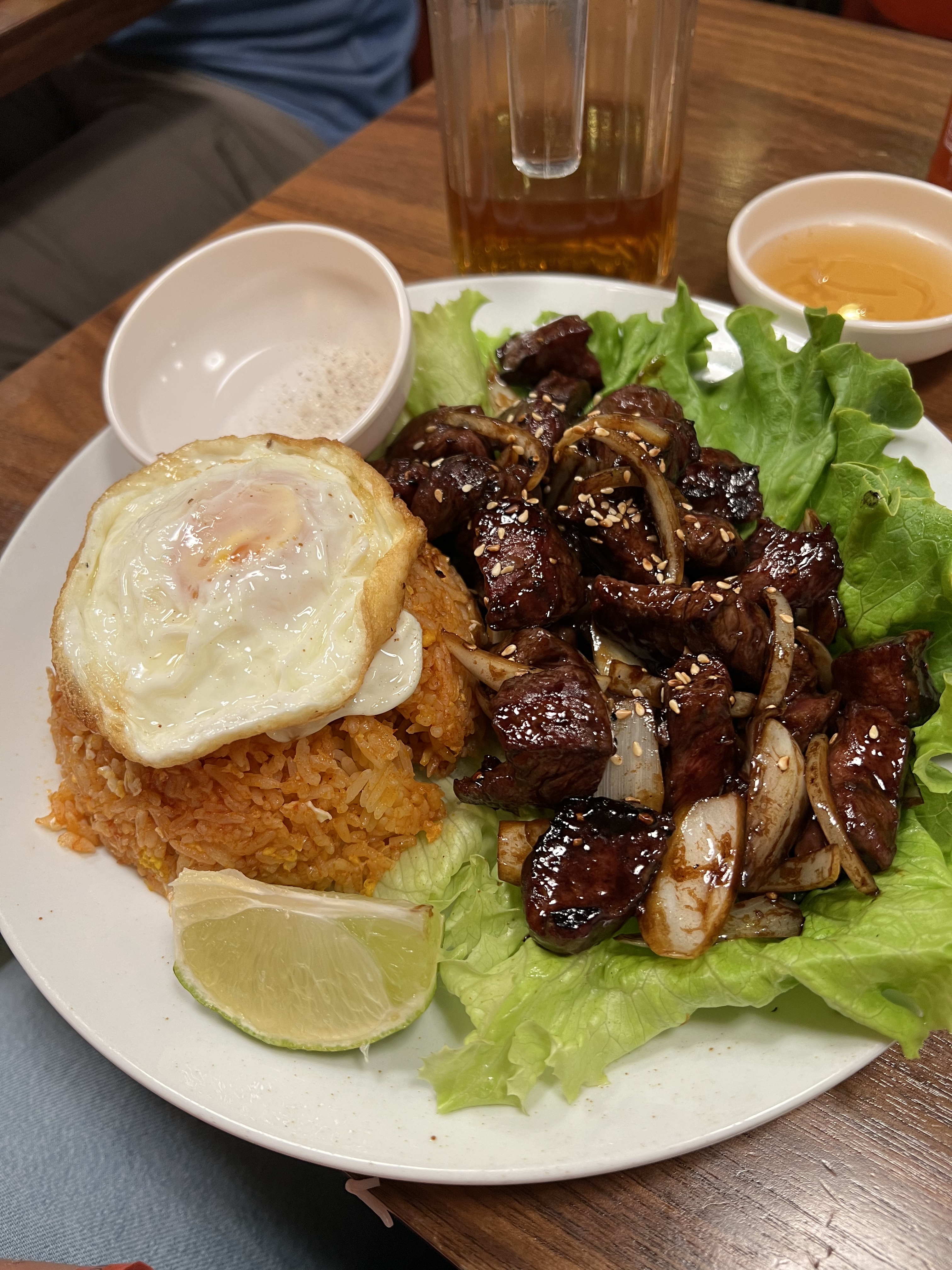 Leur bœuf Luc Lac est incroyable - de la texture tendre du bœuf à l'œuf au plat moelleux et au riz bien parfumé ! Leurs crêpes avaient également la texture moelleuse attendue et bien sûr, elles étaient délicieuses. J'ai essayé Luc Lac dans de nombreux restaurants de différentes villes et celui-ci est le meilleur que j'ai eu jusqu'à présent.