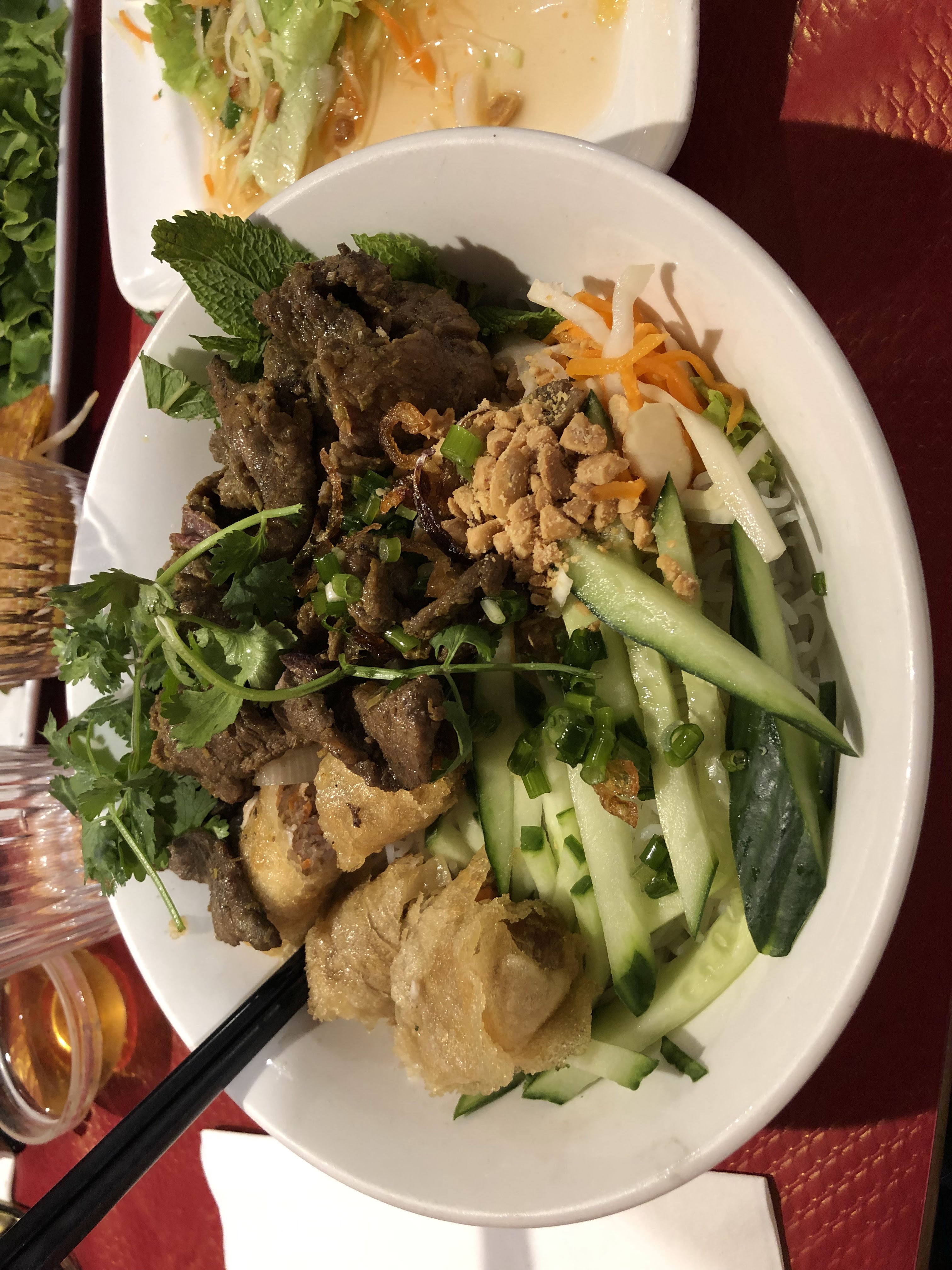 Nous y sommes allés pour le déjeuner et nous ne pouvions pas croire qu'ils étaient déjà pleins de monde. Bonne cuisine vietnamienne Grosse portion Seul le dessert n'est pas ce à quoi je m'attendais