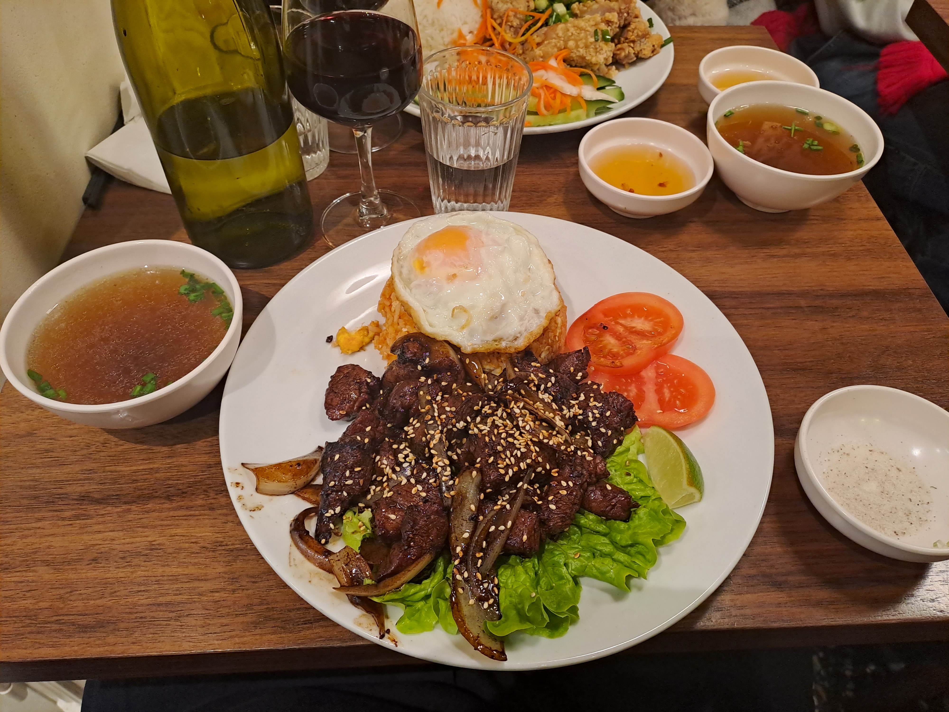 A éviter ! Viande pas très fraîche et trop cuite voire brûlée dans tous les plats qu’on a pris. Et les pires desserts que j’ai jamais goûté dans un resto vietnamien - quelques perles de tapioca qui flottaient dans du lat de coco super sucrée avec 5 fines tranches de banane. La valeur de ce dessert et 50 centimes maximum, mais pas 6.50 euro