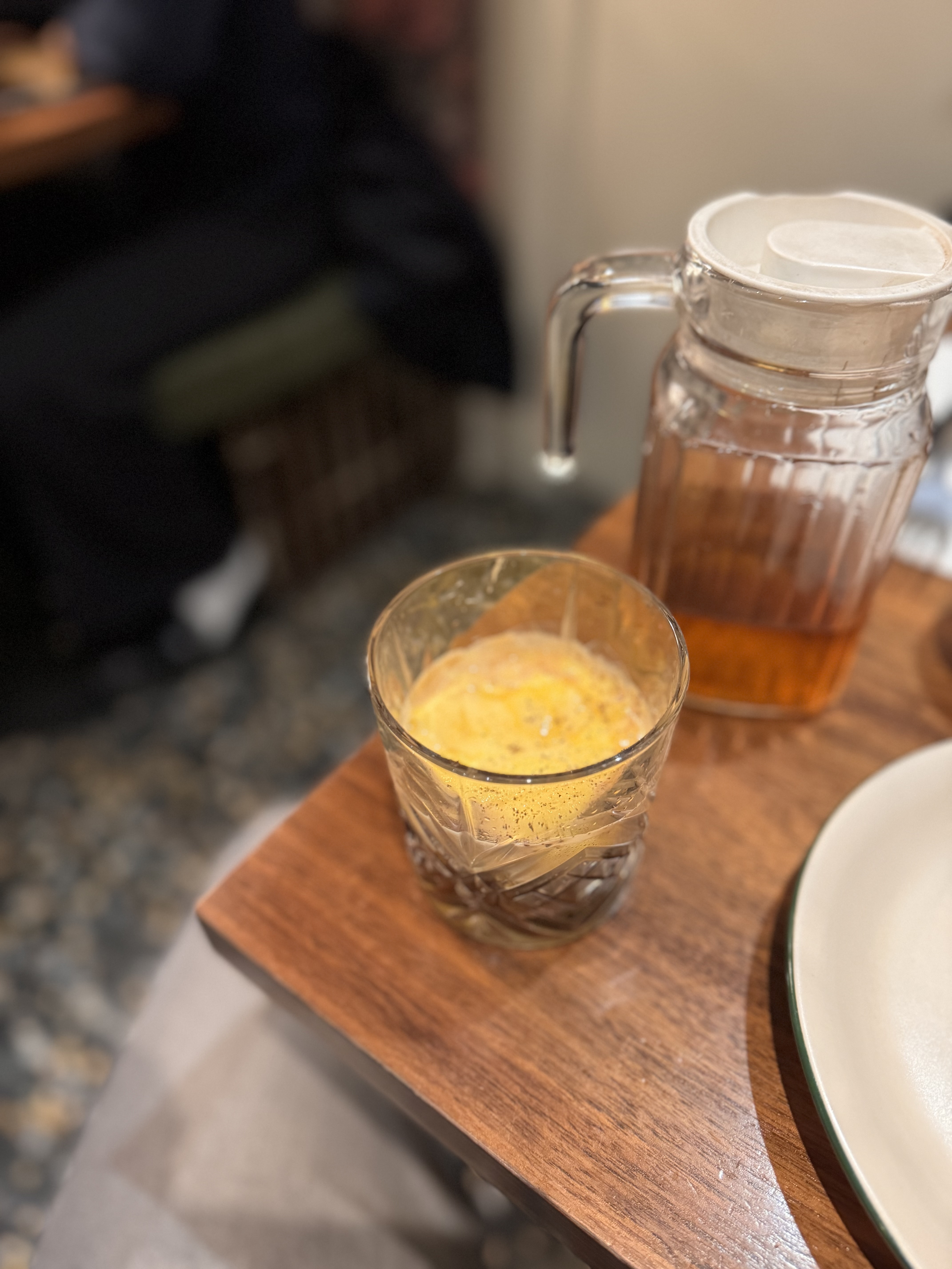 La crêpe est très bonne, riche en saveur, mais aussi très grasse. le wrap au bœuf vigne est également fantastique. Nous avons commandé un café au jaune d'œuf après le repas, super délicieux, je n'avais jamais essayé ce genre de café auparavant. L'environnement est bon, le service est sympa 👍