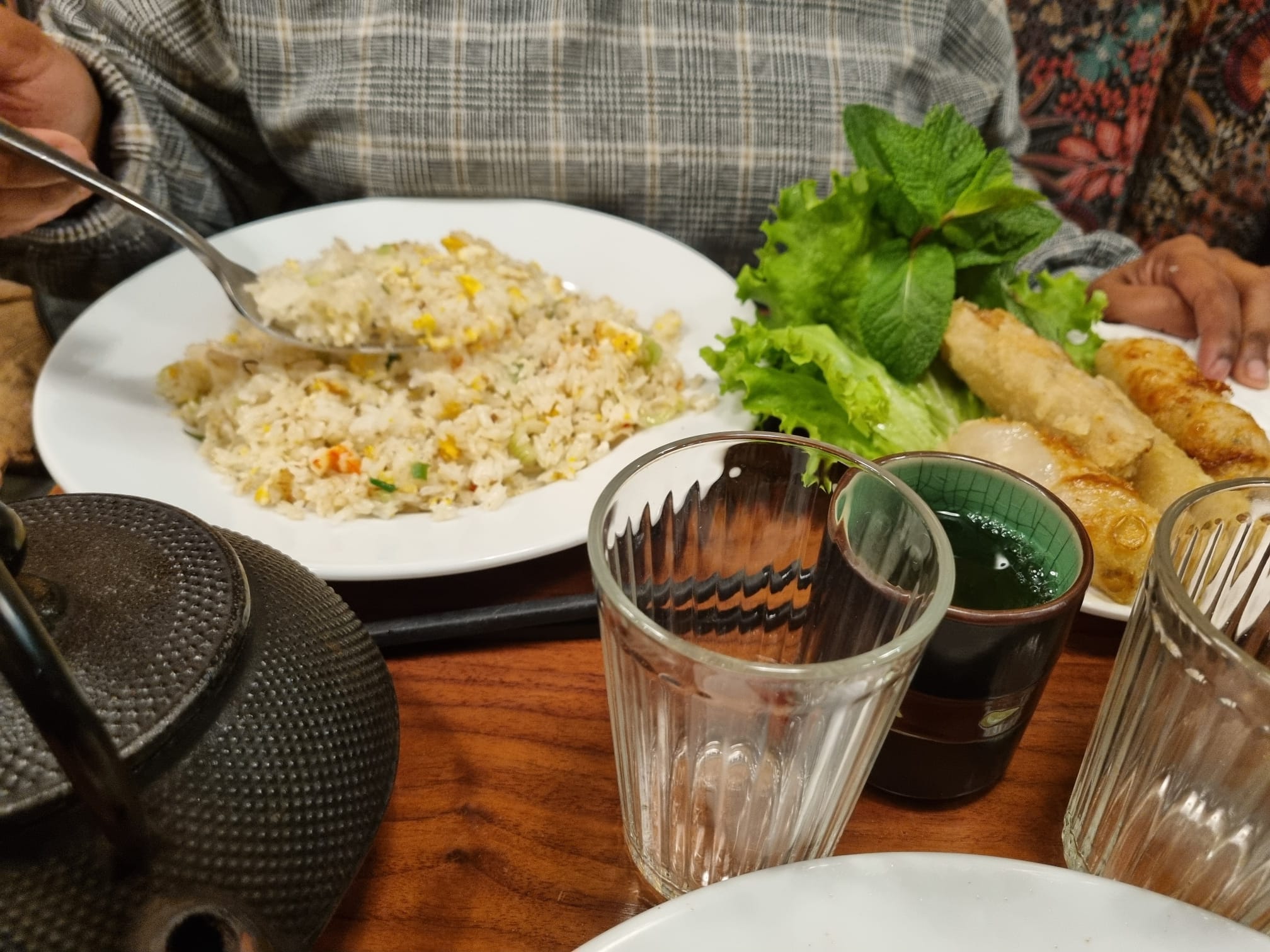 Tout était parfait ! La cuisine était copieuse et très bonne, je recommande ! J'ai pris les nouilles fines sautées au boeuf et c'est la première fois que je mange un boeuf aussi fondant. Mon amie a pris le porc caramel et des rouleaux de printemps en entrée. Tout était délicieux !