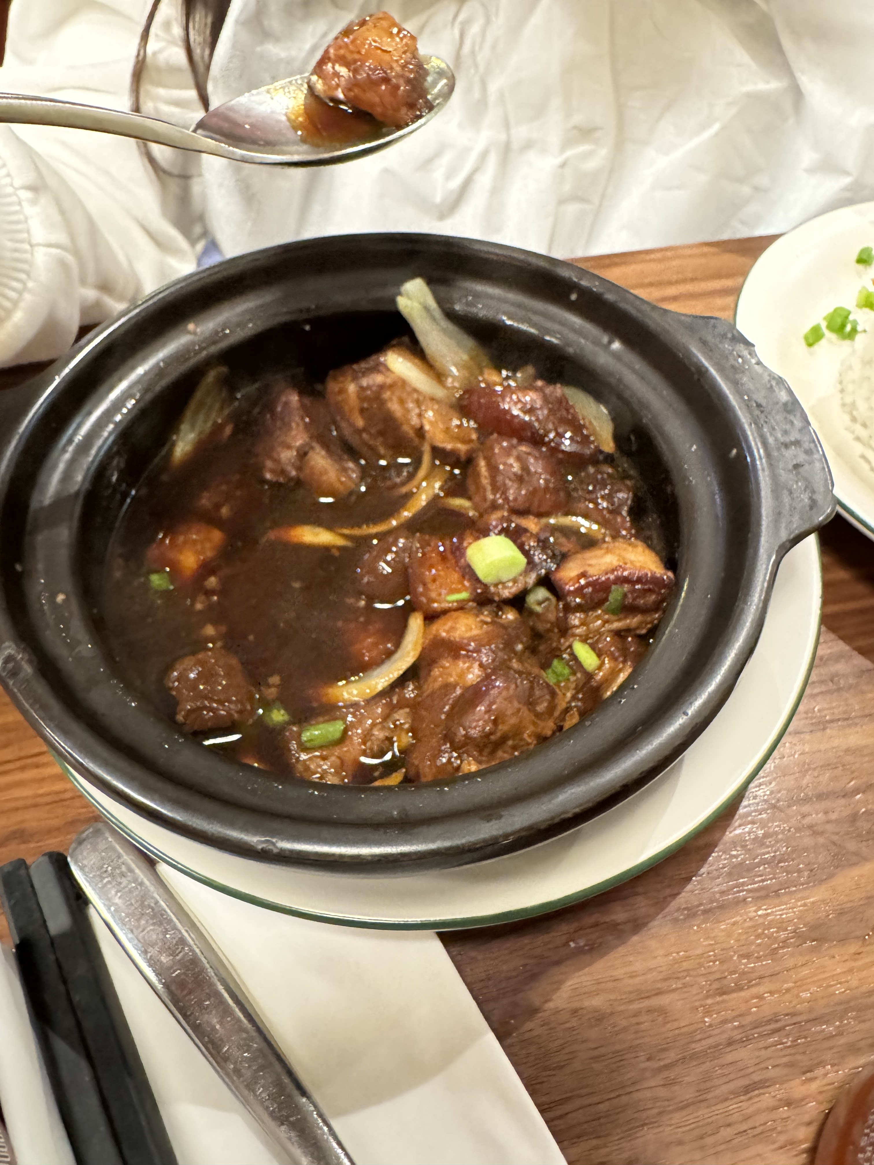 Le plat de porc caramélisé est meilleur que celui que j'ai mangé en Asie ! Les légumes sautés étaient couci-couça.