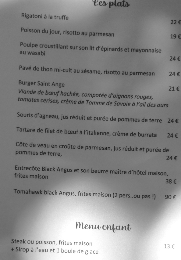 Je recommande le saint ange que j'ai découvert pour la première fois ! Le cadre est magnifique et la carte donne environ ! On a trop bien mangé ! On y retournera ! Au plaisir !