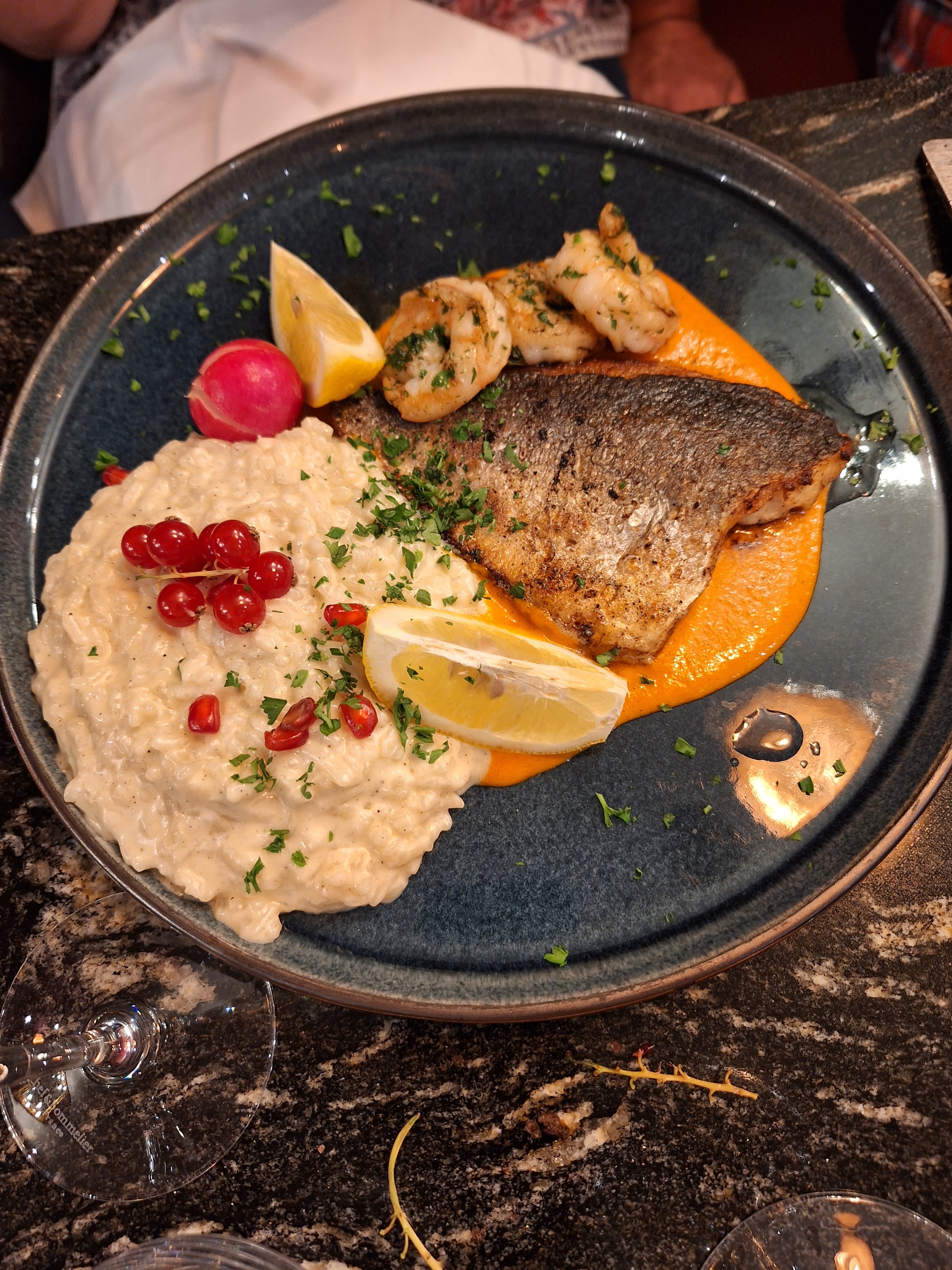 Nous avons choisi le poulpe. Il y a sûrement erreur sur l’intitulé du plat car un poulpe n’est pas seulement qu’une tentacule. Dans ce cas il faut mettre : tentacule de poulpe sans « s » bien sûr. Nous avons trouvé le plat cher vu la quantité dans nos assiettes. Sinon le plat était très bon. Dommage car le cadre est magnifique et le personnel très professionnel et sympathique.