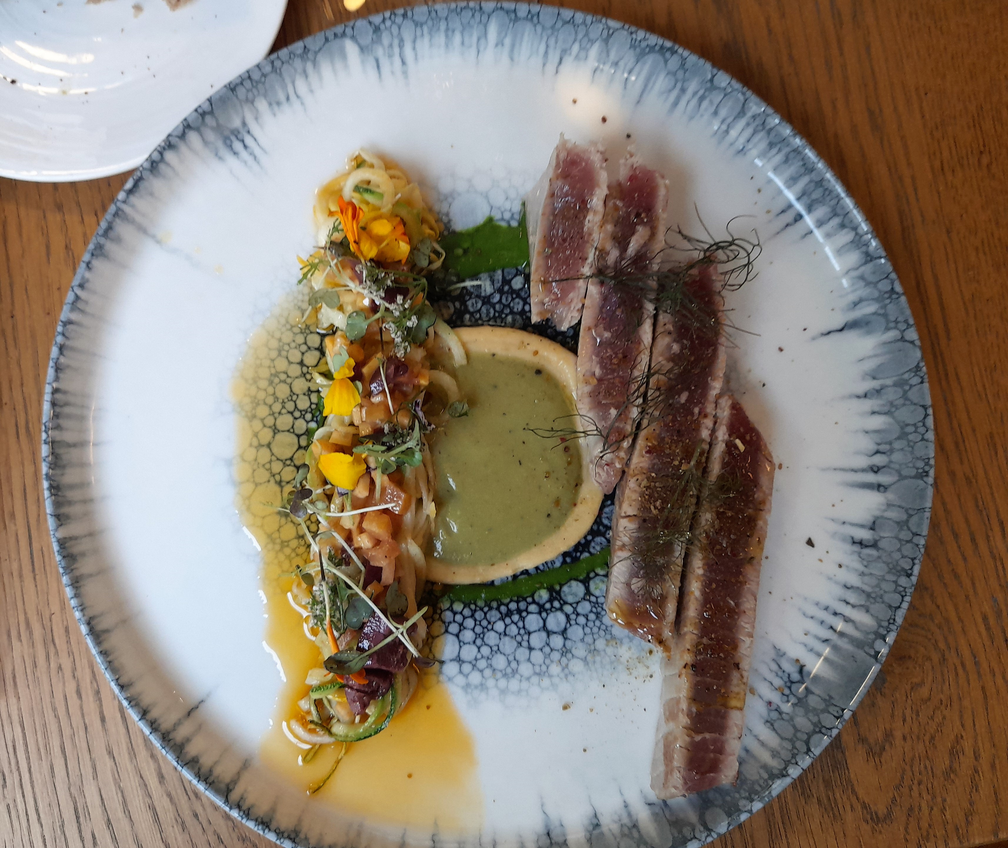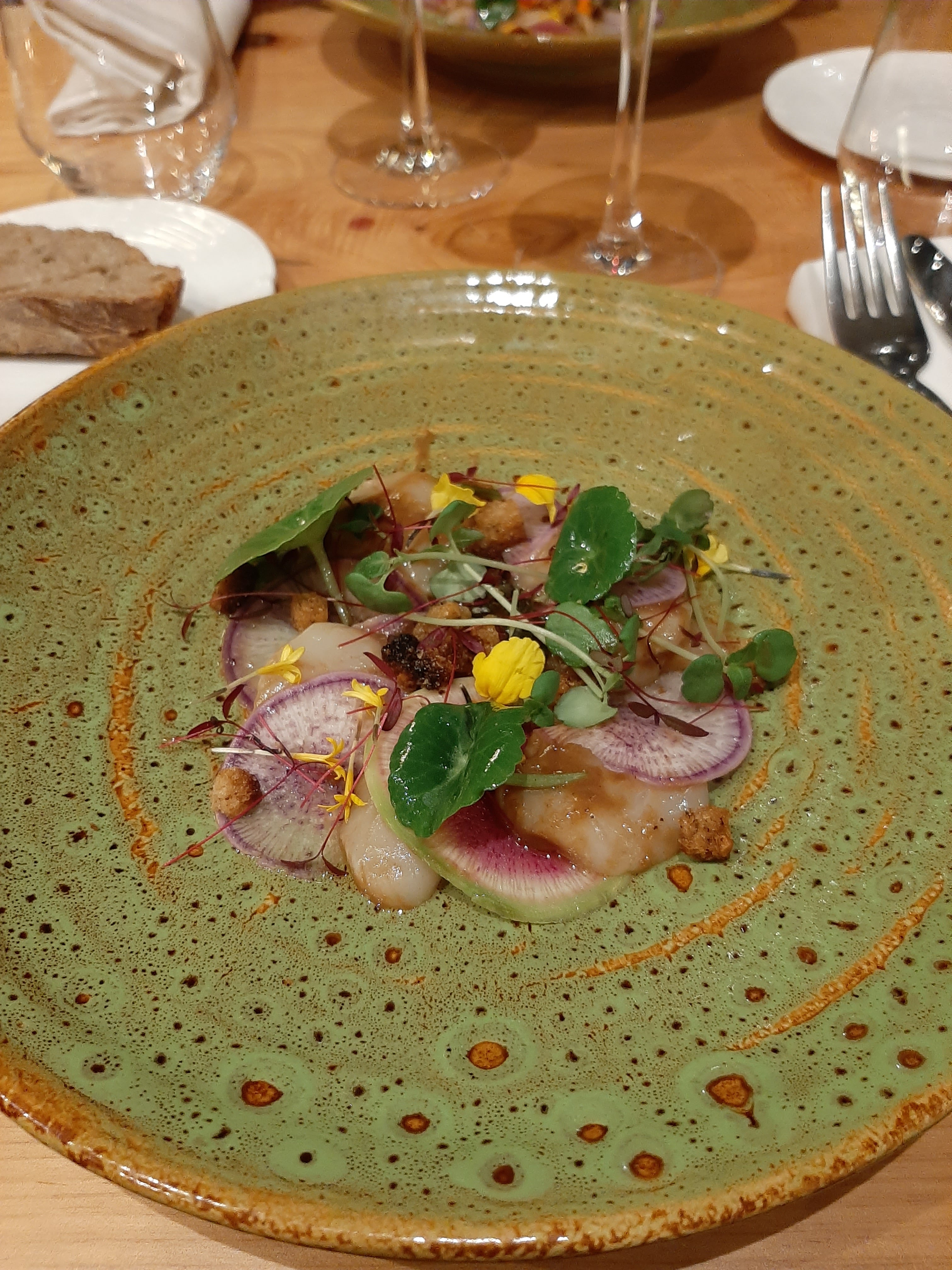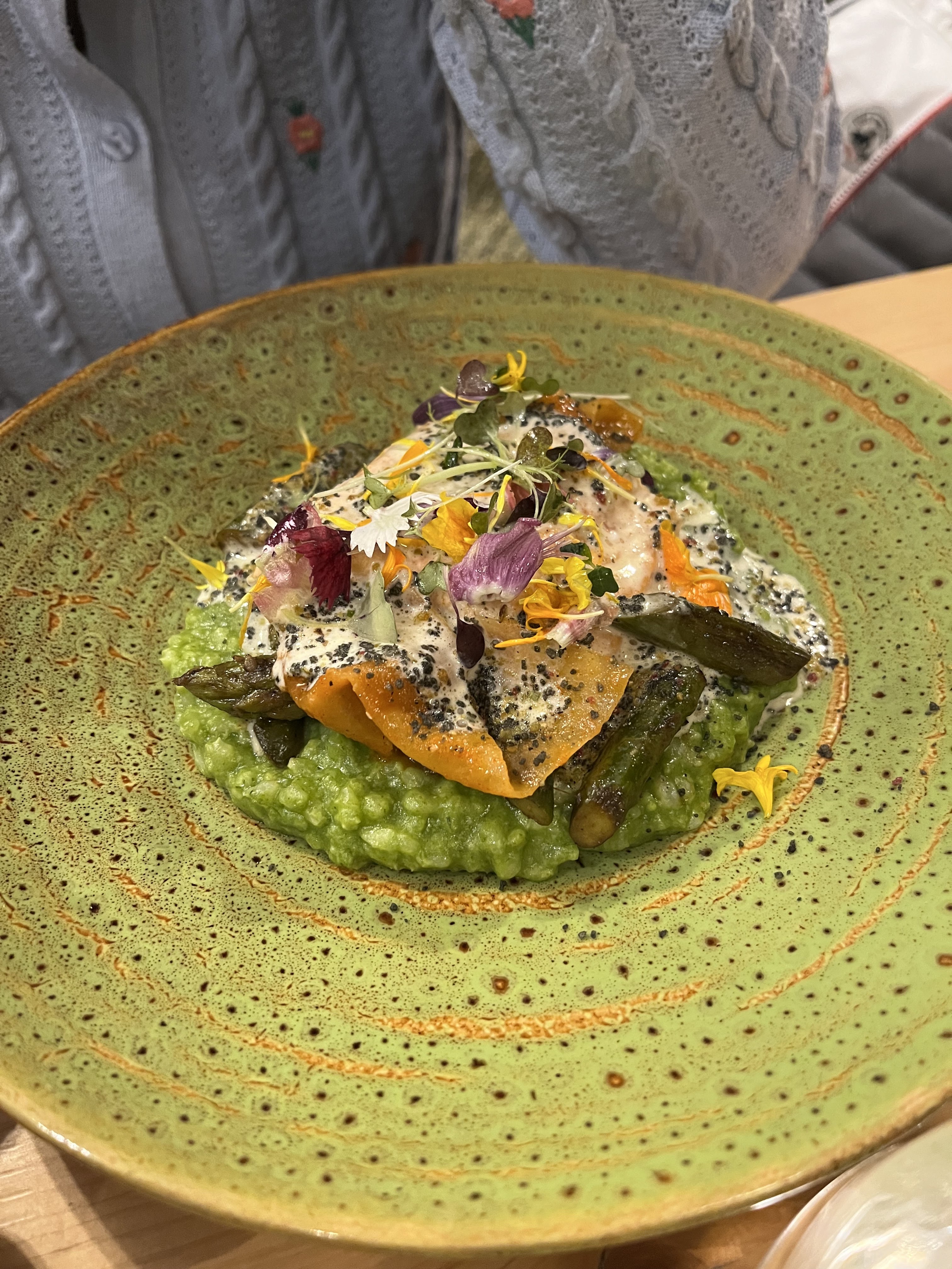 De l'invention, de la couleur ,des fleurs, toutes les nuançes de vert ,beaucoup de cœur dans la cuisine de ce jeune chef qui laisse entrer le regard de ses convives dans son atelier ... il me fait penser a un peintre ... c'était délicieux bravo maestro