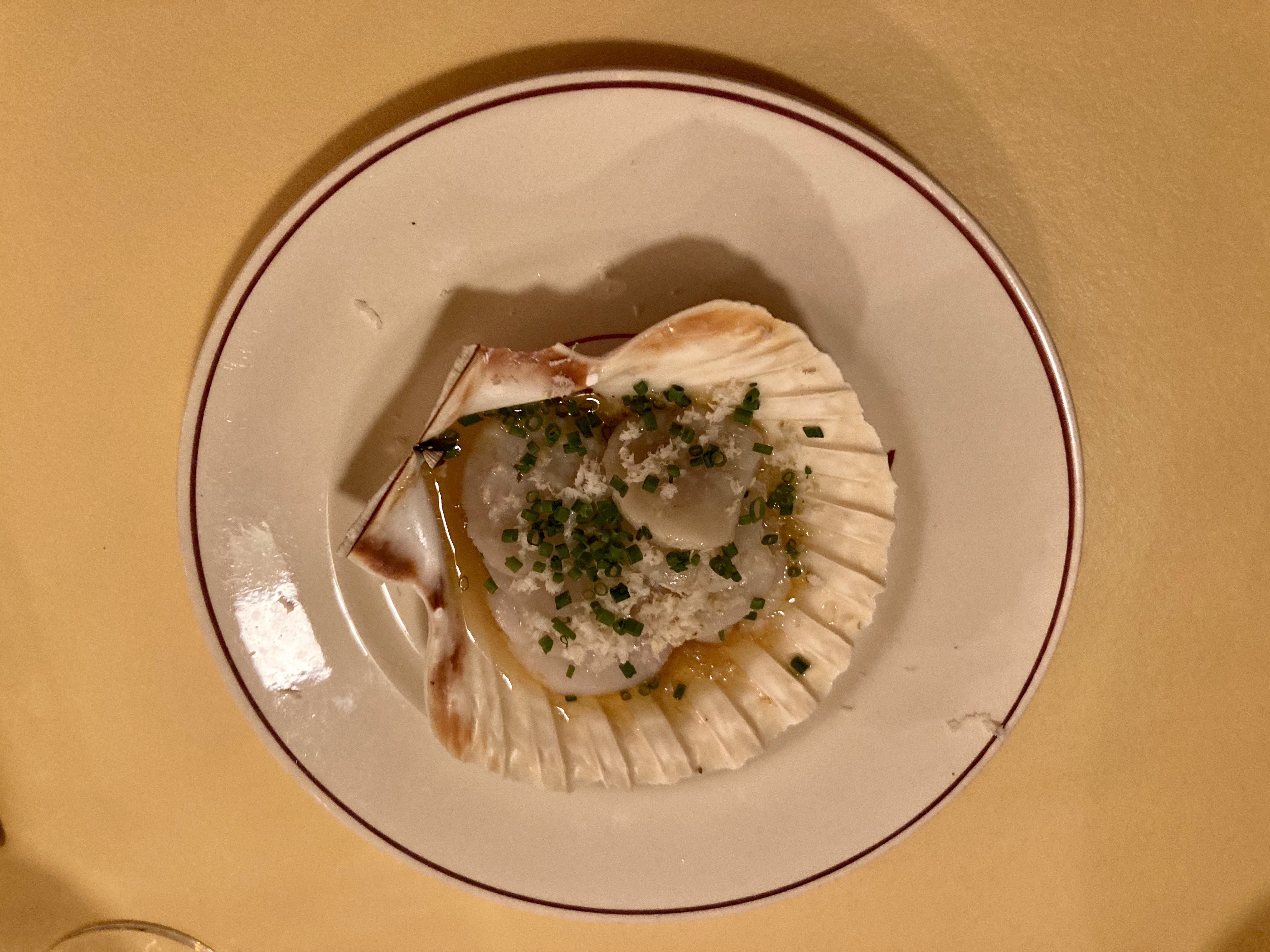 Lors de notre visite à Clermont Ferrand, nous avons dégusté un délicieux dîner dans cet établissement. Nous avons tous les deux apprécié l'entrée de Saint-Jacques avec une sauce subtile et délicate. Le goulasch était parfait pour une journée froide et venteuse et les pâtes aux palourdes particulièrement délicieuses. La tarte au citron et à la ricotta est peut-être la meilleure que j'aie jamais goûtée ! La serveuse était accueillante et sympathique, mais nous avons été un peu déconcertés par le fait qu'elle n'a pas proposé de carte des vins ni expliqué les options de vin blanc au verre, mais qu'elle est arrivée avec une bouteille et nous a servi deux verres sans nous permettre de le goûter. Mon mari ne l'a pas trouvé à son goût ; elle lui a proposé un autre choix et l'a laissé goûter en premier. Elle nous a également expliqué les possibilités de vin rouge. Dans l'ensemble, une bonne soirée dans un restaurant pittoresque et populaire. Nous avons adoré le décor avec sa fresque murale !