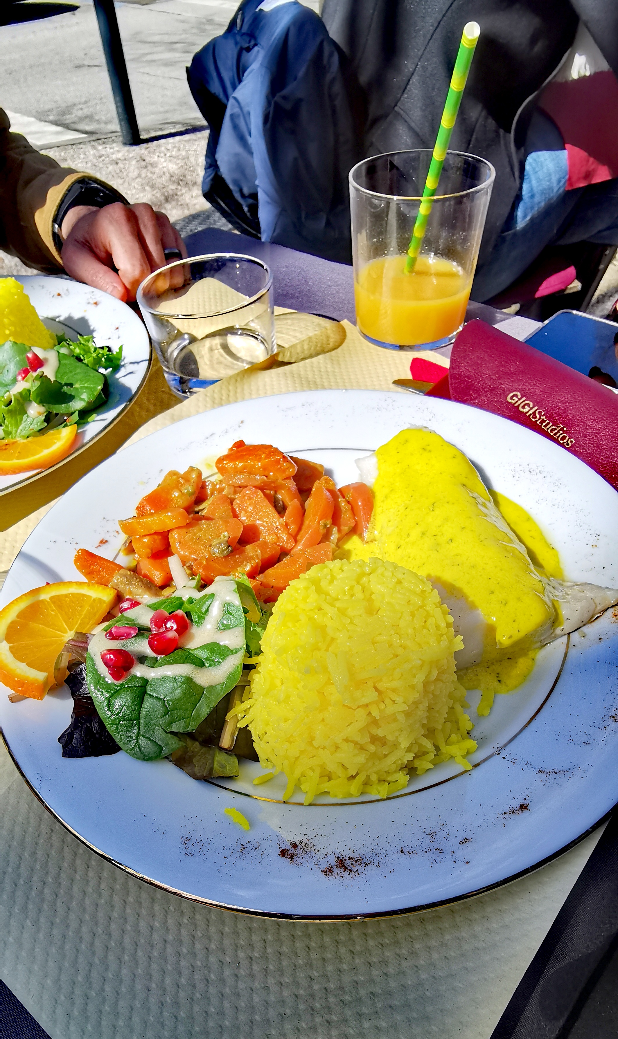 Restaurant agréable, plats avec de bons ingrédients, mais poulet au curry sec (un peu trop cuit)