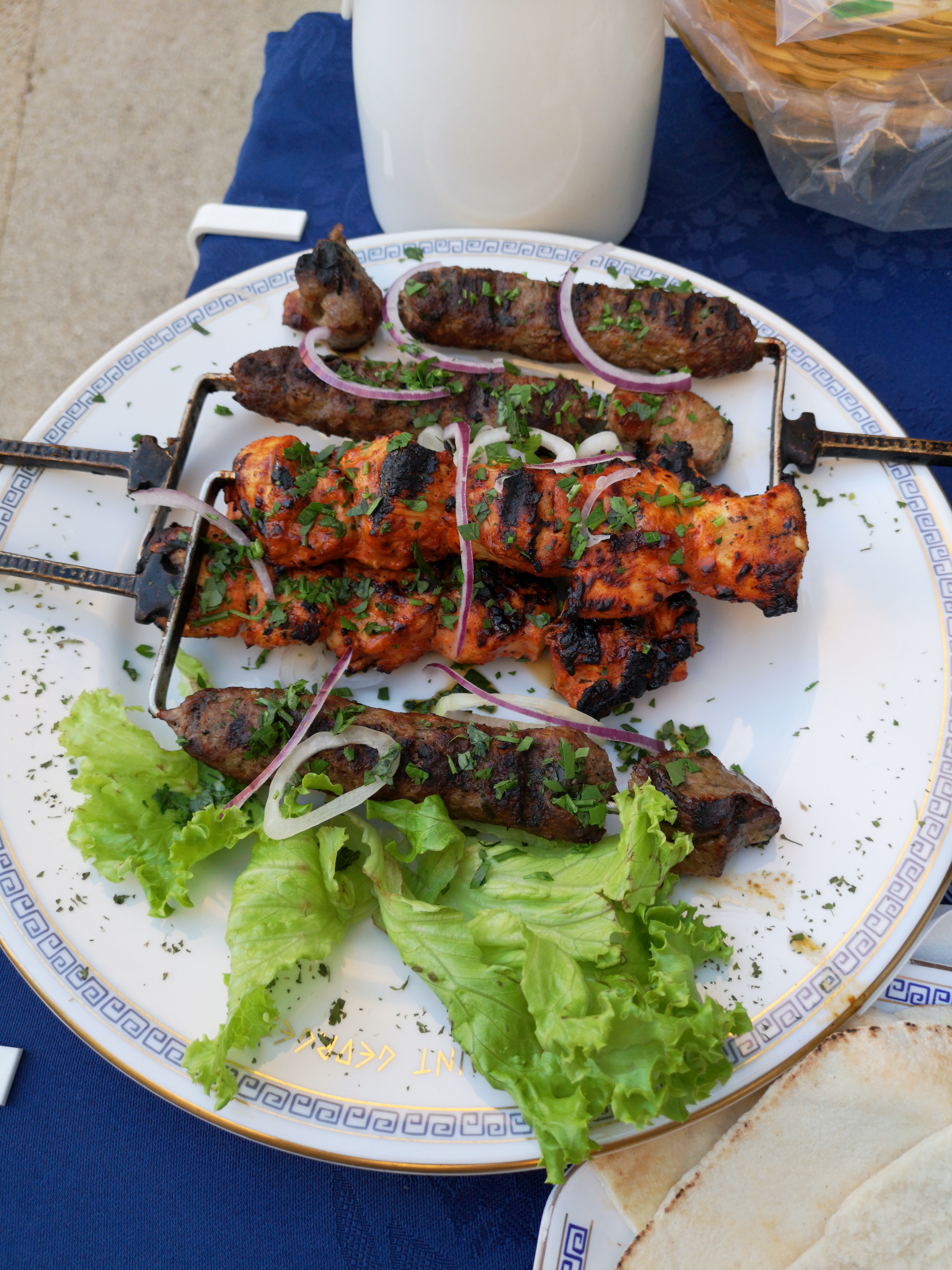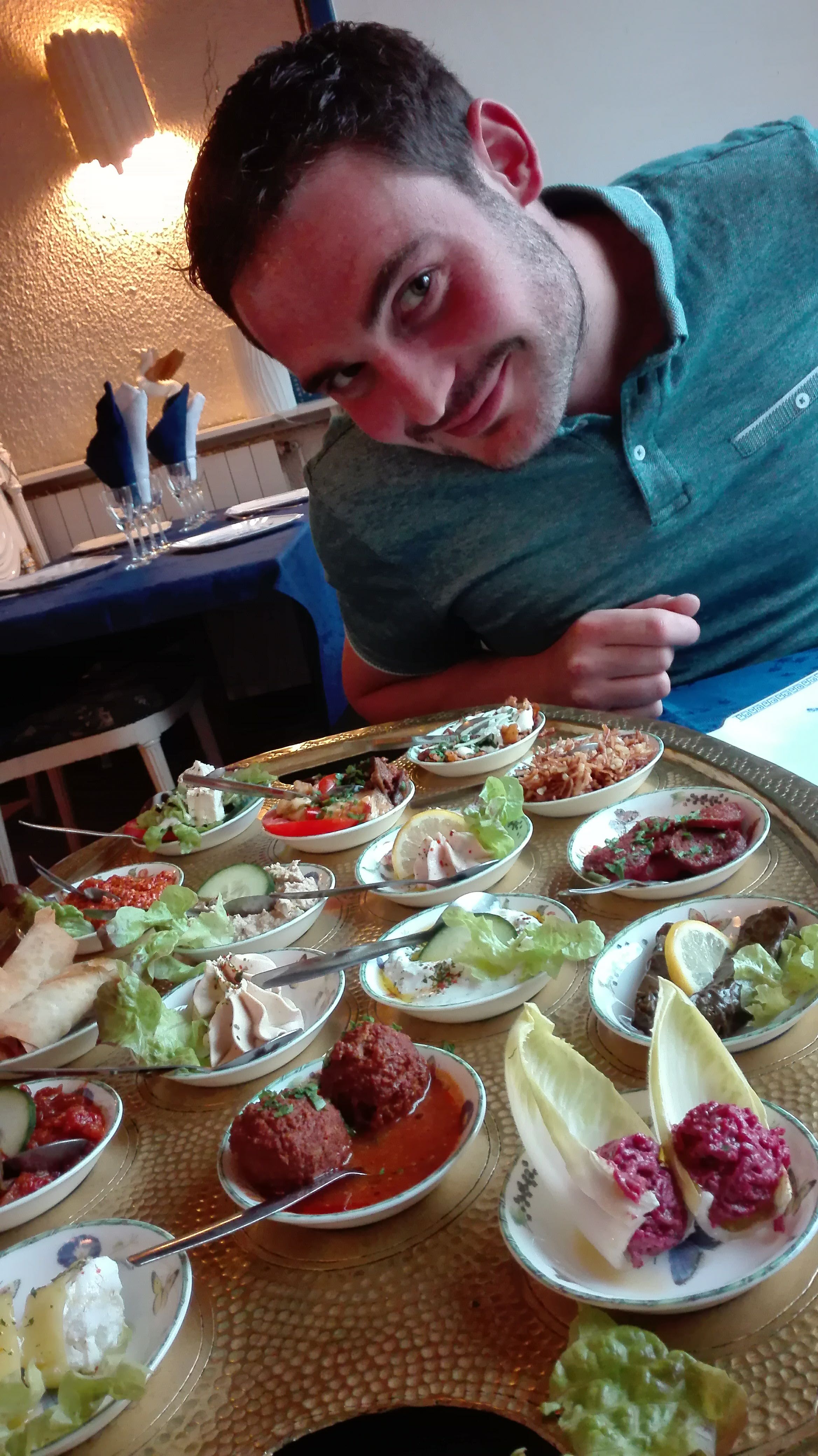 Etant seul ils ont eu l'amabilité de me préparer l assortiment de mezze avec brochettes ...pour le coup je me suis vraiment pété la panse ...du coup le serveur m aoffert un thé pour faire glisser tout ça..